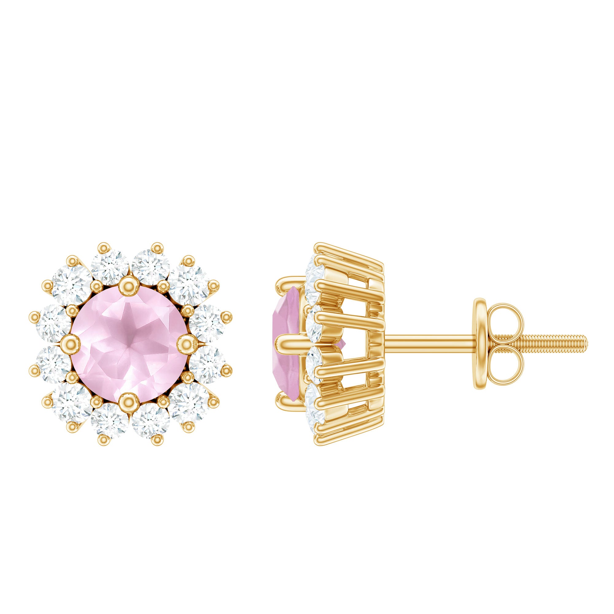 1.75 CT Rose Quartz and Diamond Classic Halo Stud Earrings