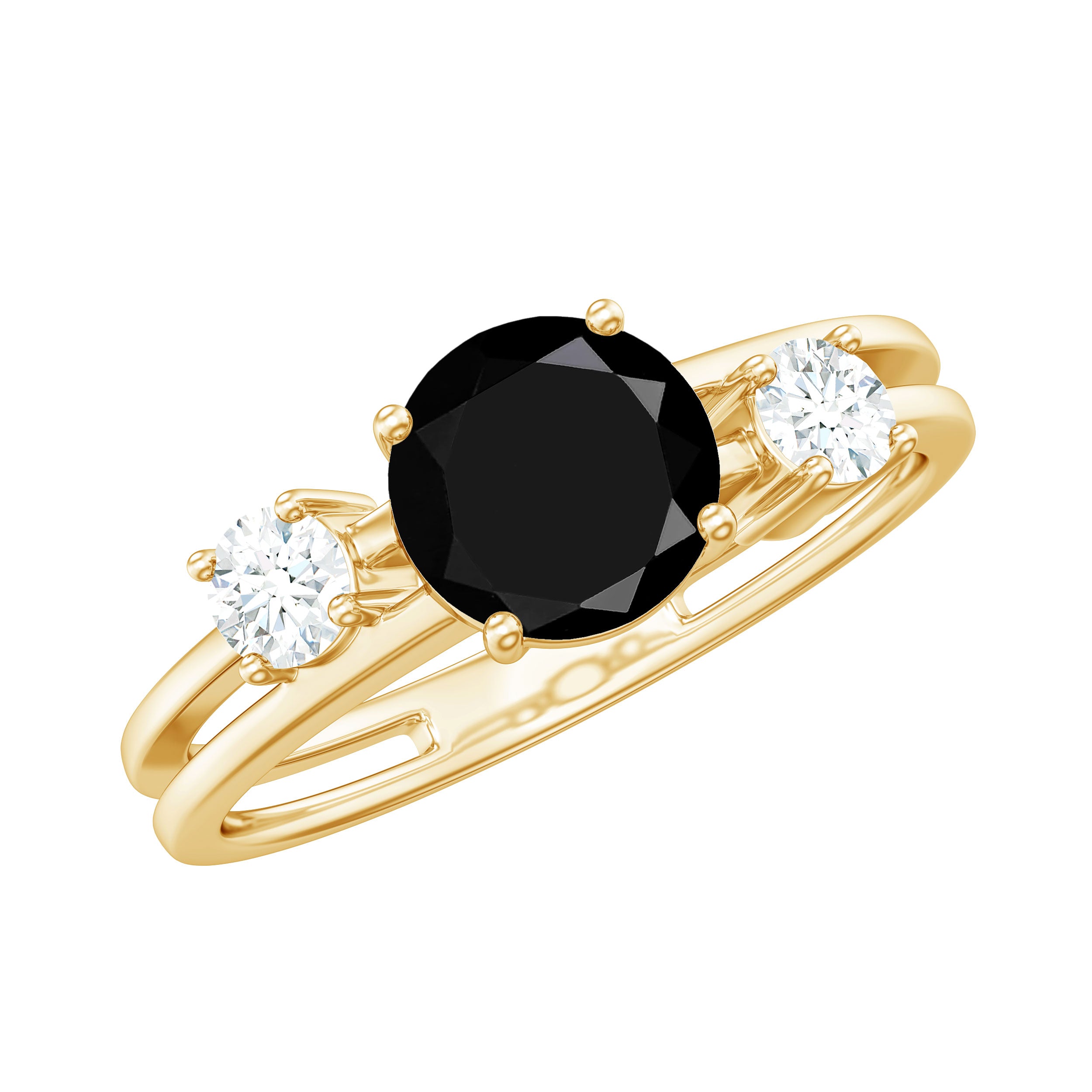 1 CT Solitaire Black Spinel Three Stone Ring with Diamond