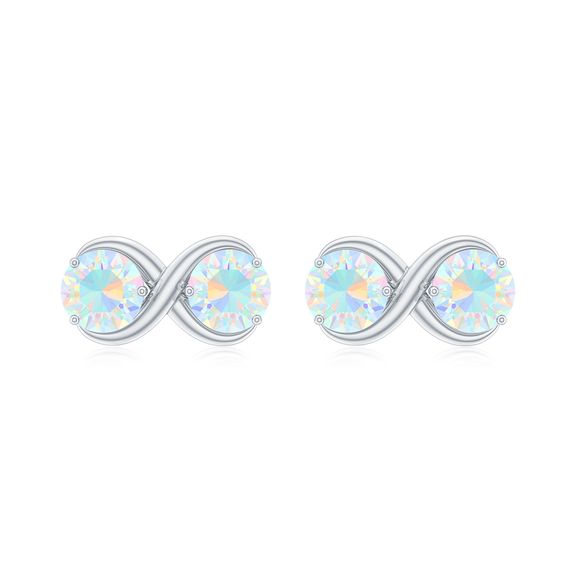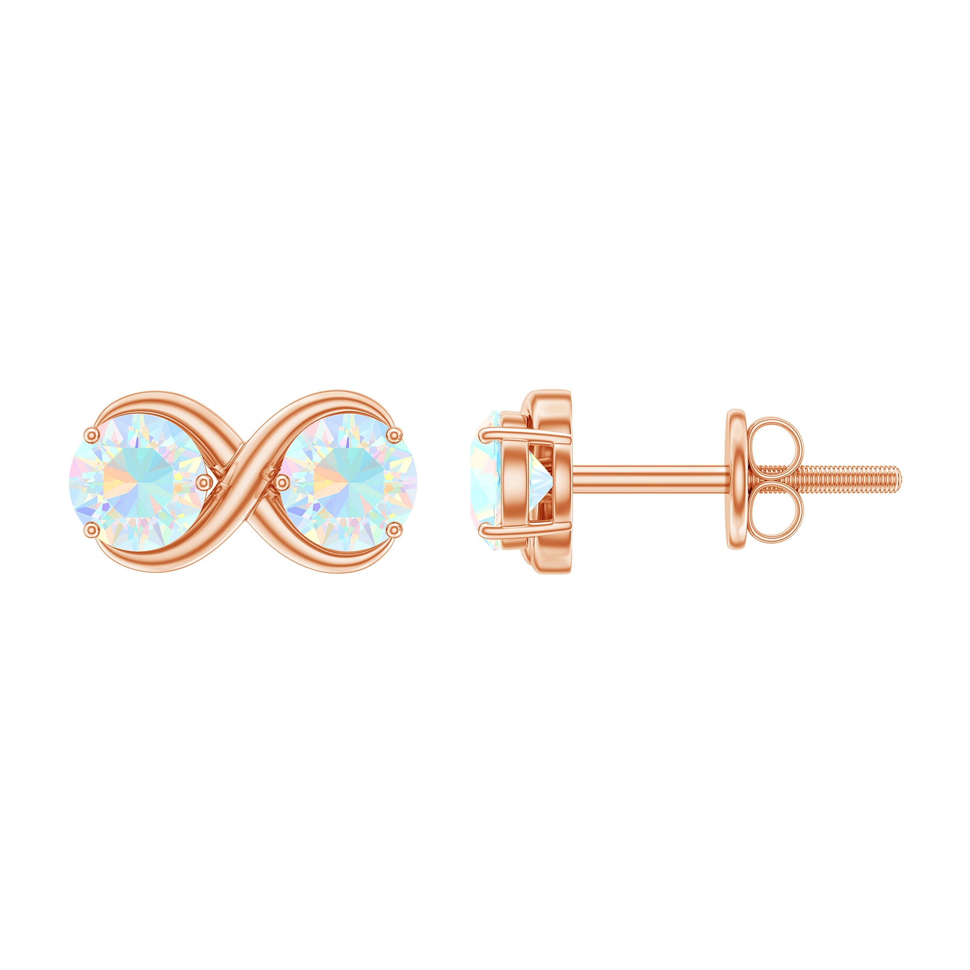 1 CT Simple Ethiopian Opal Two Stone Infinity Stud Earrings
