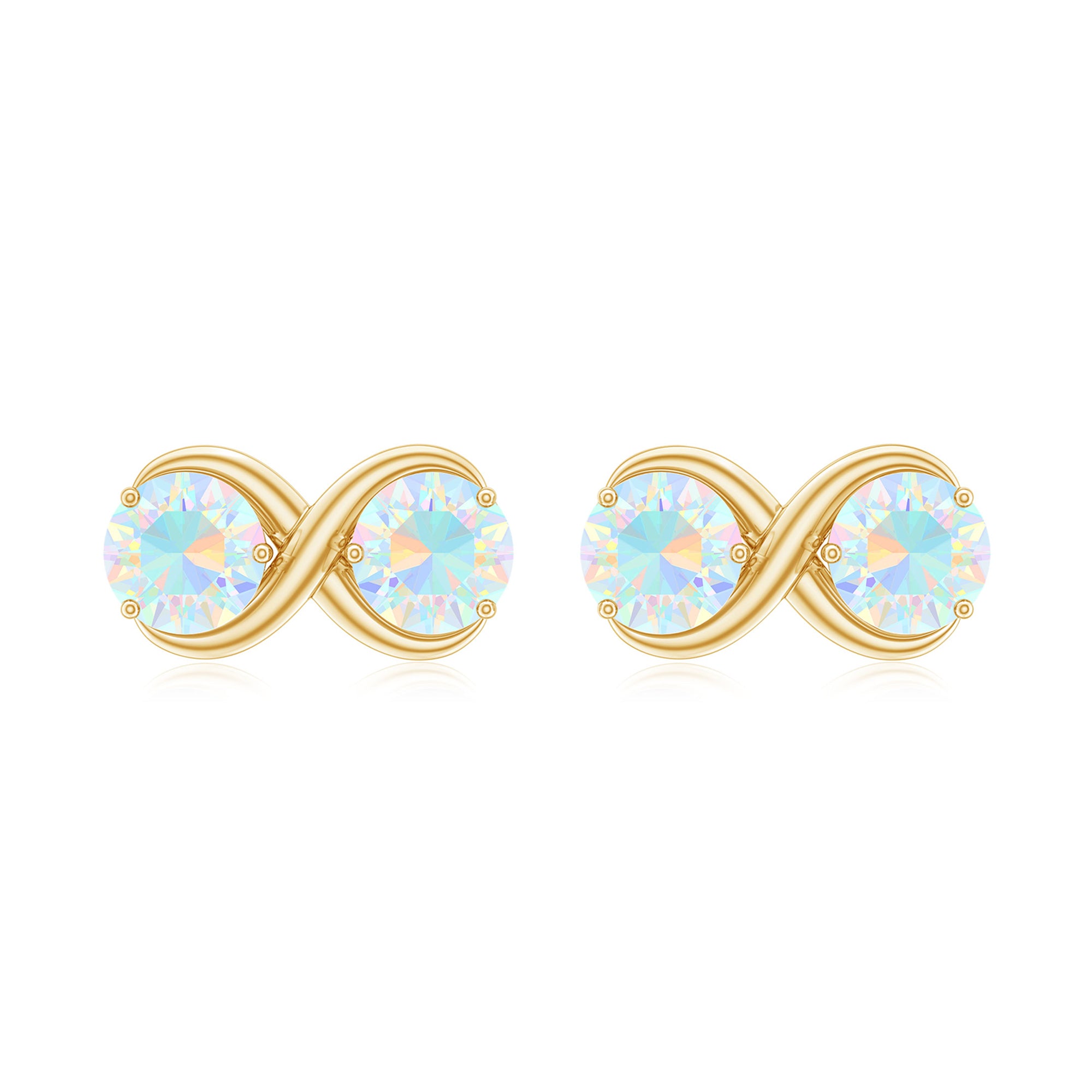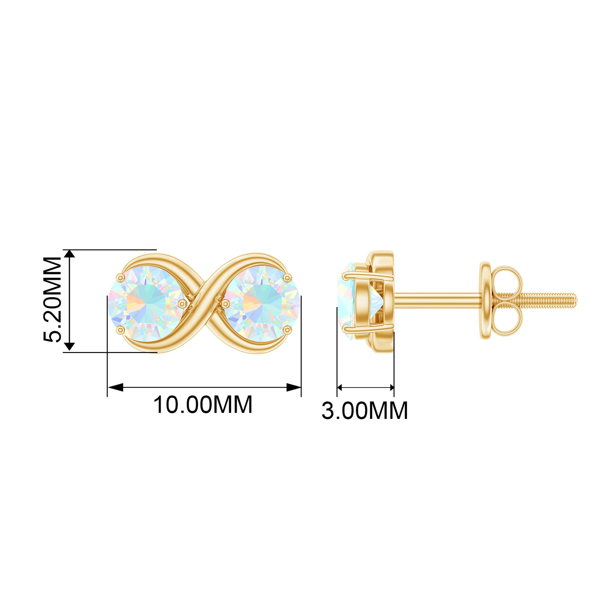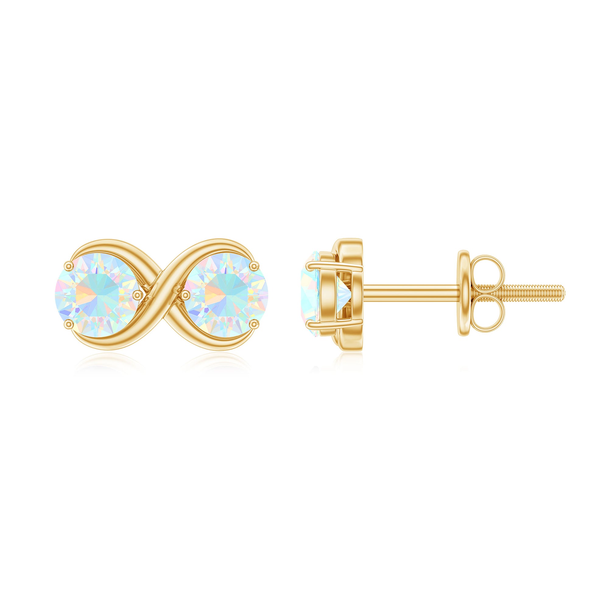 Make this promised day really special for her by giving her this pair of Infinity Stud Earrings she will cherish forever. Starring Round Shape Ethiopian Opal in a Two Stone Setting held between a gorgeous infinity symbol crafted with Solid Gold.