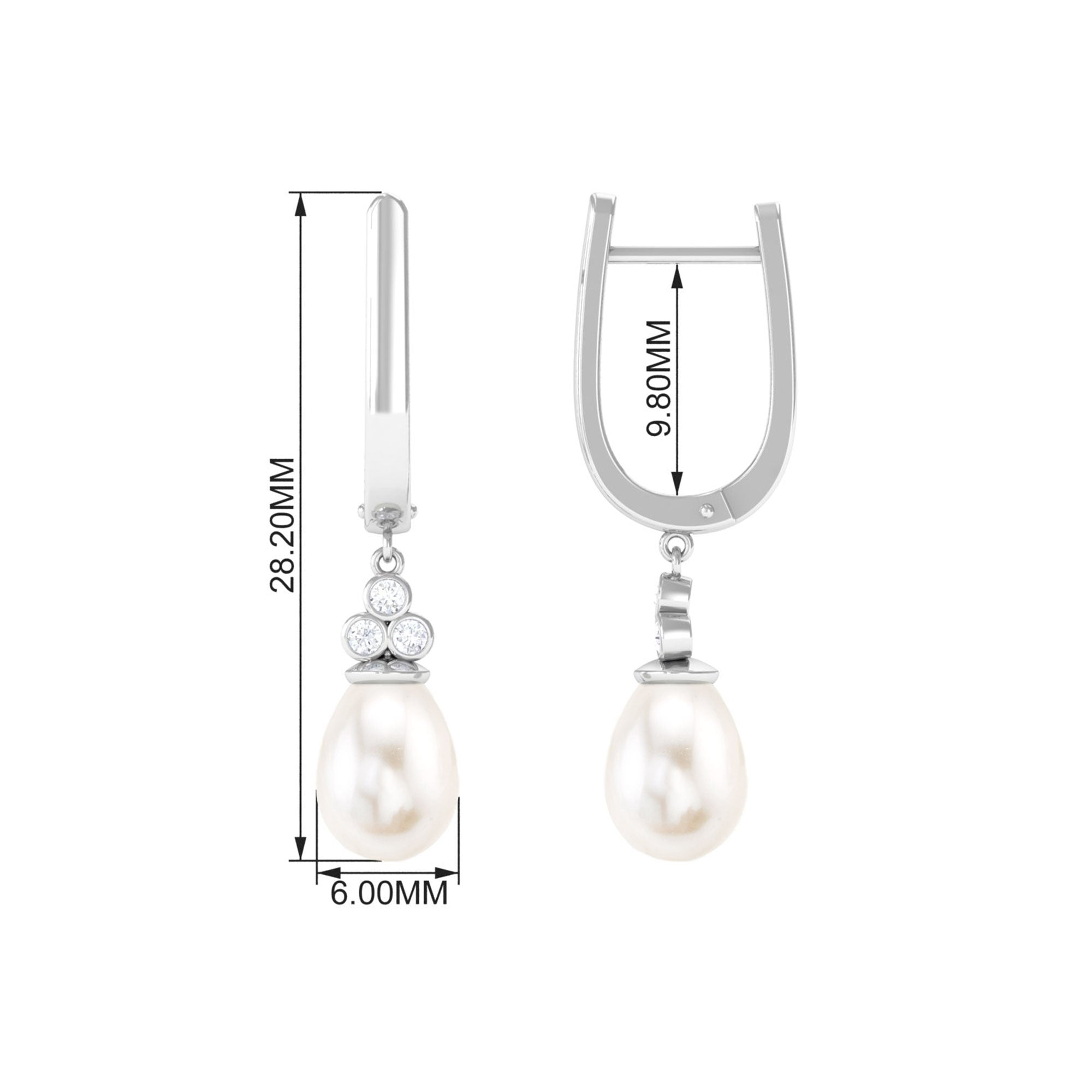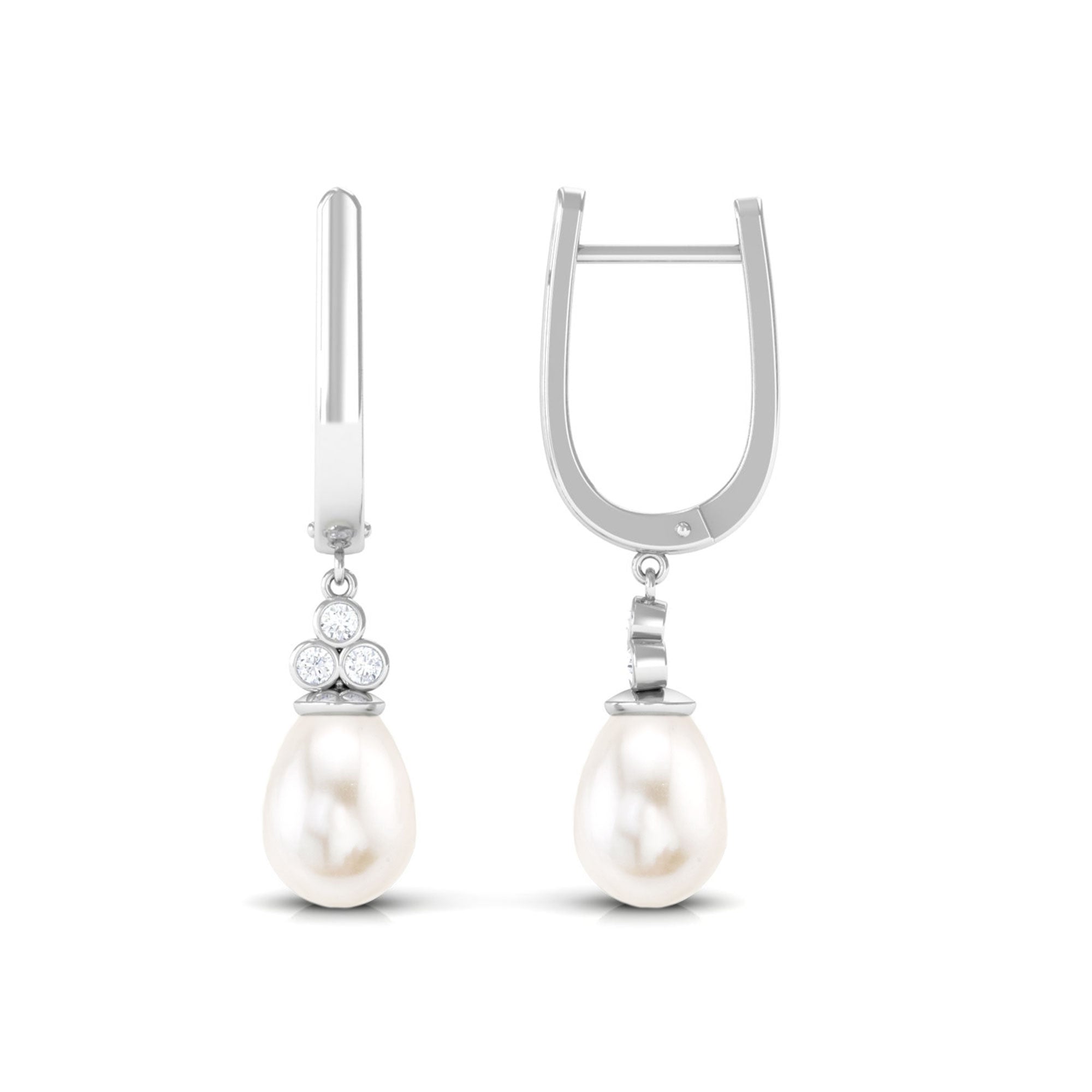 Freshwater Pearl Teardrop Latch Back Earrings with Diamond
