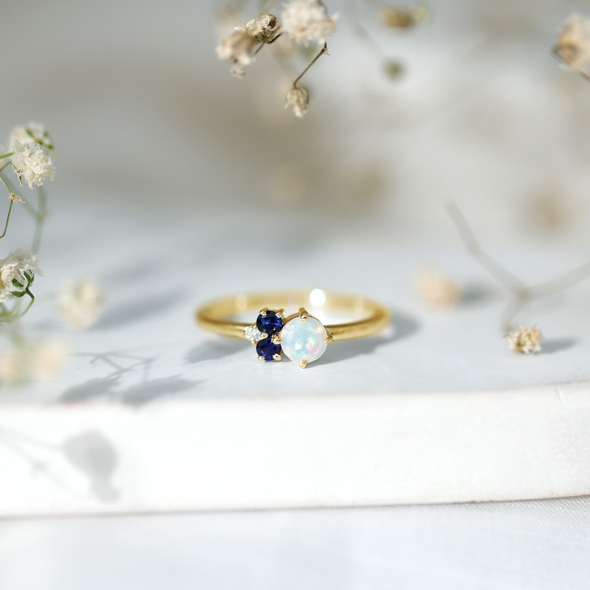 Amethyst, emerald, sapphire, ethiopian opal, ruby, are styled in unique ways in our beautiful opal ring collection. Mostly these colorful gemstones are used.