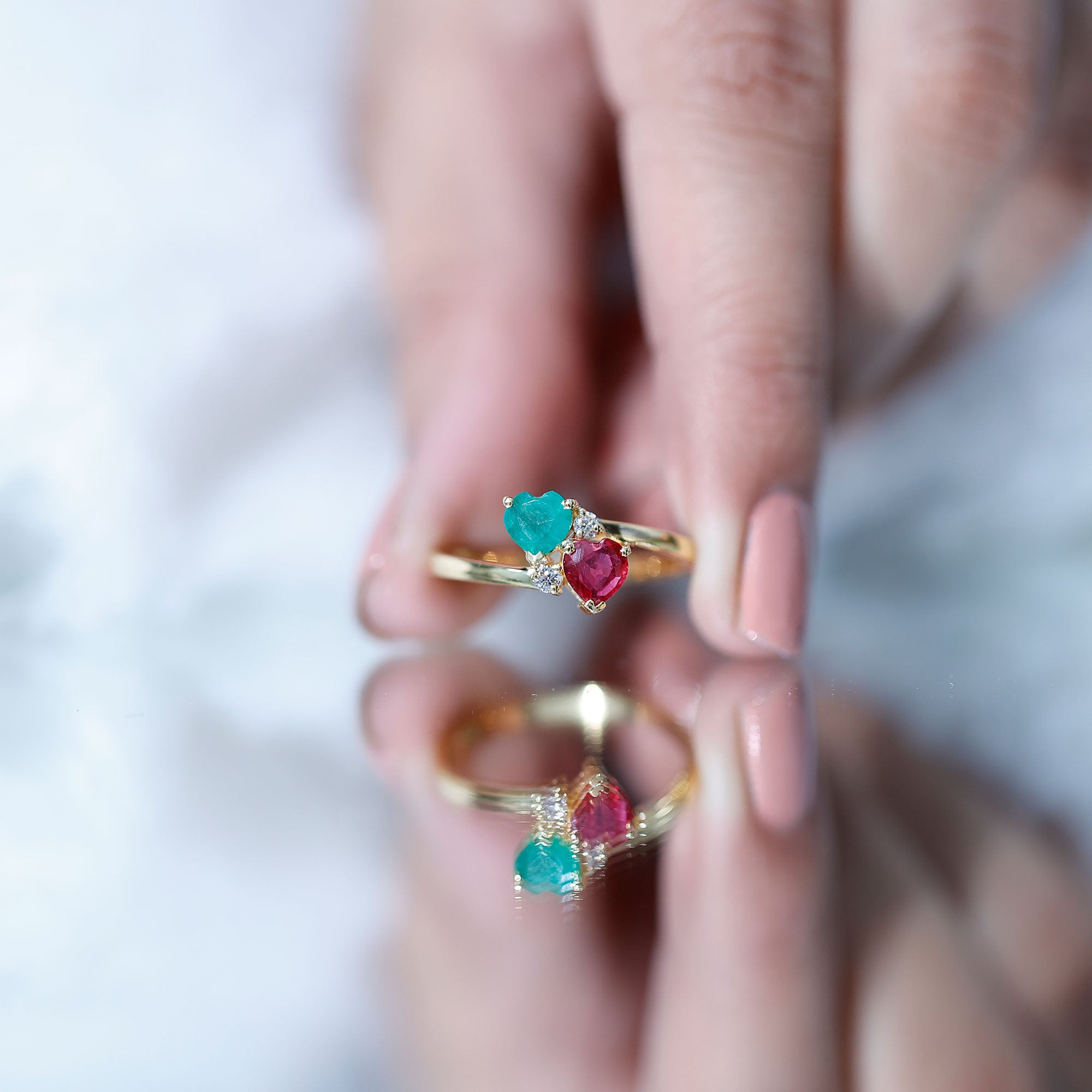 Filter Gemstones: You can choose gemstones that you want in your ring. If you prefer a vibrant look, you can choose a rainbow sapphire ring with emerald and ruby. And for a soft and calm look choose cooler shades you can select opal, amethyst or diamonds and more. If you don't find a preferred gemstone combination in the catalogue, you can look for a customization option to get that unique piece too.