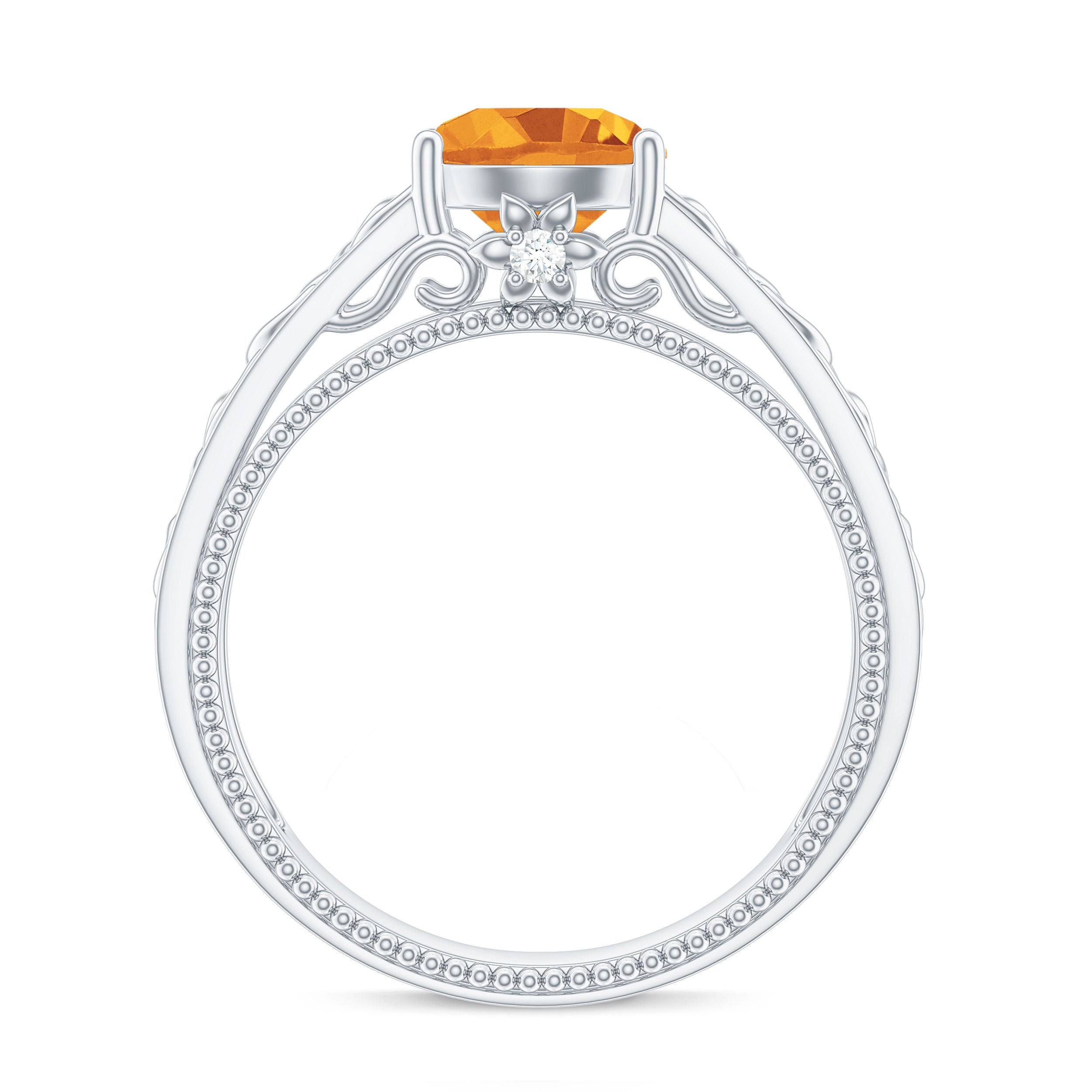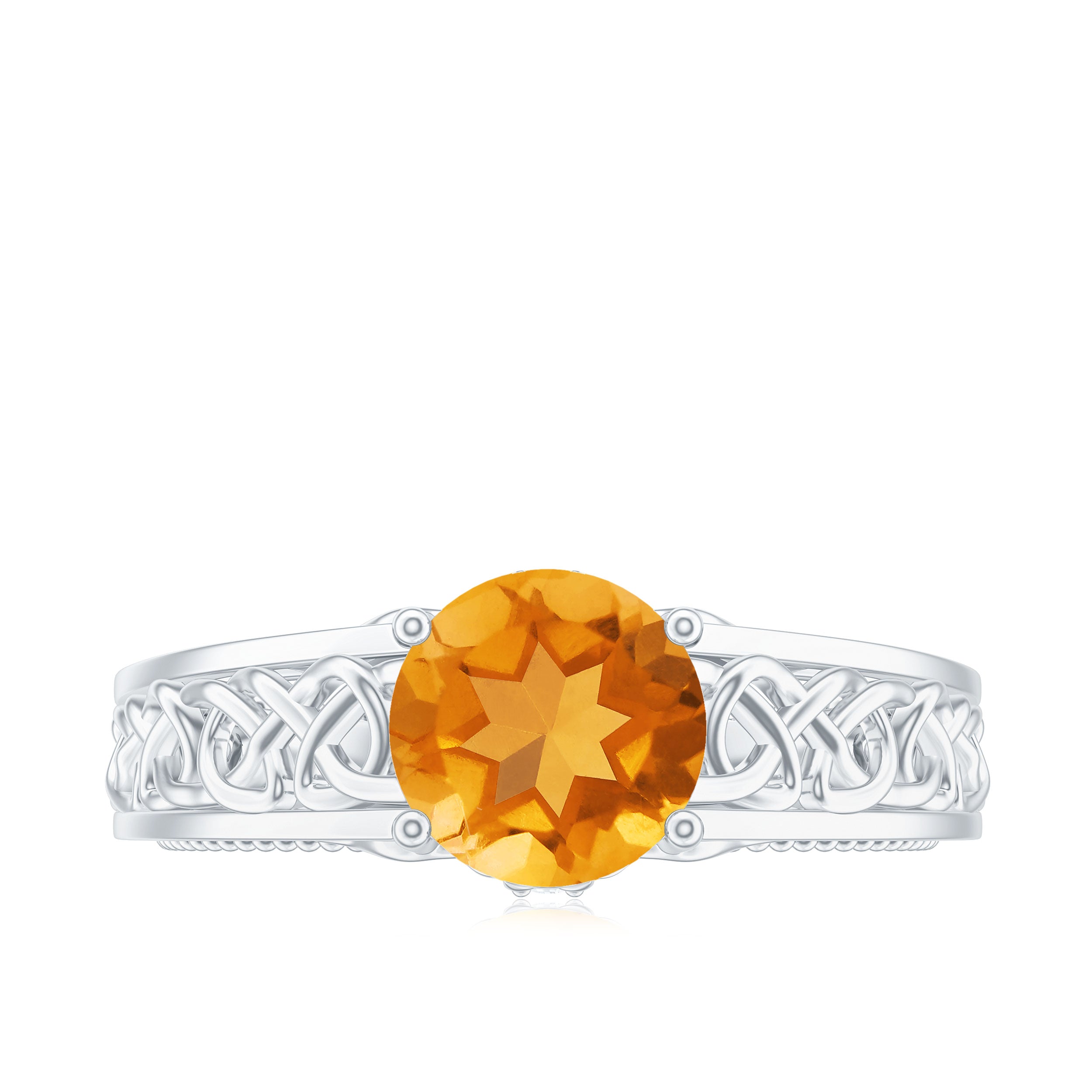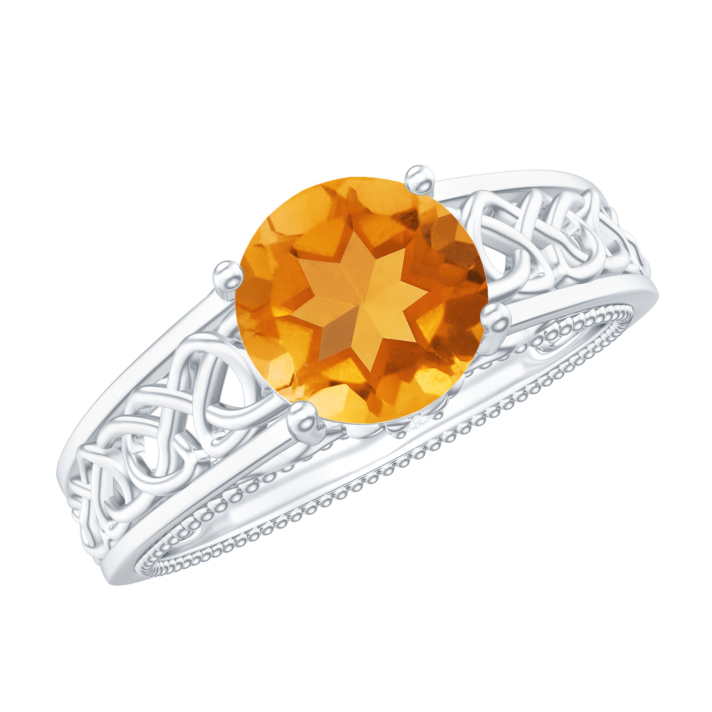 1.25 CT Vintage Style Citrine Solitaire Celtic Knot Band Ring with Diamond