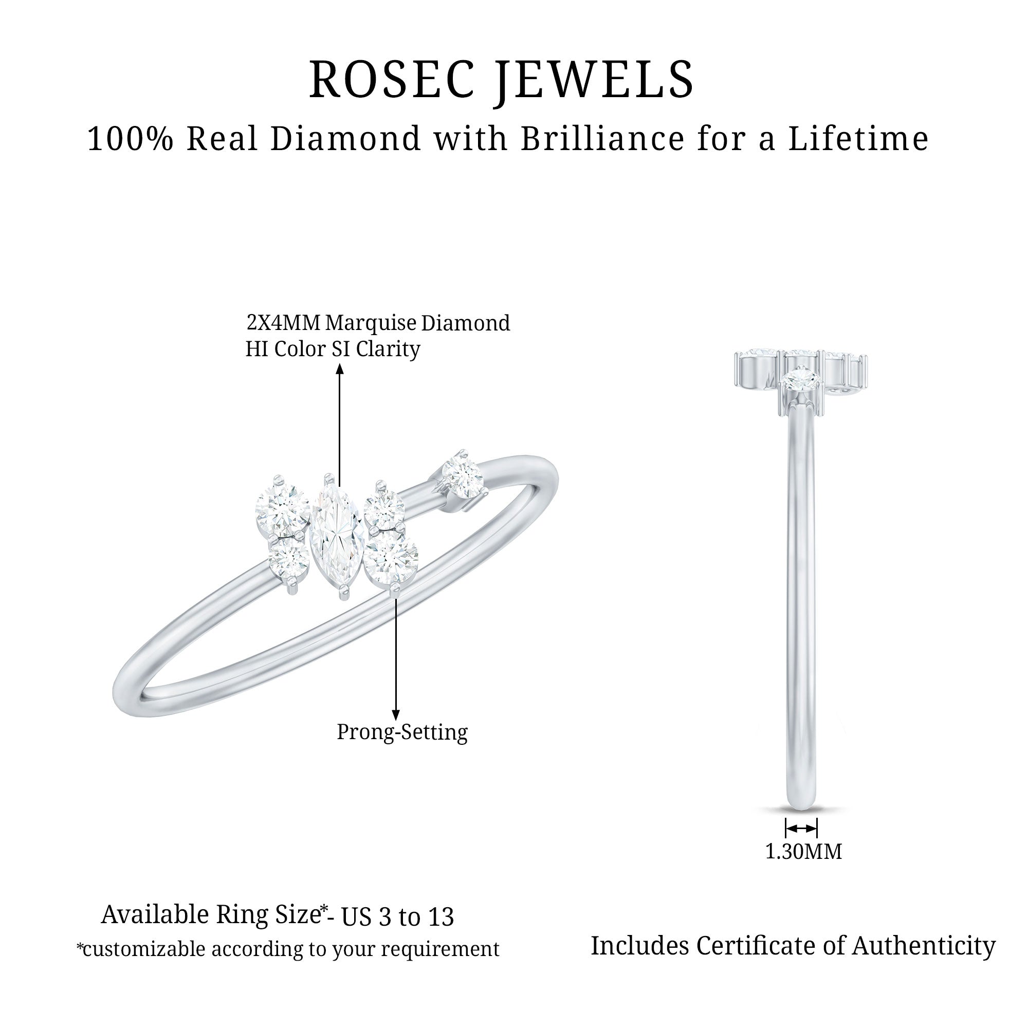 As a reminder of enduring bond this Diamond Promise Ring lets you celebrate your special moments where simplicity meets brilliance. This Ring is adorned with Marquise and Round Shape Diamond in Prong Setting. This Promise Ring for Her is designed to create a stunning yet understated sparkle, the minimalist band gracefully enhances the diamond cluster, making it a perfect symbol of enduring love and commitment. The minimalist design of this Dainty Diamond Ring reflects light from every angle. Whether as a promise ring or a token of affection, this piece captures the essence of refined elegance and heartfelt sentiment.