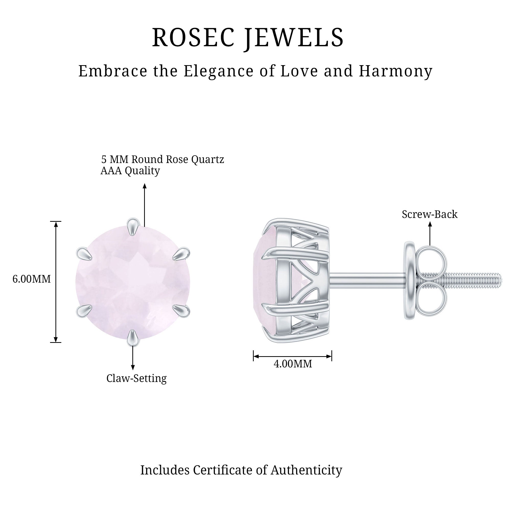 Elevate your style with these stunning Simple Stud Earrings, showcasing Round Cut Rose Quartz stones set in a Claw setting and beautifully crafted from Solid Gold. Despite their simplicity, these solitaire earrings make a statement, adding a touch of elegance and sophistication to any outfit.
