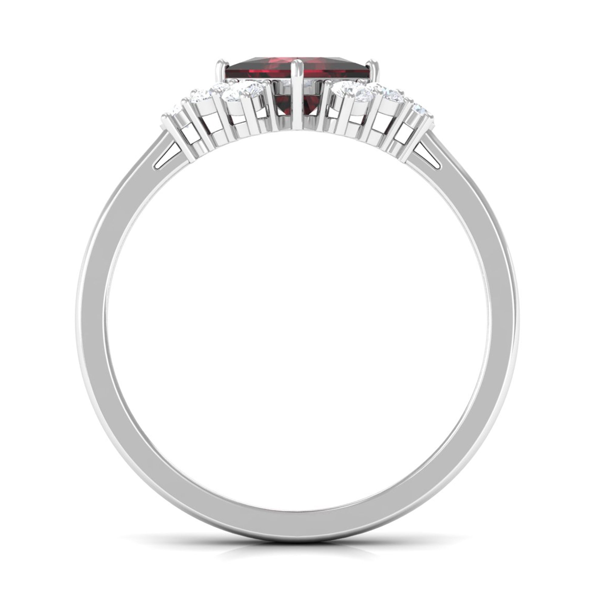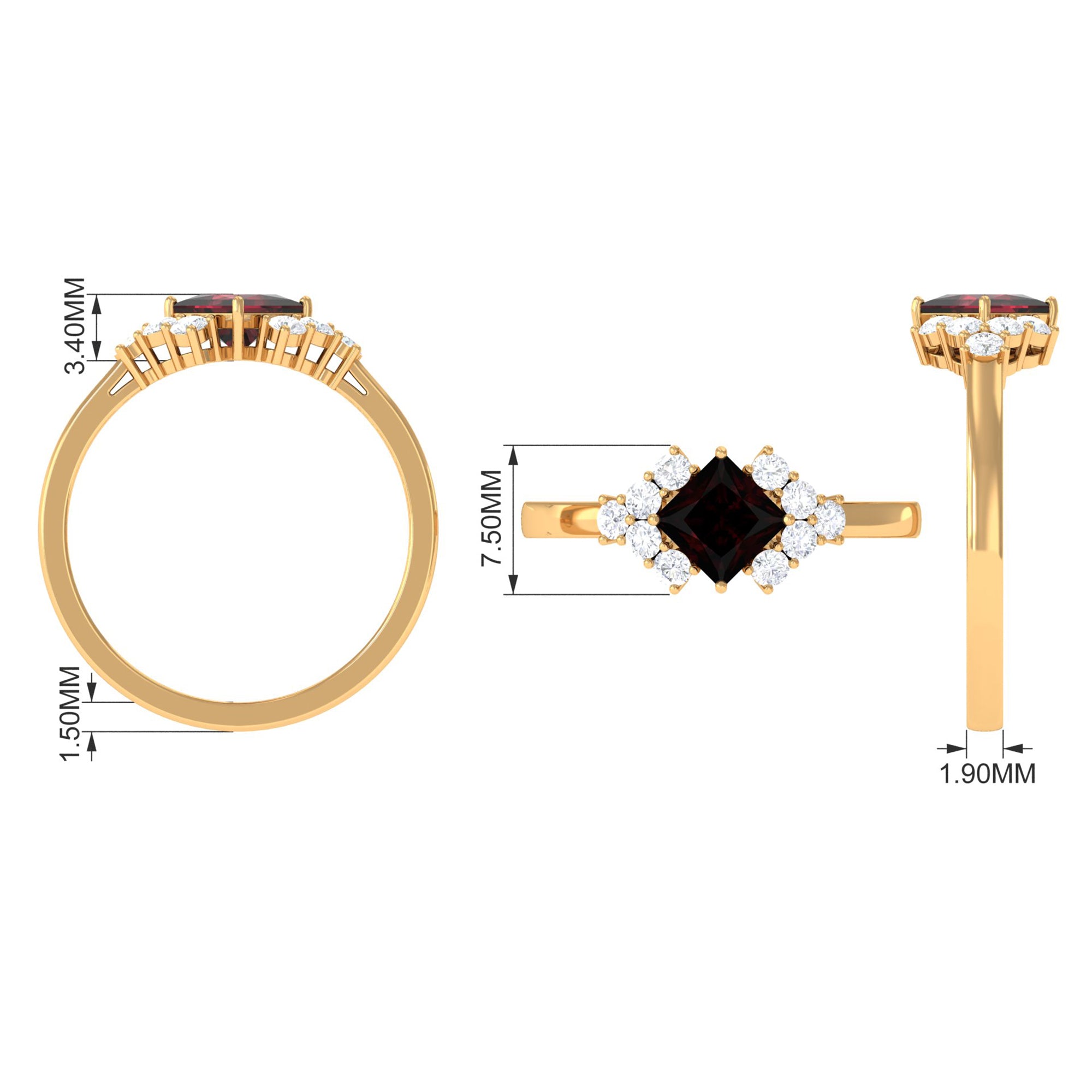 Real 6mm Garnet Princess Cut Engagement Ring with Diamond