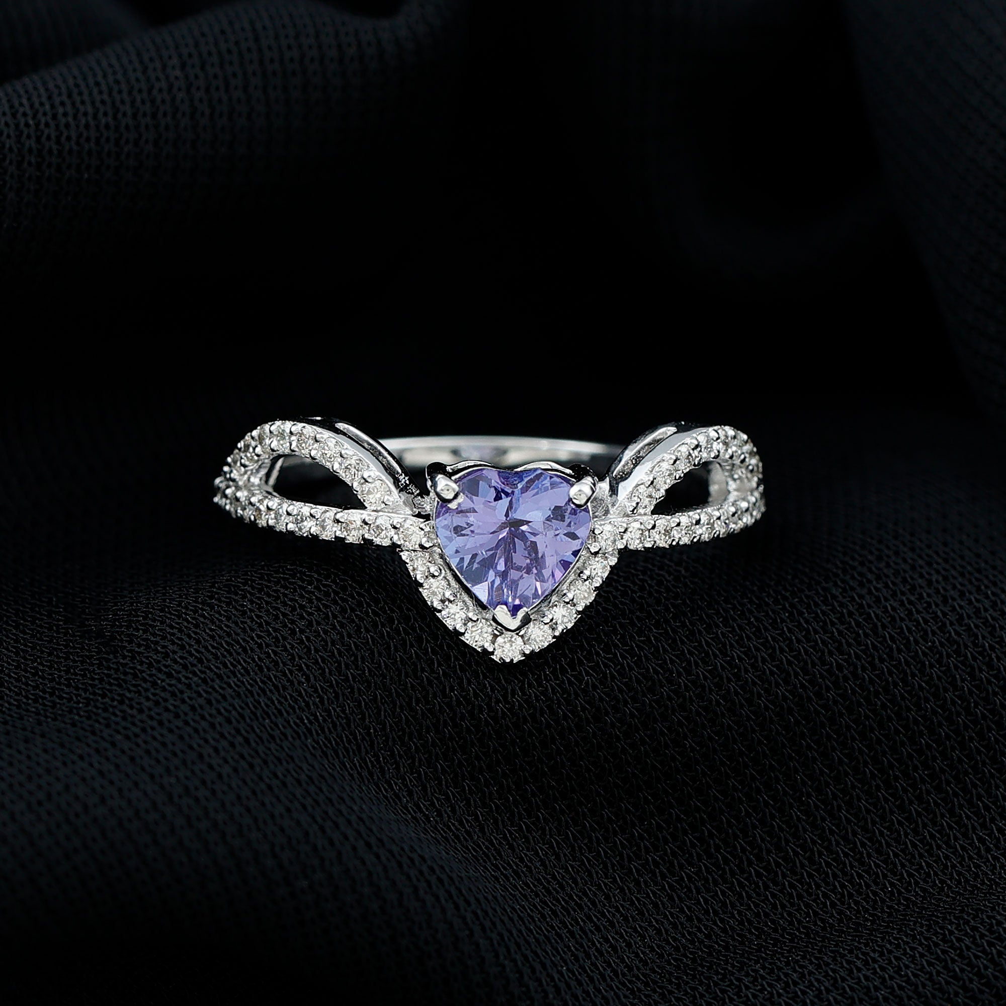 1.50 CT Designer Heart Solitaire Tanzanite and Diamond Ring
