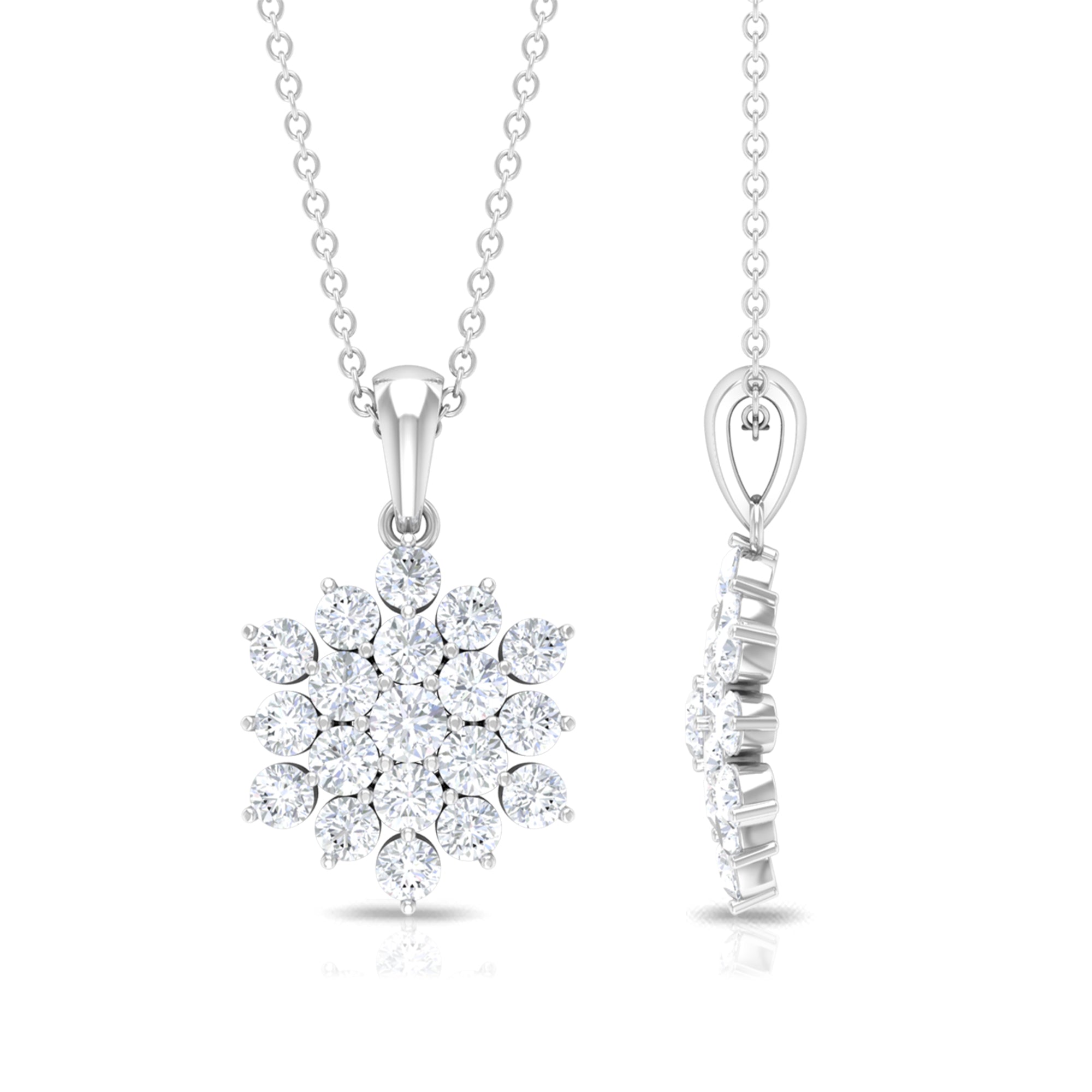 1.75 CT Round Cut Moissanite Floral Cluster Pendant