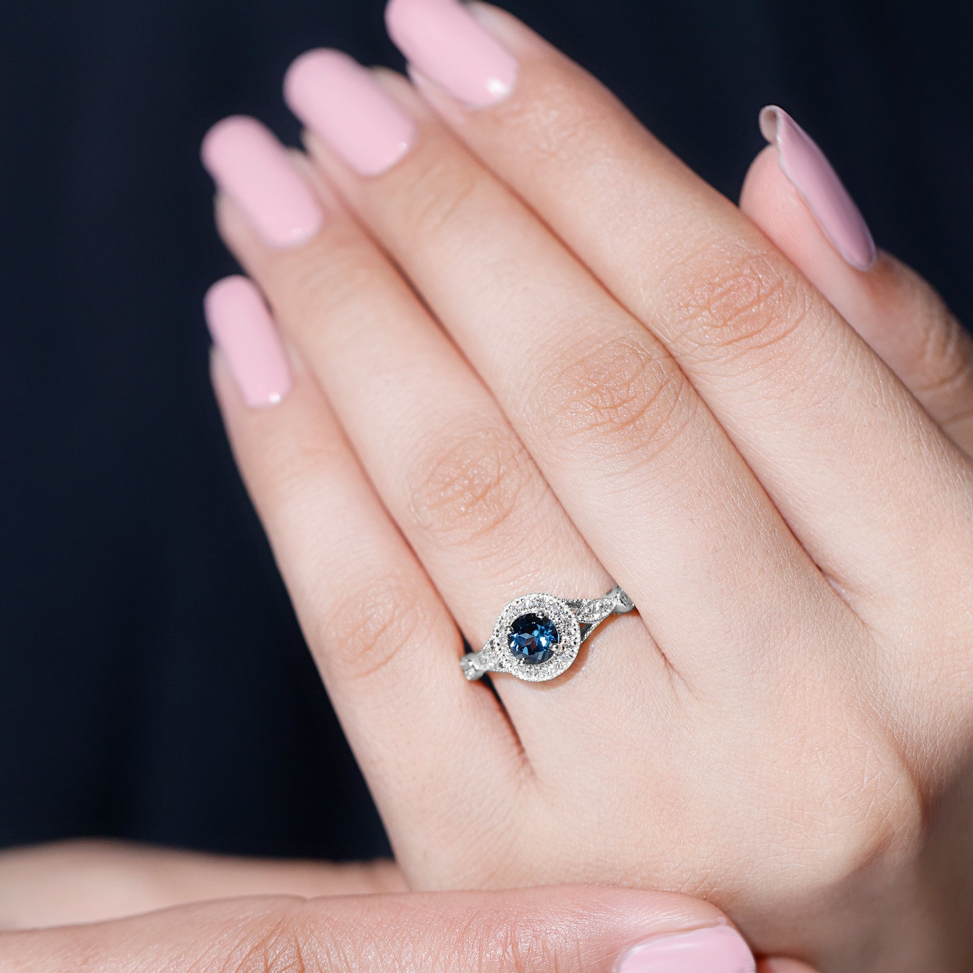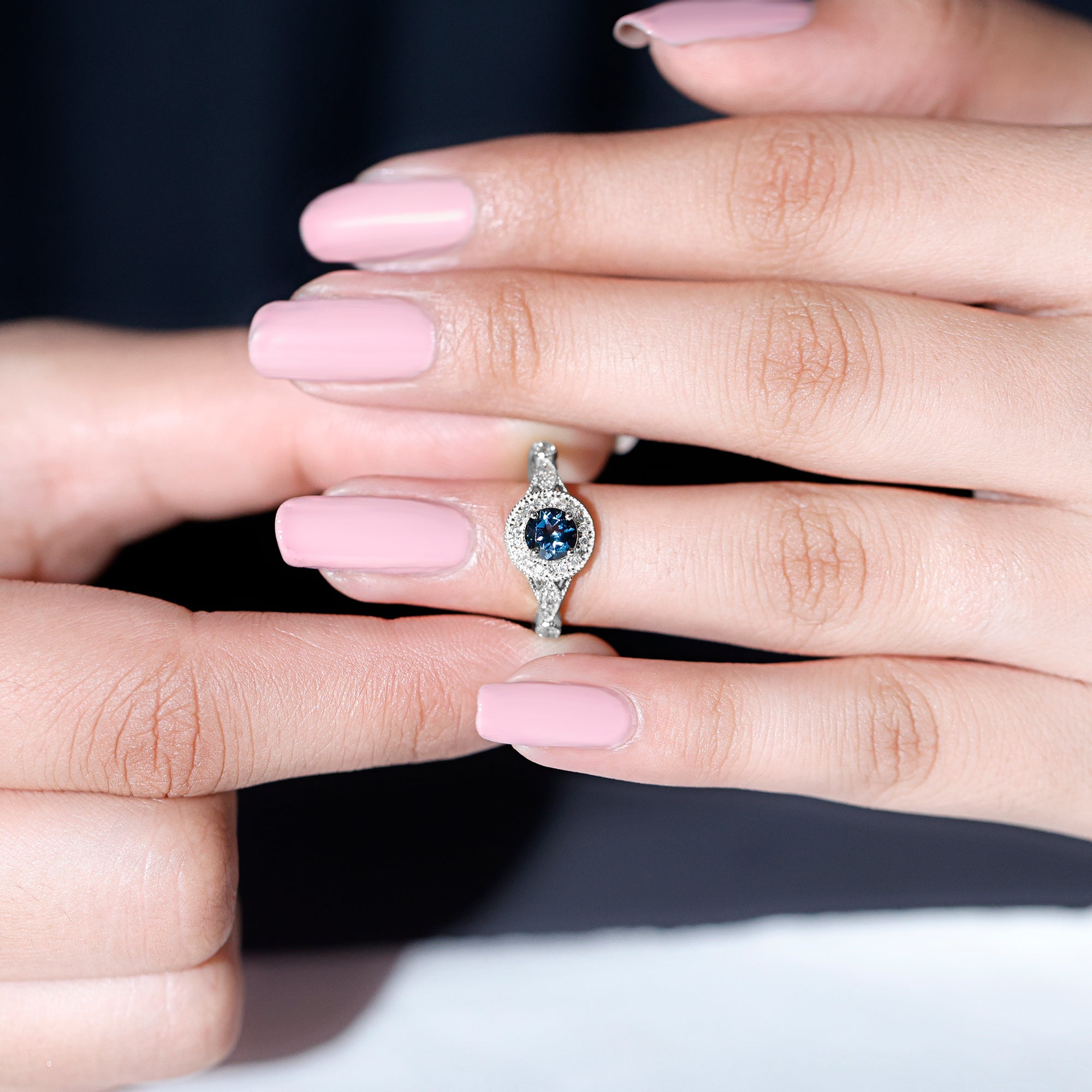 5mm London Blue Topaz Antique Engagement Ring with Diamond Halo