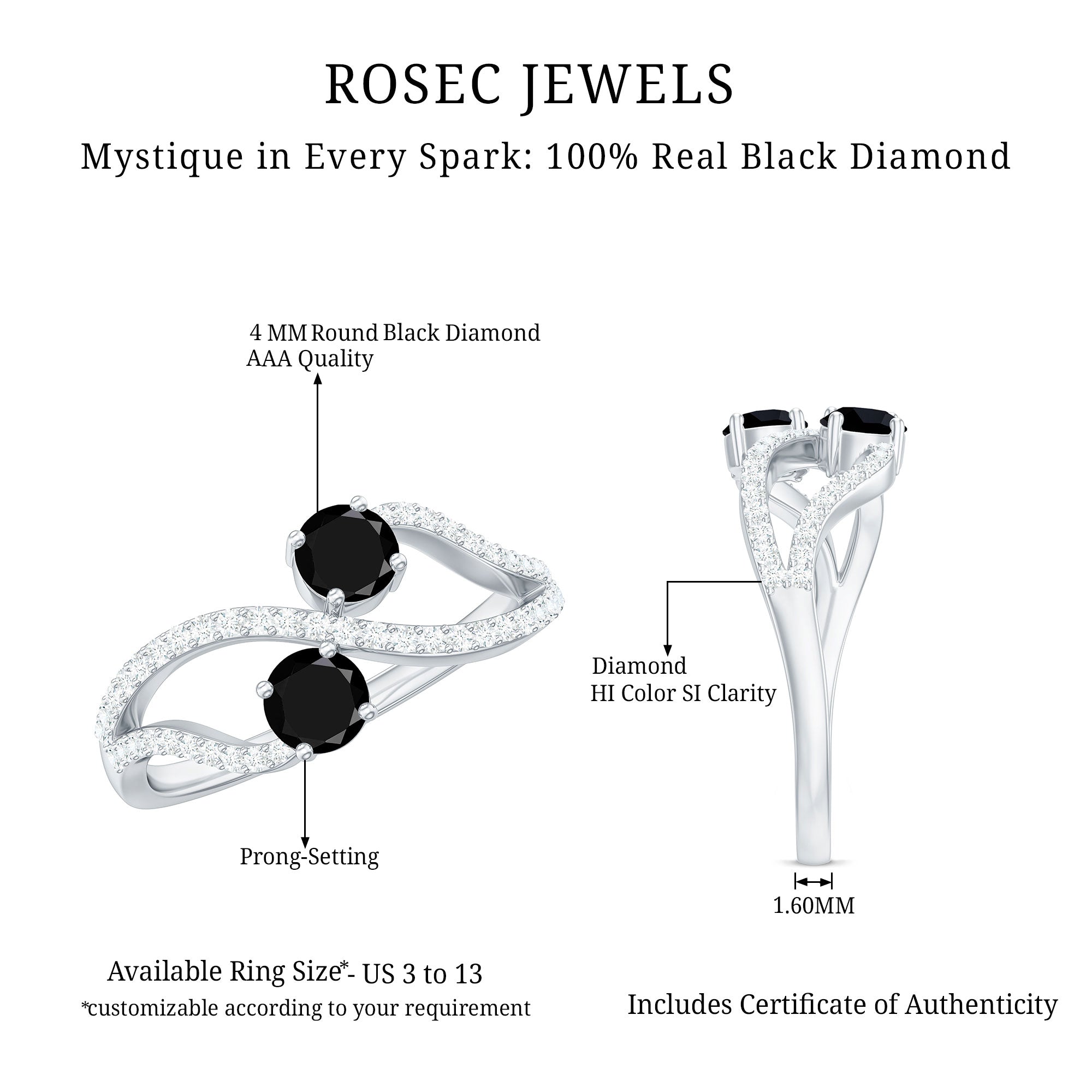 1 CT Minimal Black Diamond and Diamond Engagement Ring