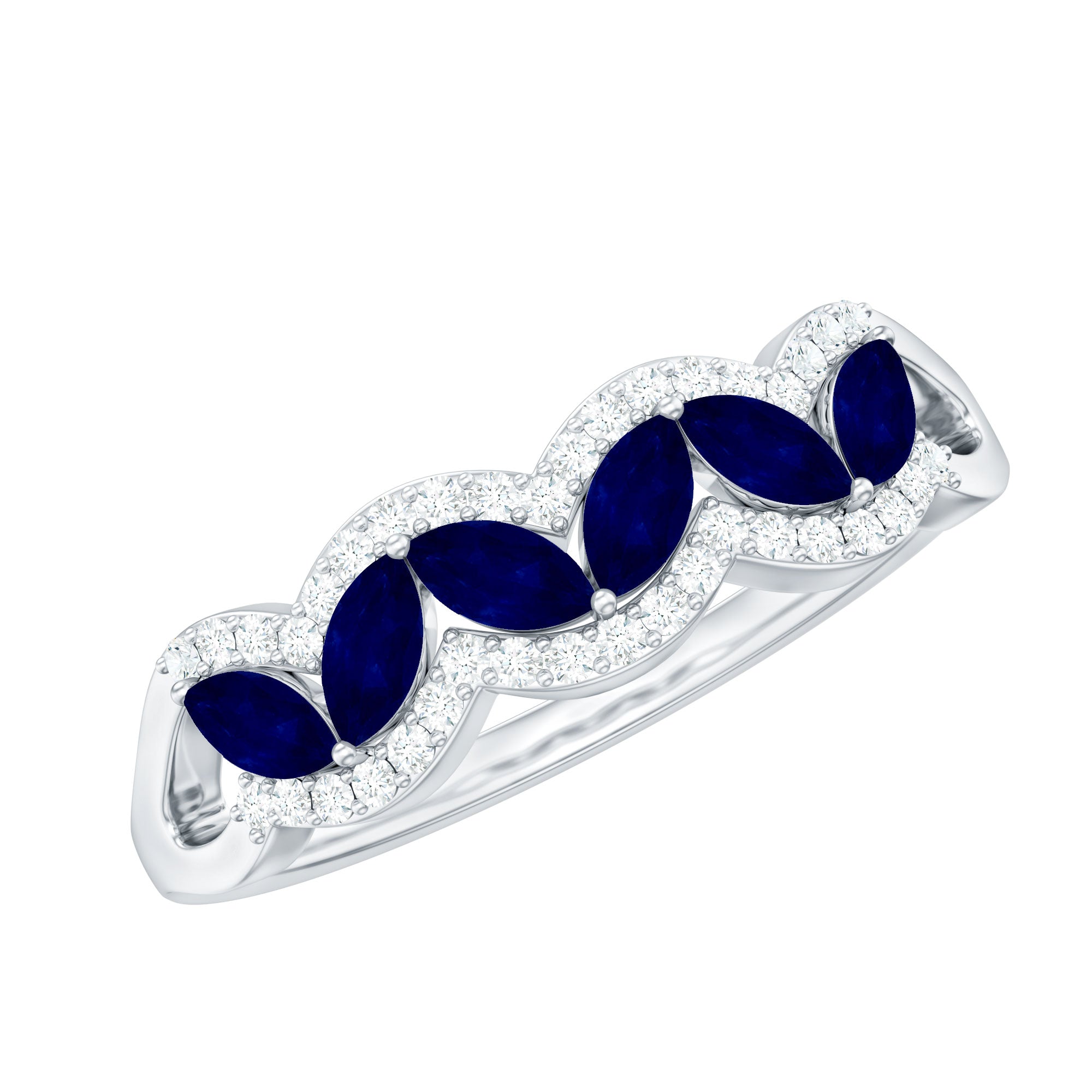 1 CT Minimal Marquise Cut Blue Sapphire Anniversary Ring with Diamond Accent