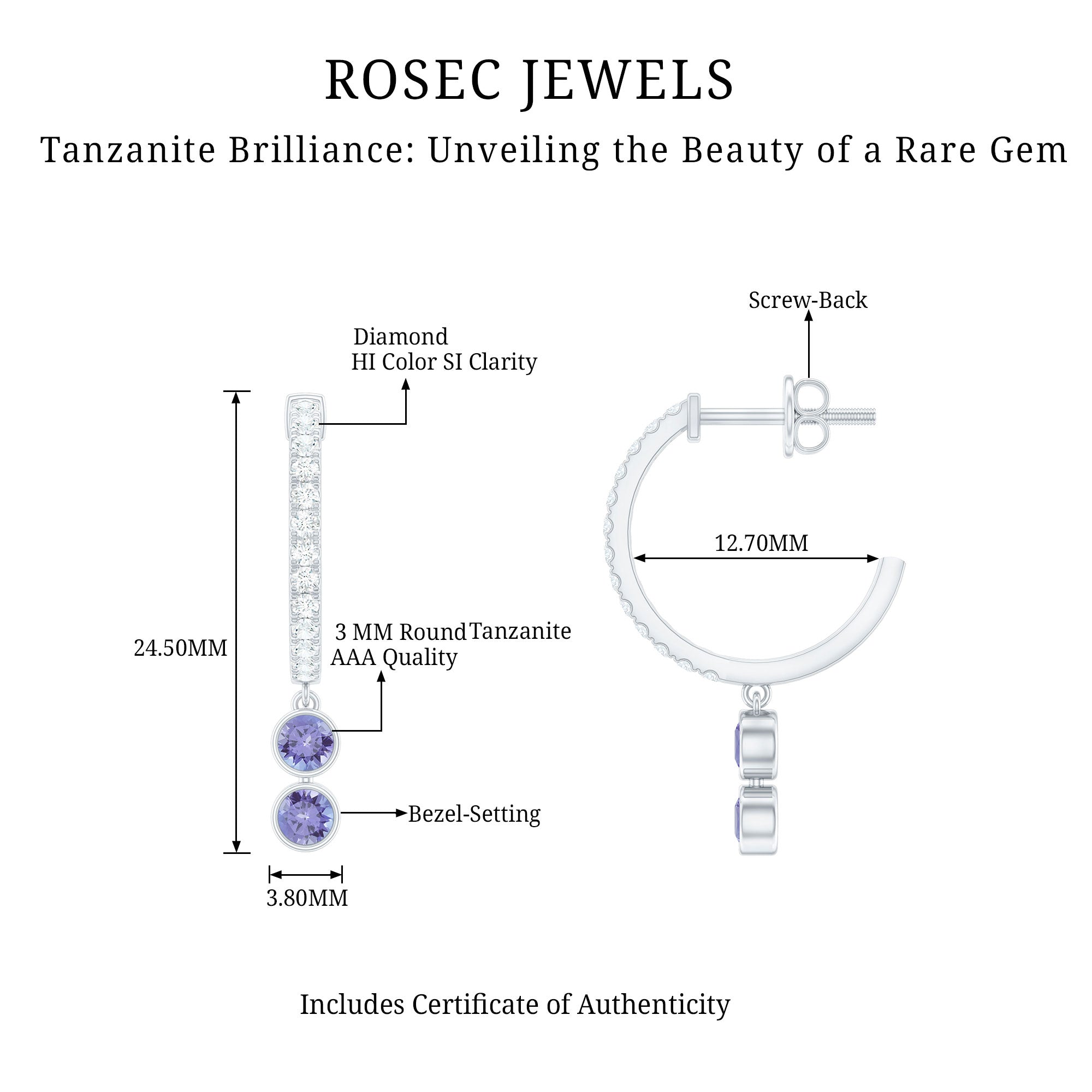 Hoop earrings are the perfect accessory to complete any outfit. Make a statement with these gorgeous drop hoop earrings, adorned with round-cut tanzanite stones set in a prong setting, encircled by a Diamond-studded hoop. These hoop drop earrings are expertly crafted with high-quality solid gold metal, making them both elegant and durable.