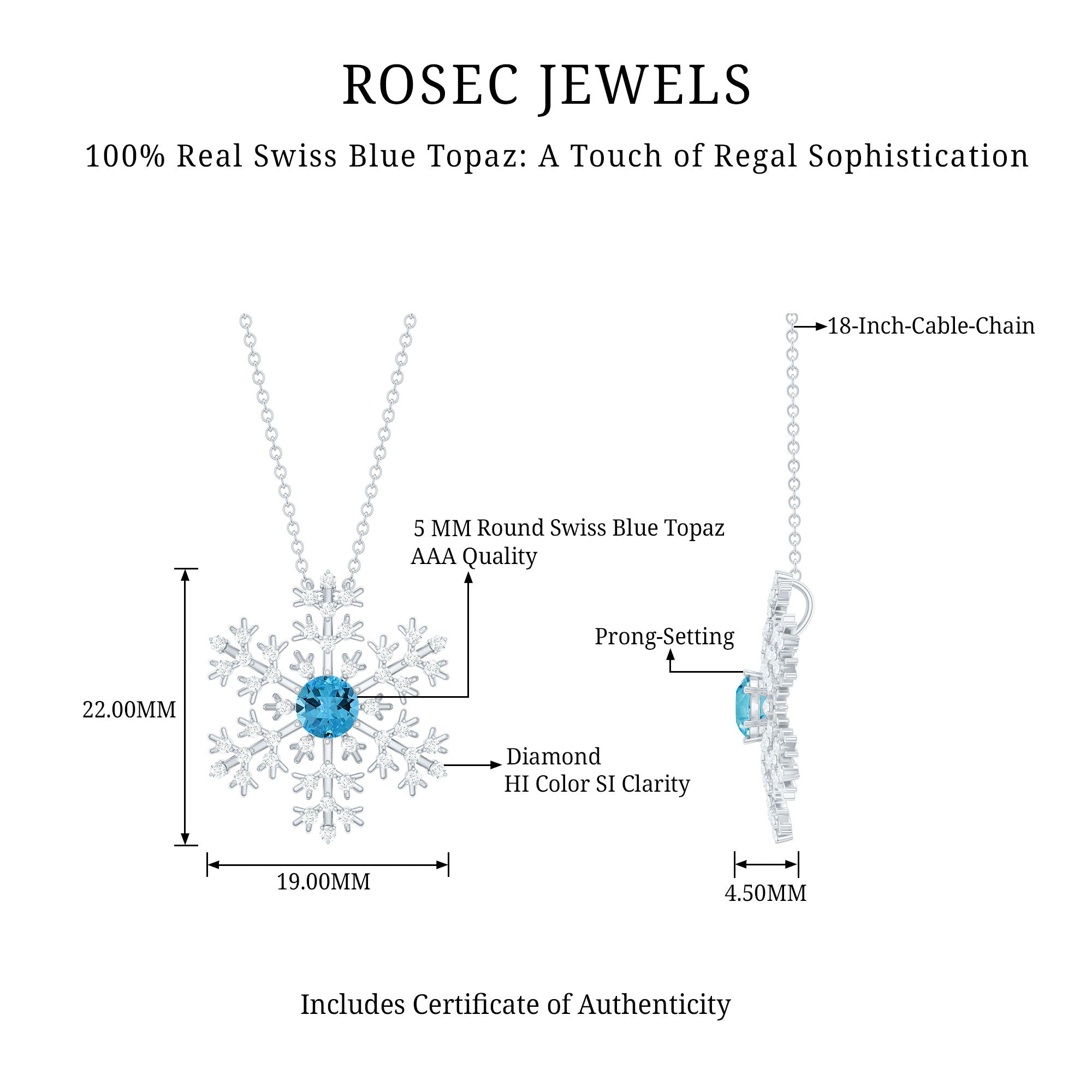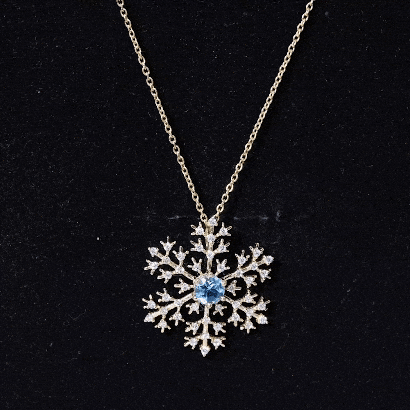 Add a touch of sparkle and glamour to your evening with our charming Snowflake Pendant Necklace, an elegant jewelry accessory that is sure to complete your look. Crafted from Solid Gold, this exquisite Scatter Snowflake Pendant is adorned with Round Shape Swiss Blue Topaz and Diamond stones, creating a dazzling and eye-catching effect that will turn heads and make you feel truly special. Whether youre dressing up for a special occasion or simply looking for a way to add some glamour to your everyday wear, this precious pendant is the perfect choice. Enhance your jewelry collection with this timeless and beautiful keepsake that will be treasured for years to come.
