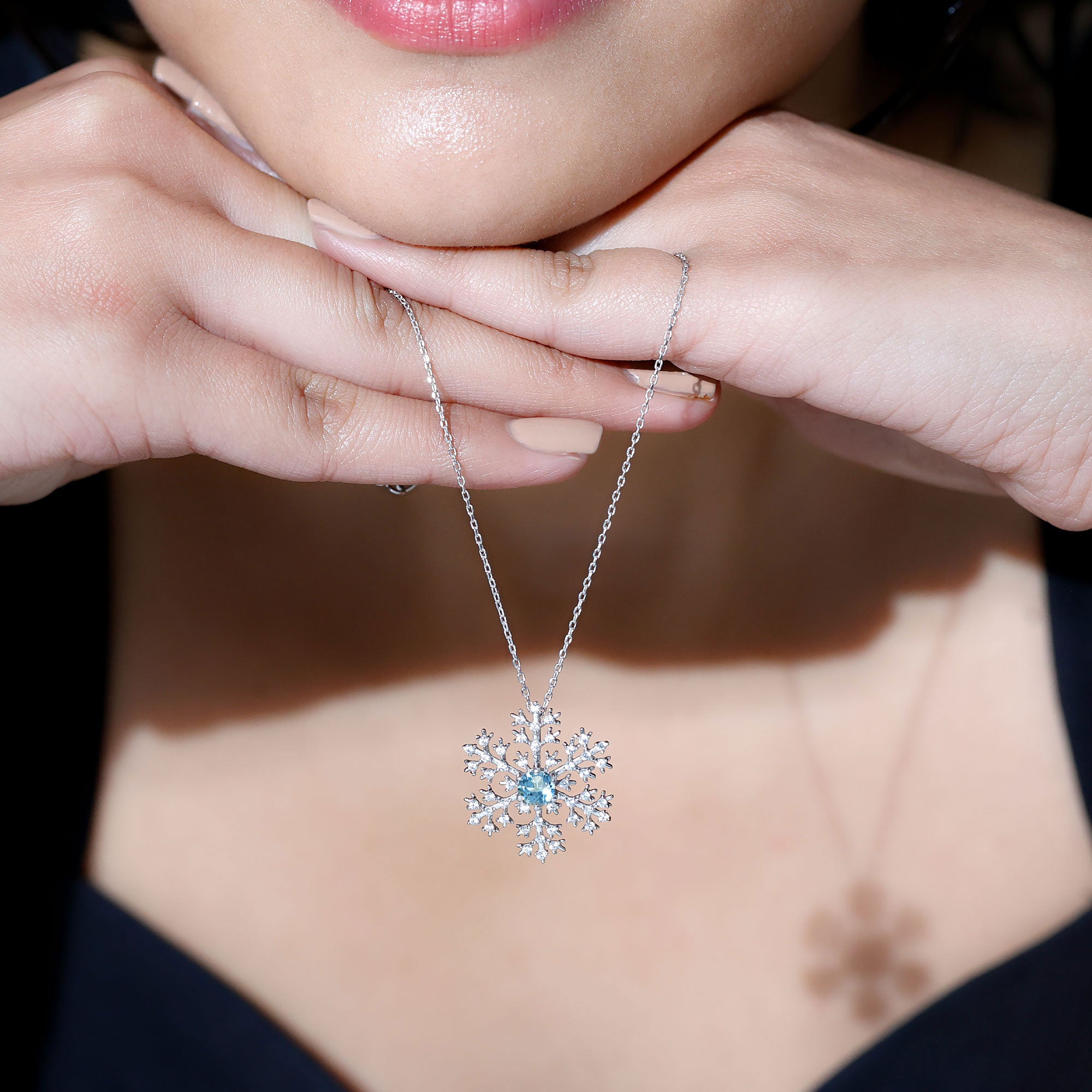 1 CT Swiss Blue Topaz and Diamond Scatter Snowflake Pendant