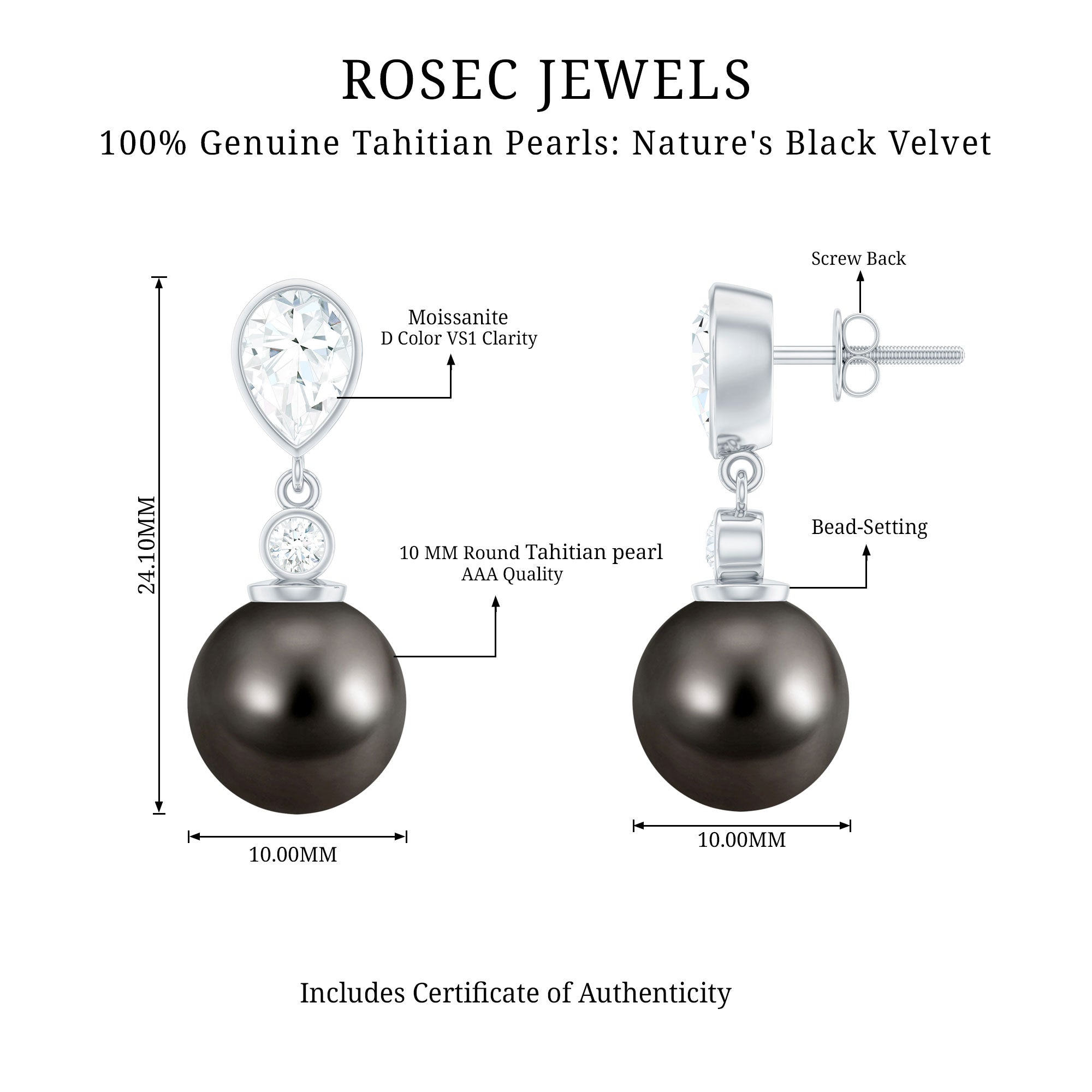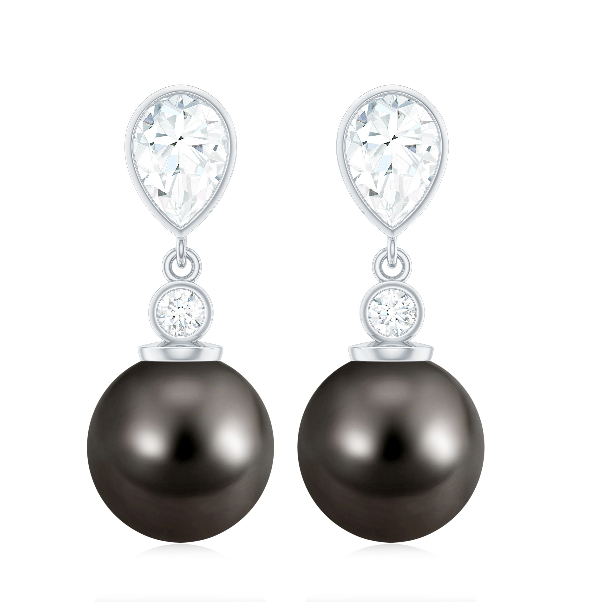 16.75 CT Tahitian Pearl and Moissanite Drop Earrings