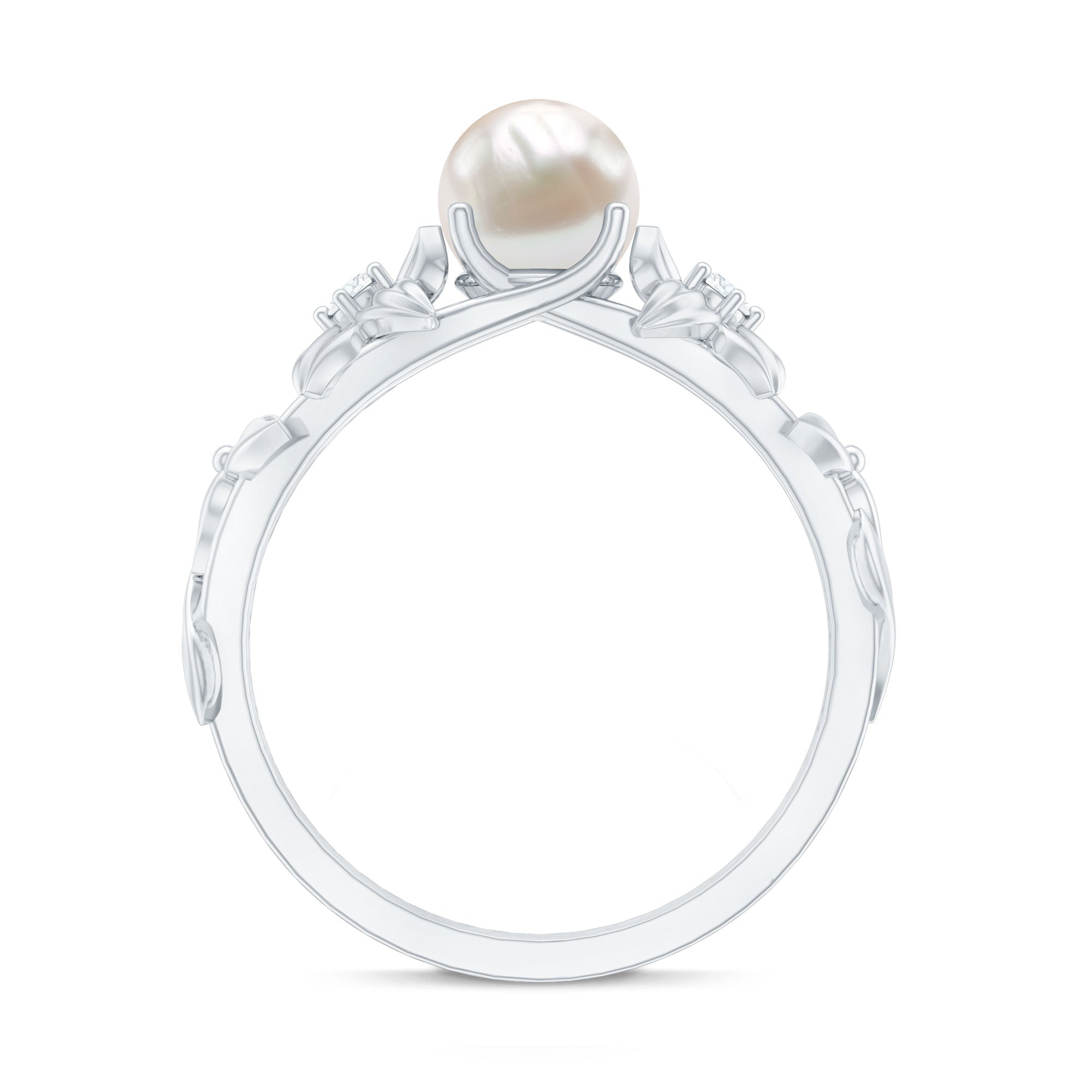 2.25 CT Freshwater Pearl Flower Band Ring with Diamond