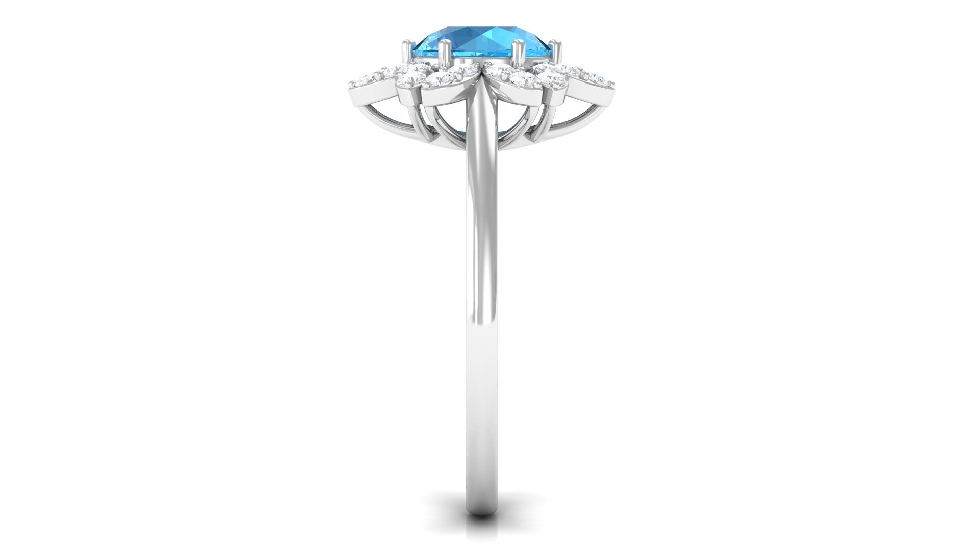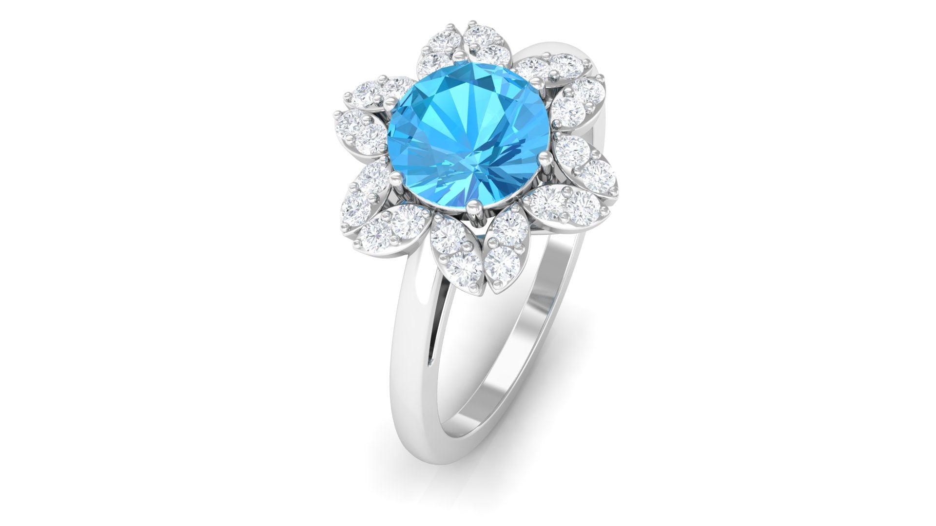 2.25 CT Swiss Blue Topaz Floral Ring with Diamond Halo
