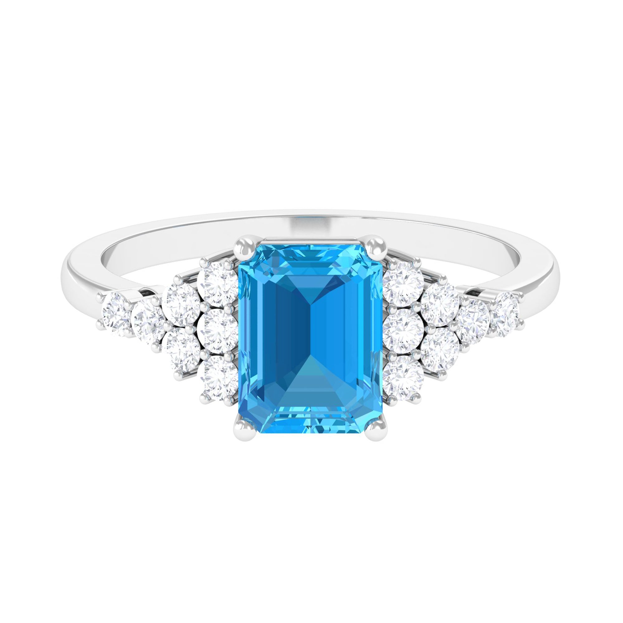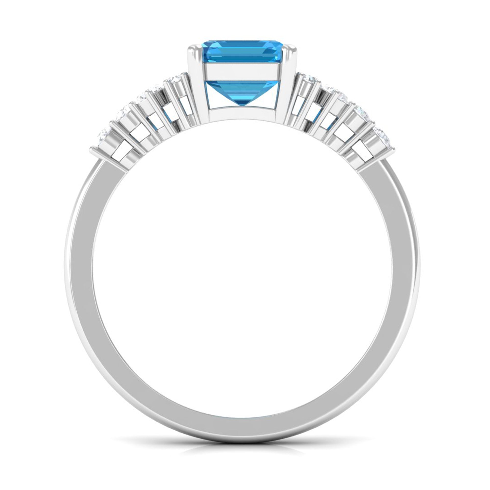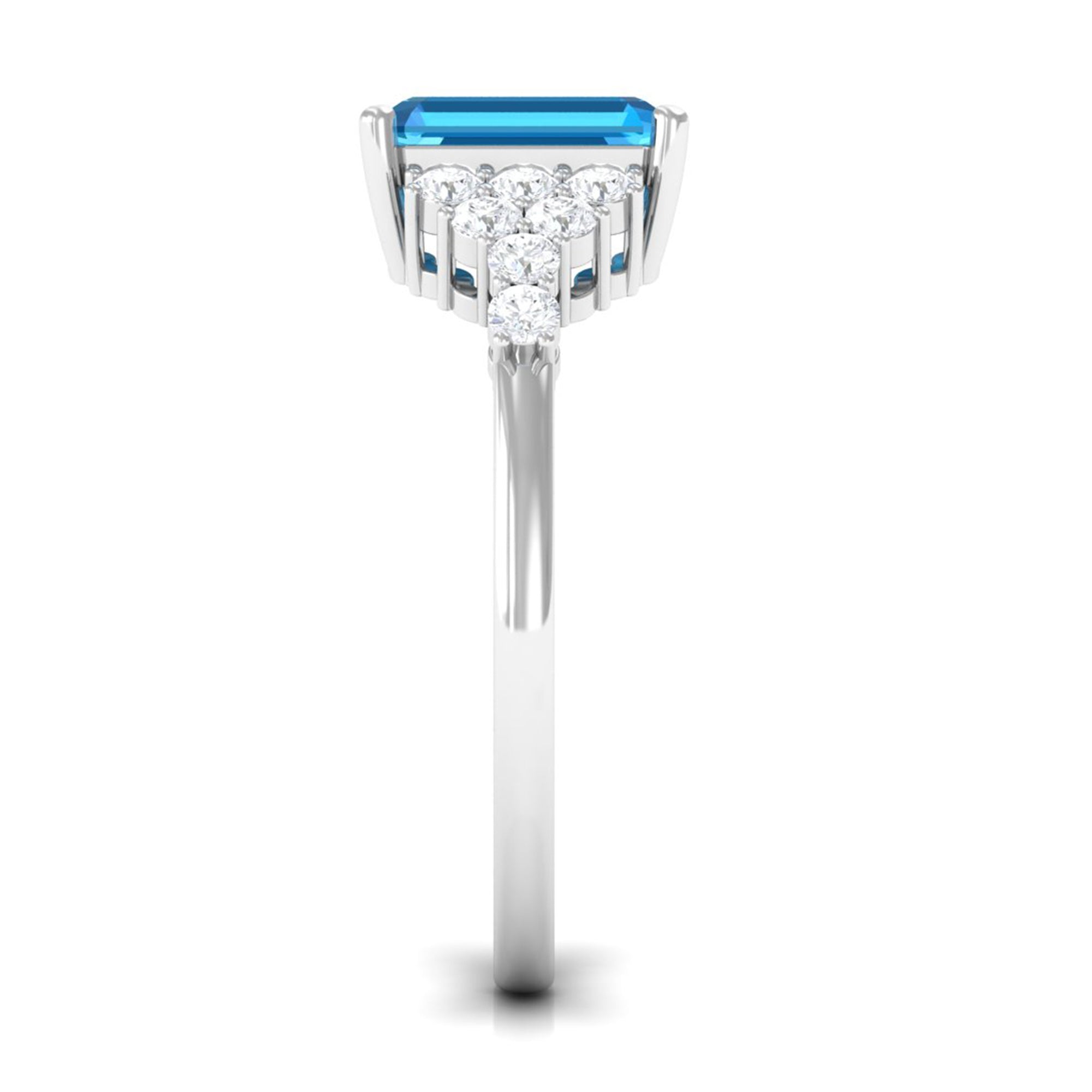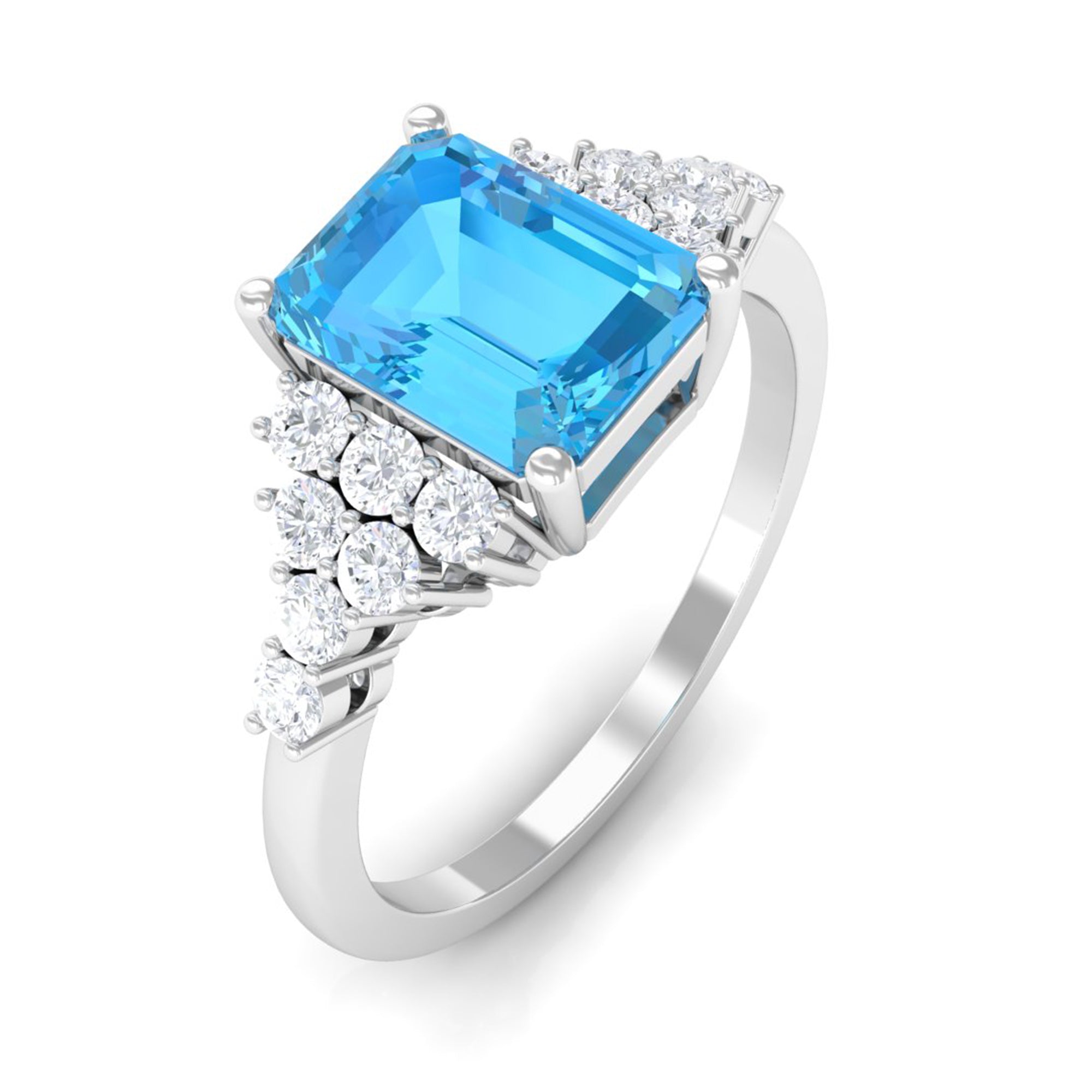 2.50 CT Emerald Cut Swiss Blue Topaz Engagement Ring with Diamond Side Stones