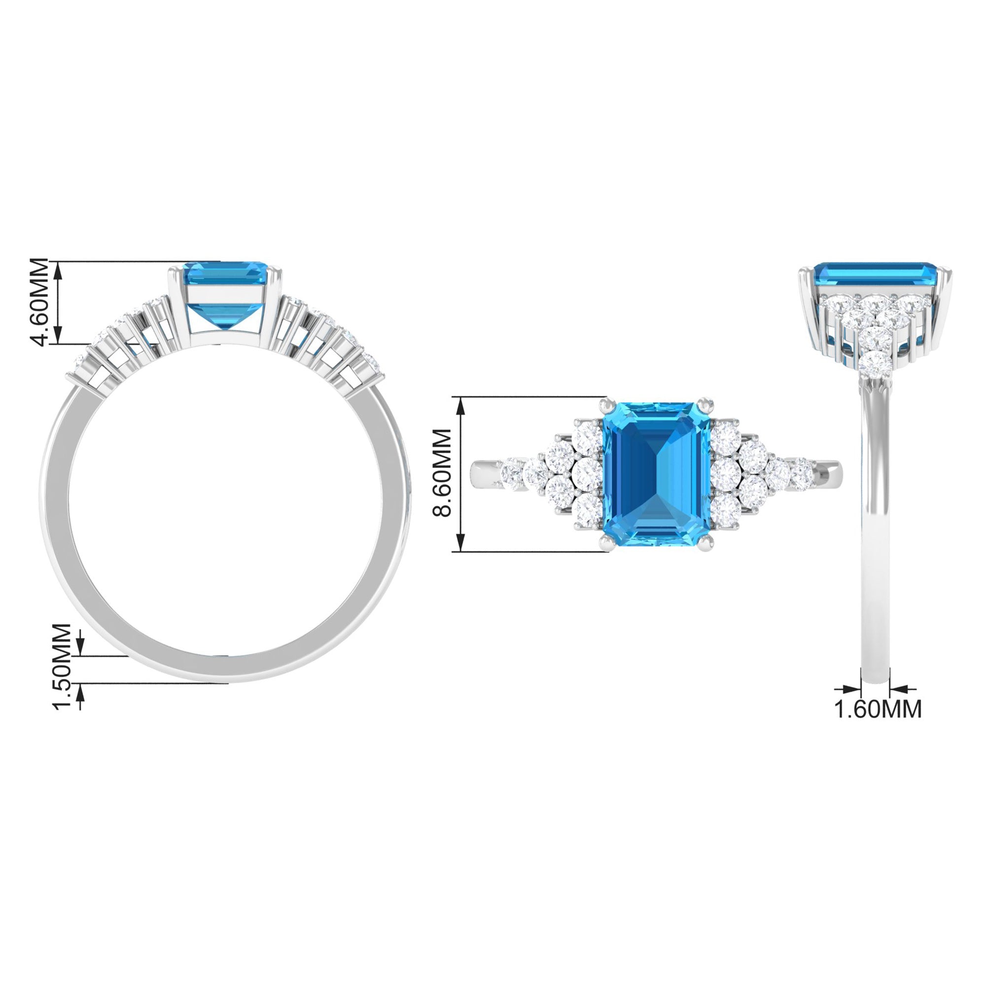 The Engagement Ring is designed with Emerald Cut Swiss Blue Topaz and Round Shape Diamond Side Stones. This 6X8 MM Swiss Blue Topaz Engagement Ring will be a charming piece for a woman to wear on any occasion.