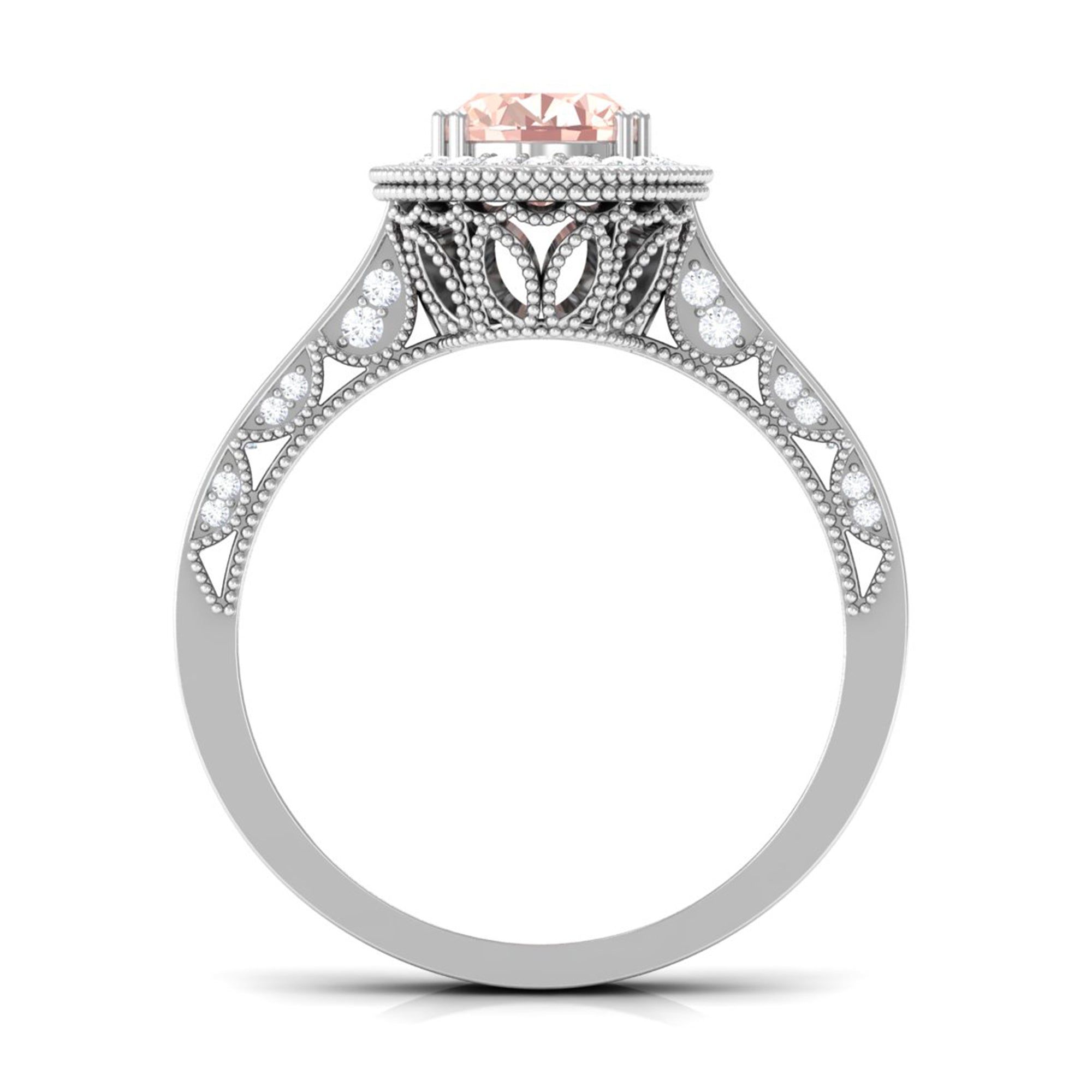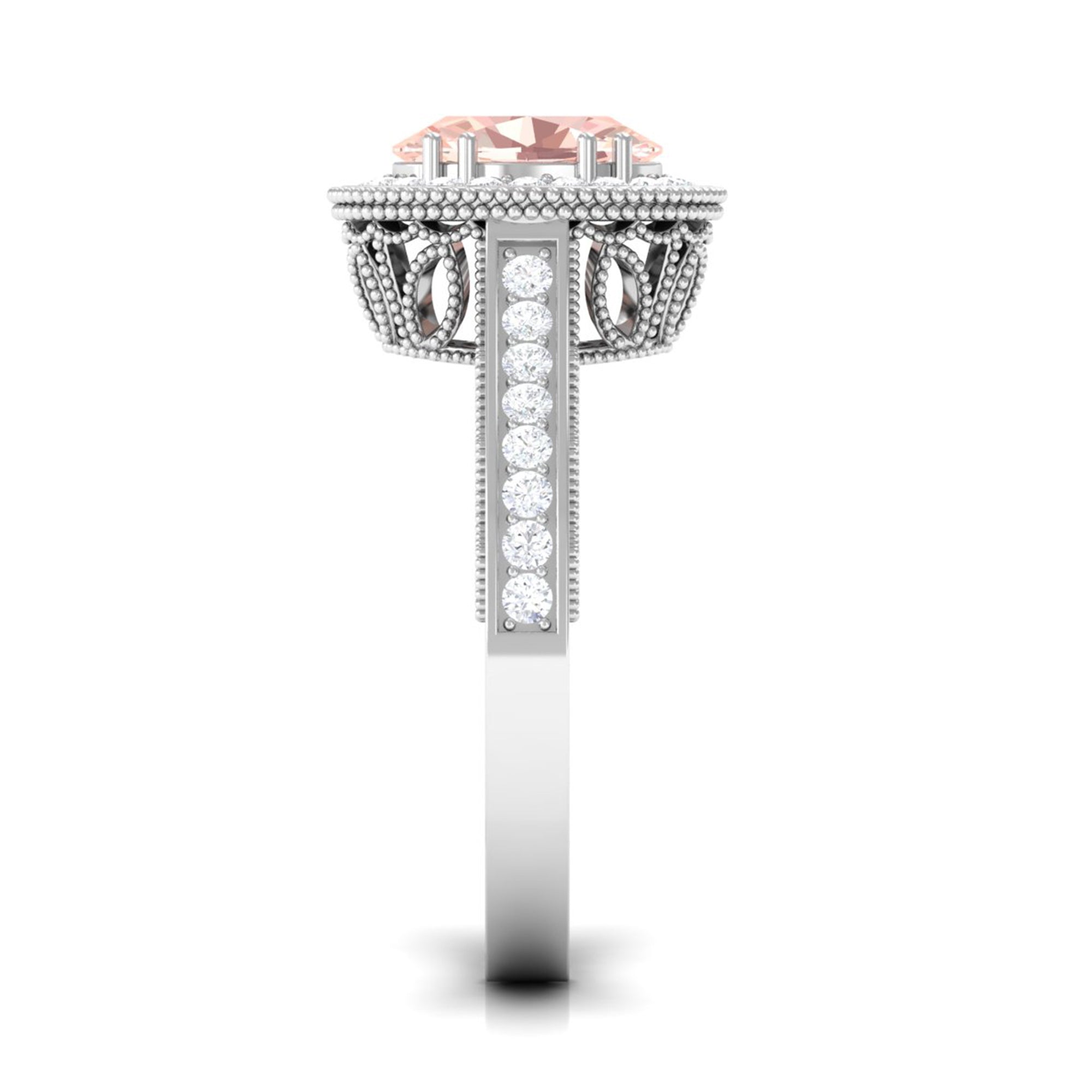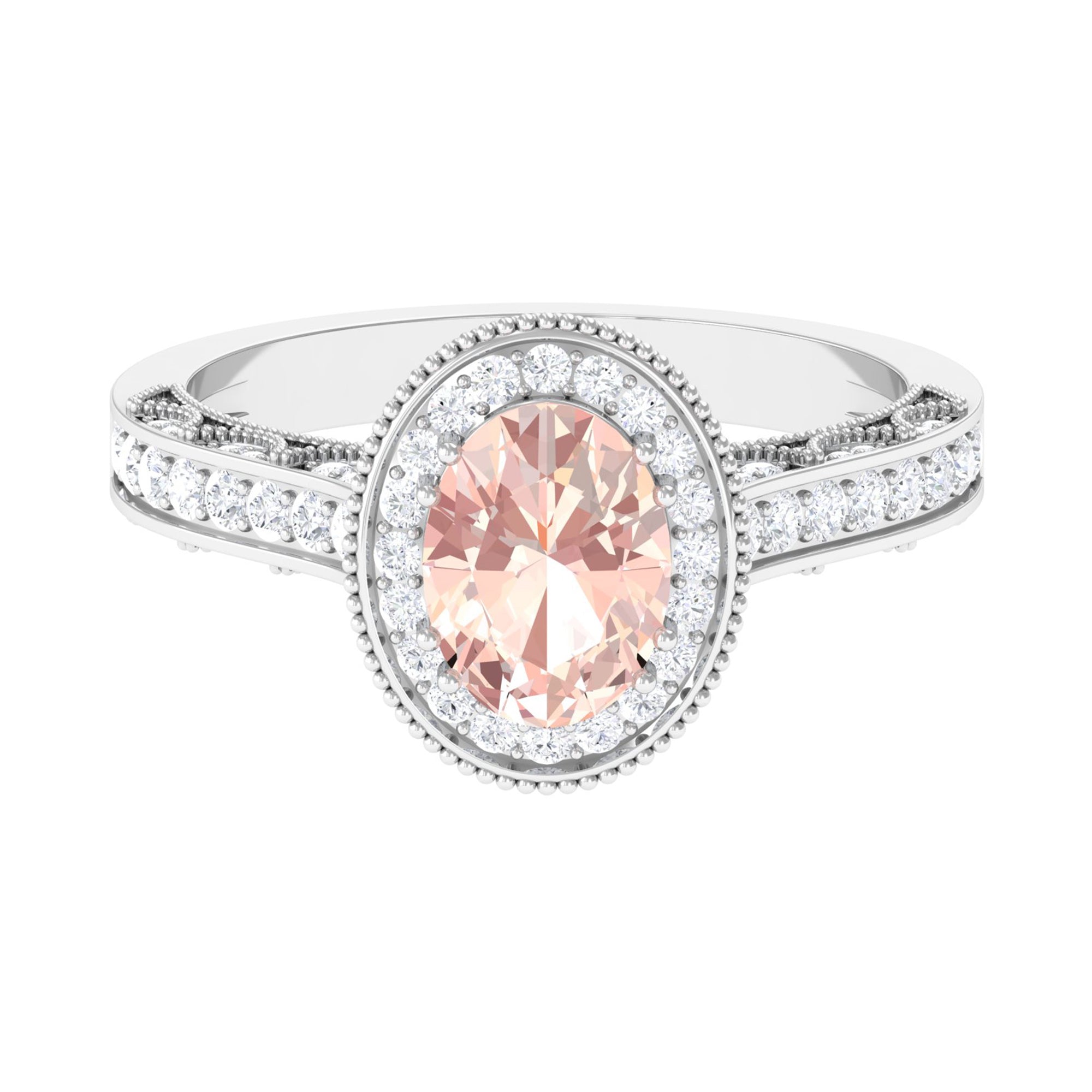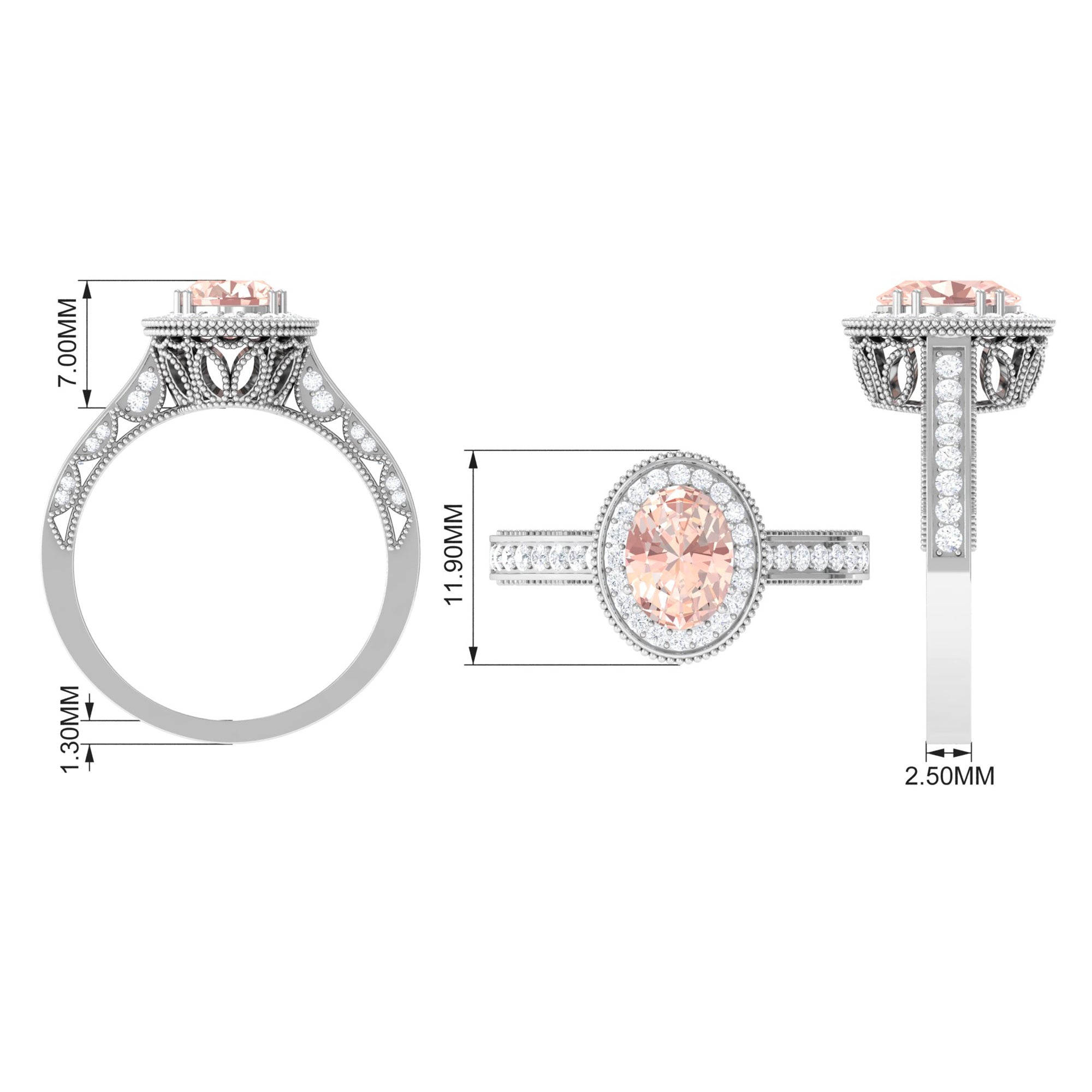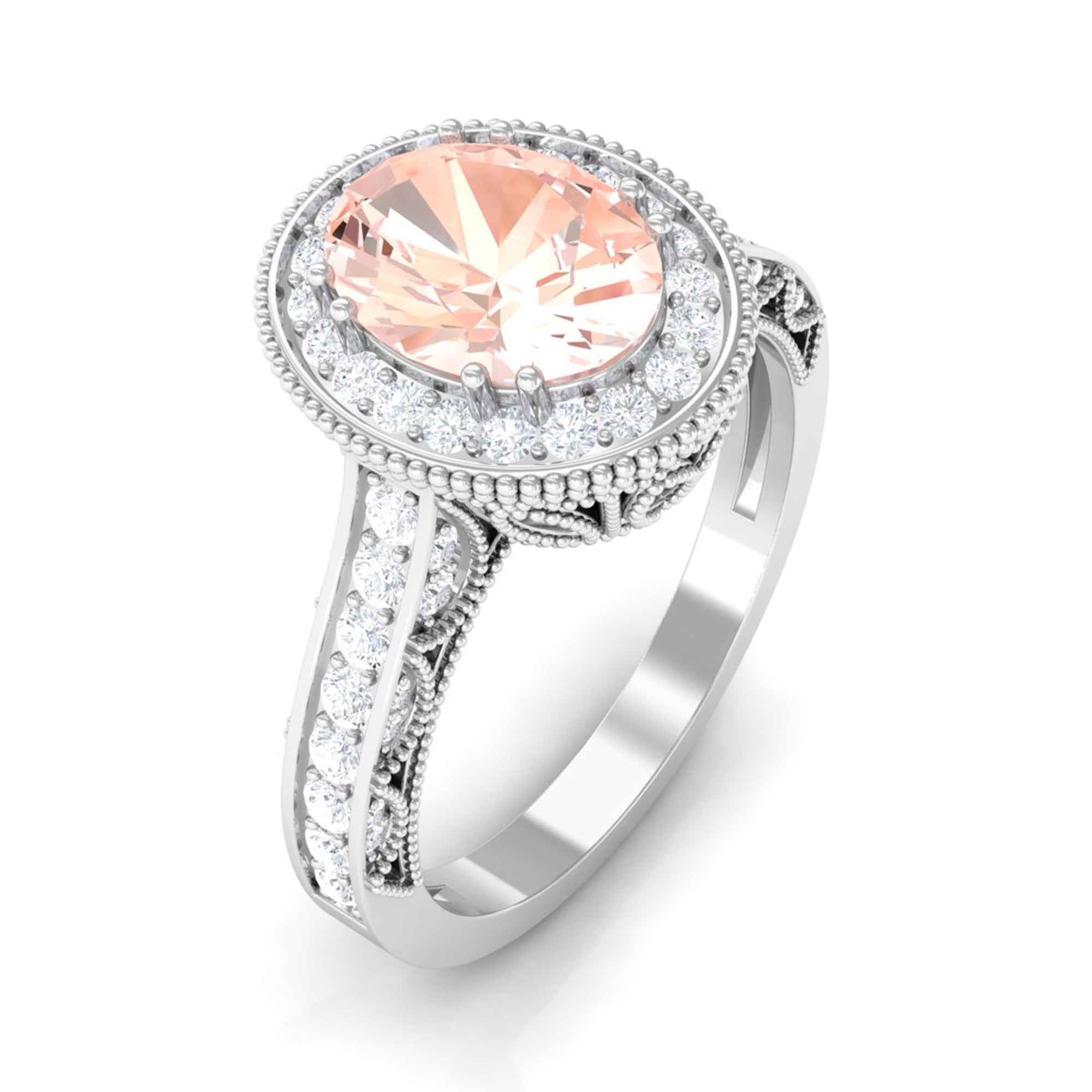 2 CT Morganite Oval Halo Engagement Ring with Diamond