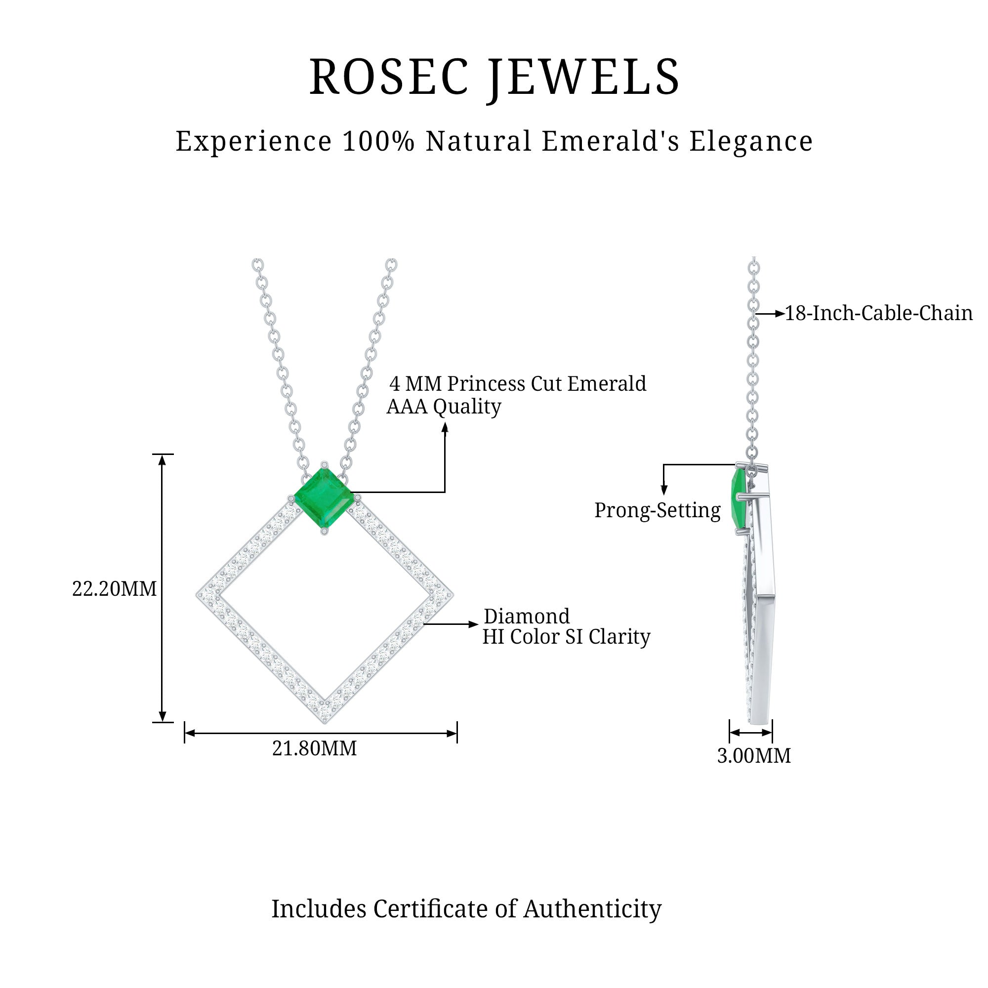 3/4 CT Princess Cut Emerald and Diamond Square Pendant