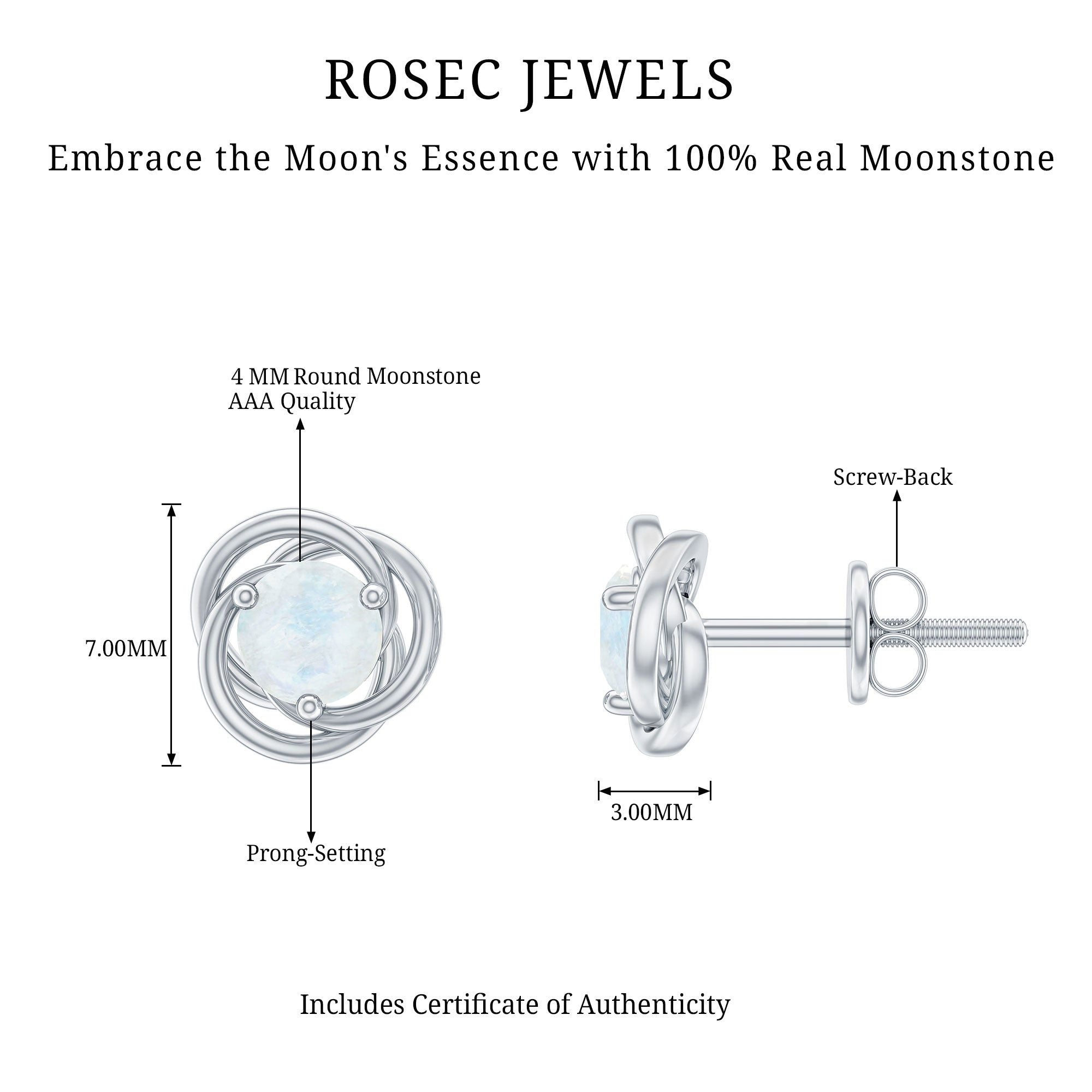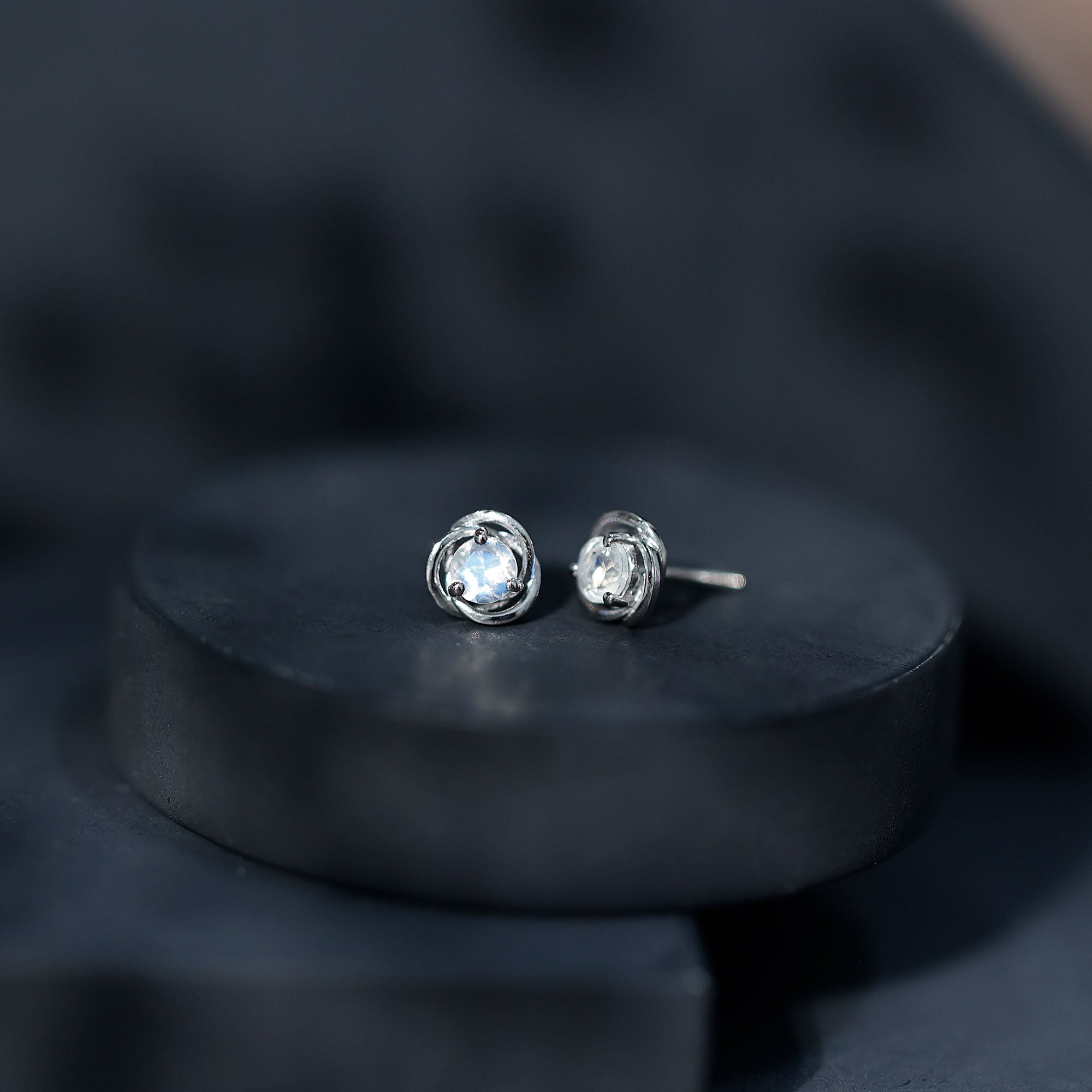 3 Prong Set Solitaire Moonstone Swirl Stud Earrings
