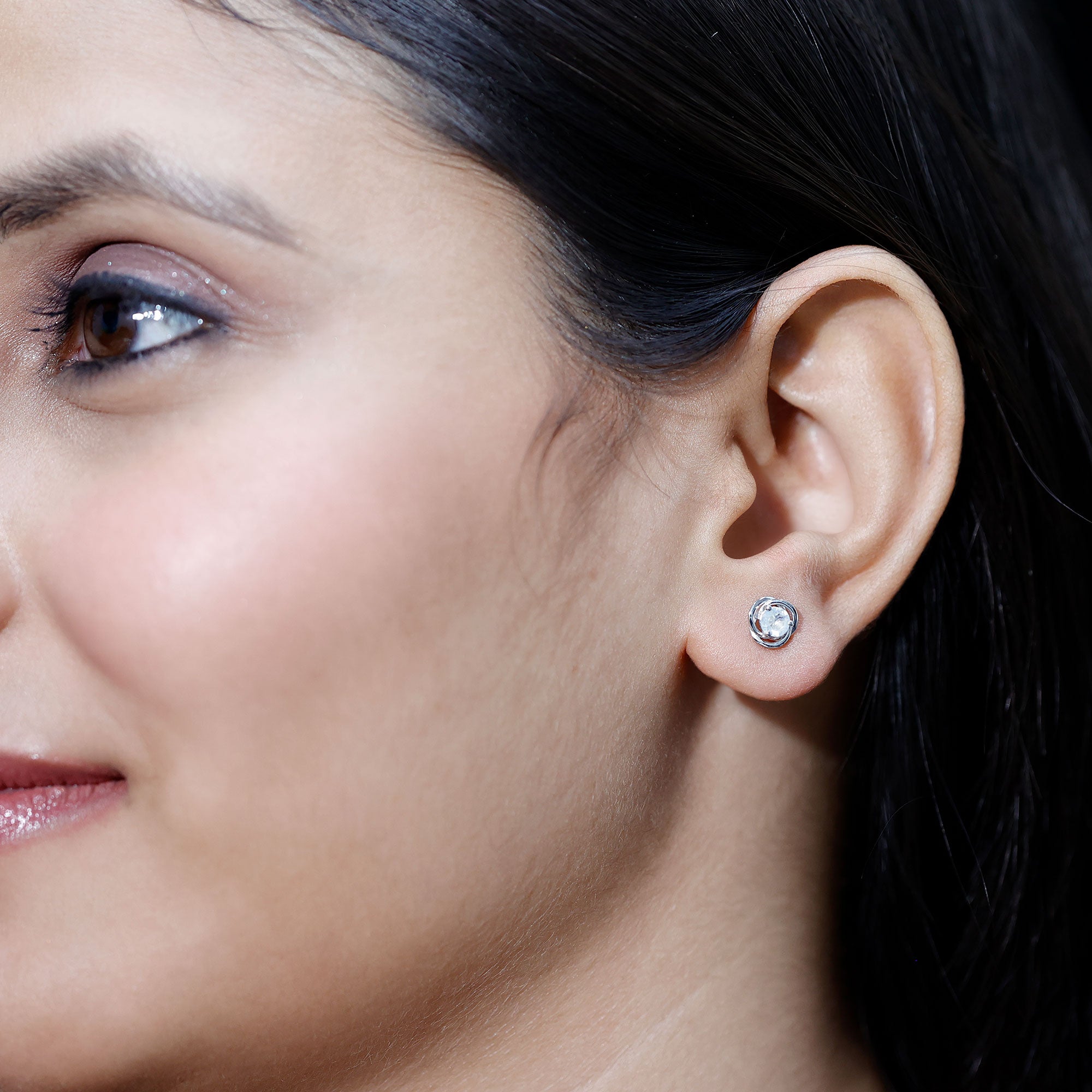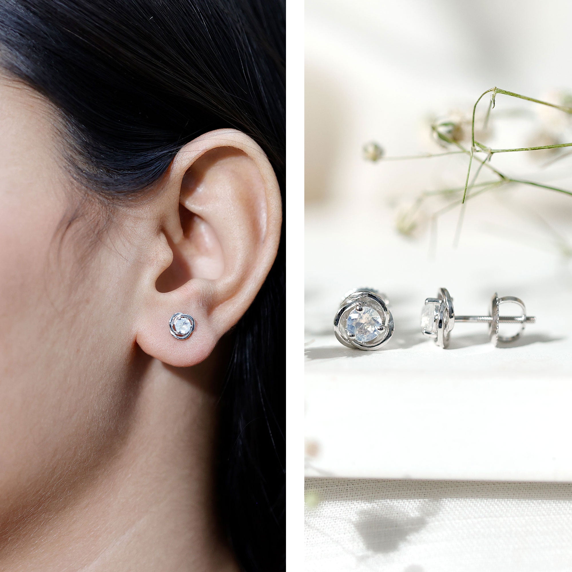 The screw back earrings highlight a 3-prong set round moonstone amid a metal swirl motif for a dramatic effect. The swirl is fashioned out of highly durable metal, that guarantees that the earrings will last for years to come. Having screw back closures, the earring pair deserves to be your everyday go-to piece that helps you exude minimalist elegance.