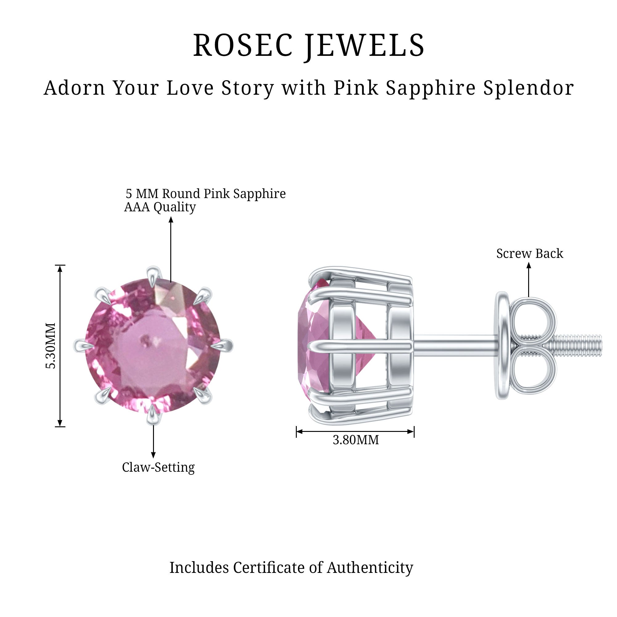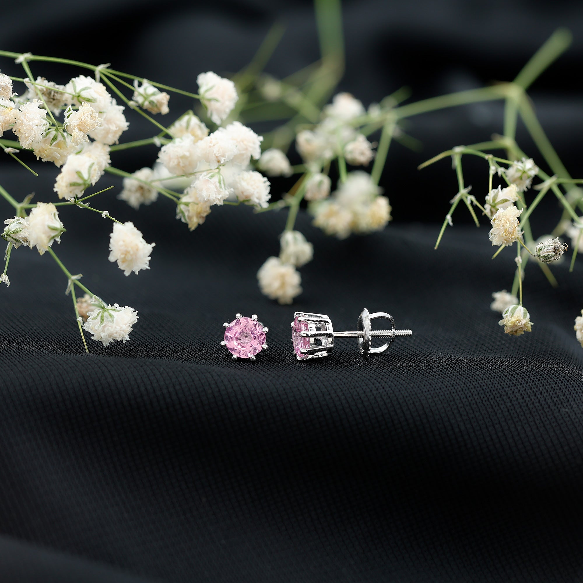 4.5 MM Natural Pink Sapphire Solitaire Stud Earrings in 8 Claw Prong Setting