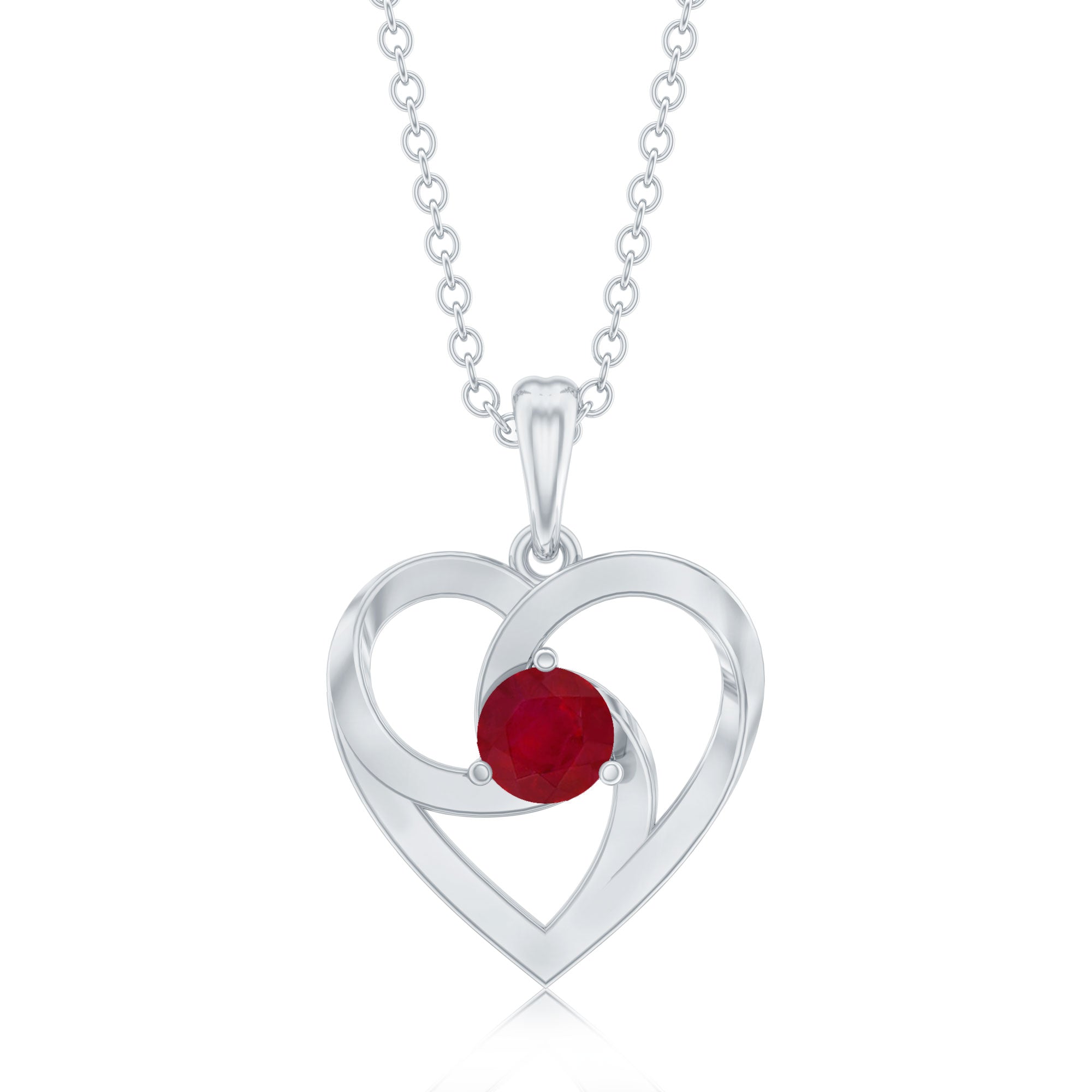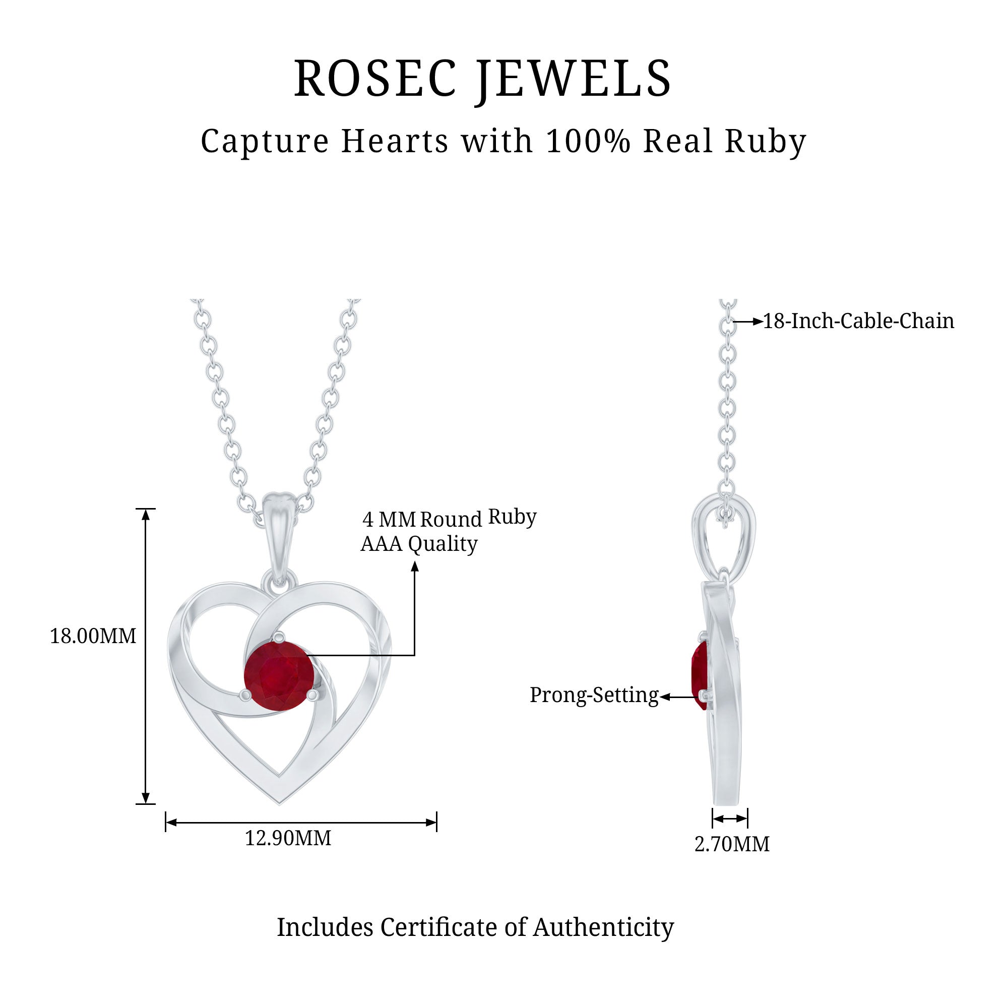 4 MM Round Cut Solitaire Ruby Heart Pendant Necklace