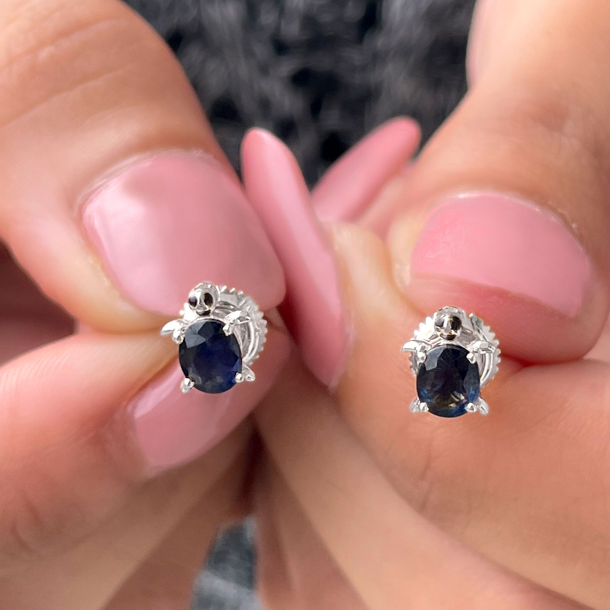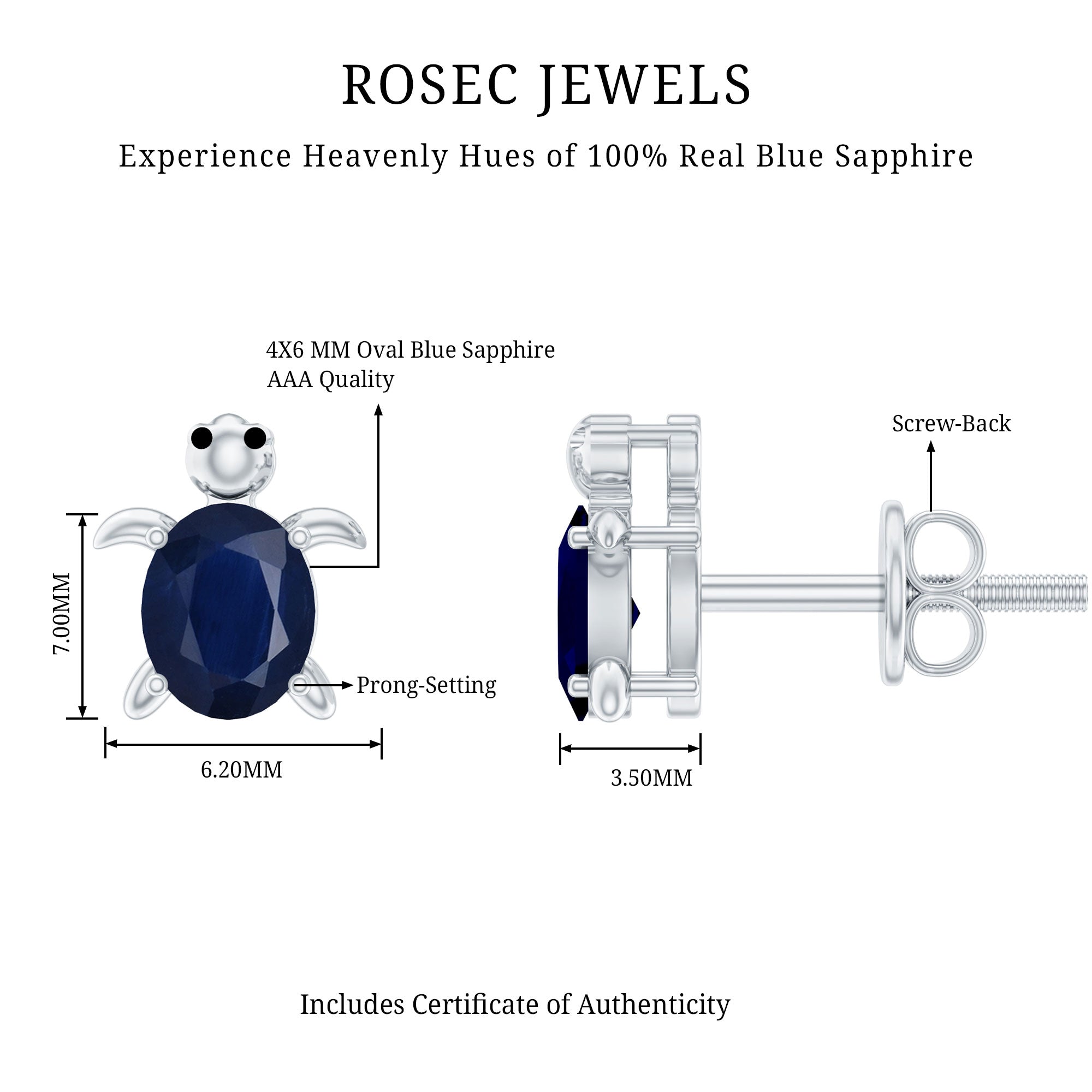 4X5 MM Oval Cut Blue Sapphire Turtle Solitaire Stud Earrings in Prong Setting