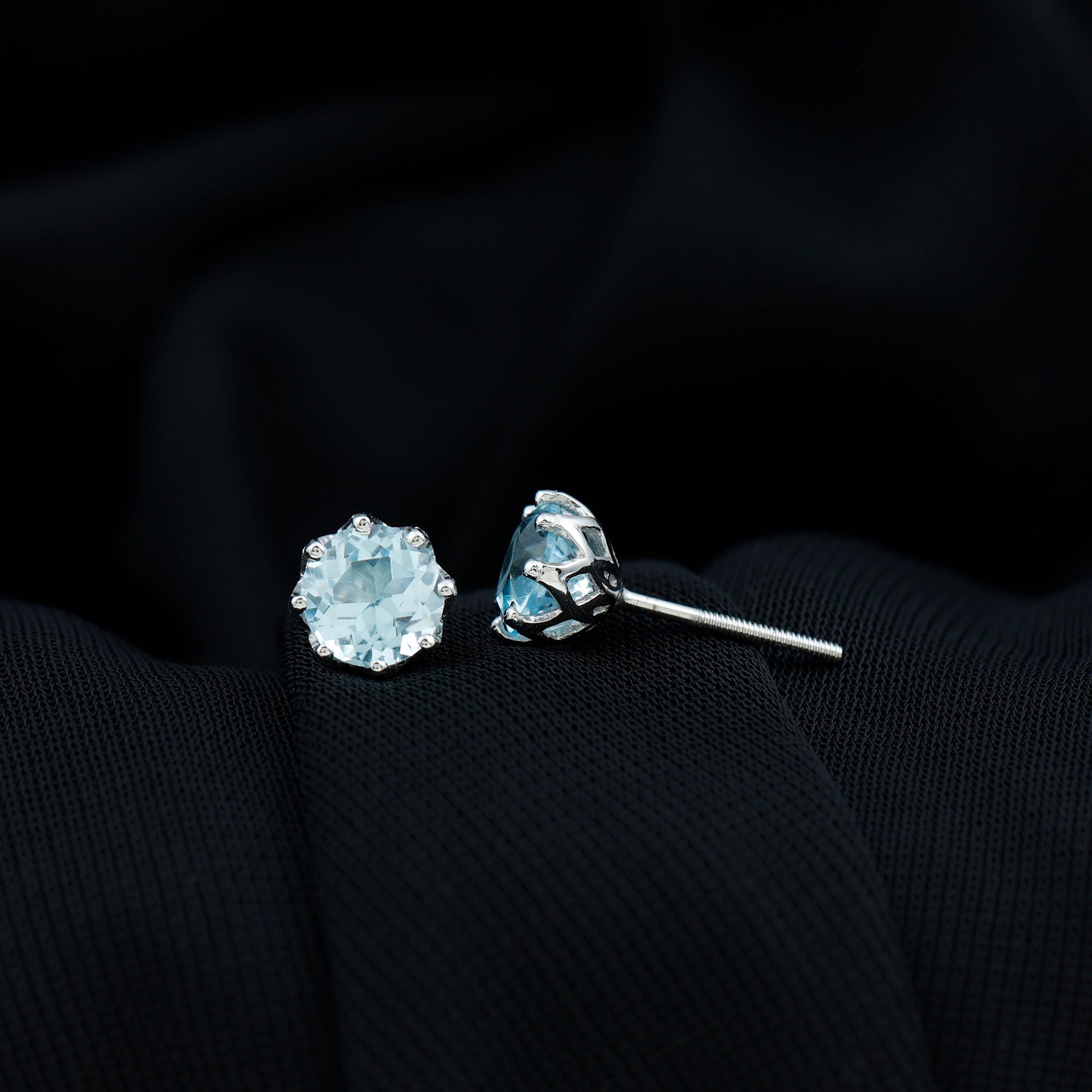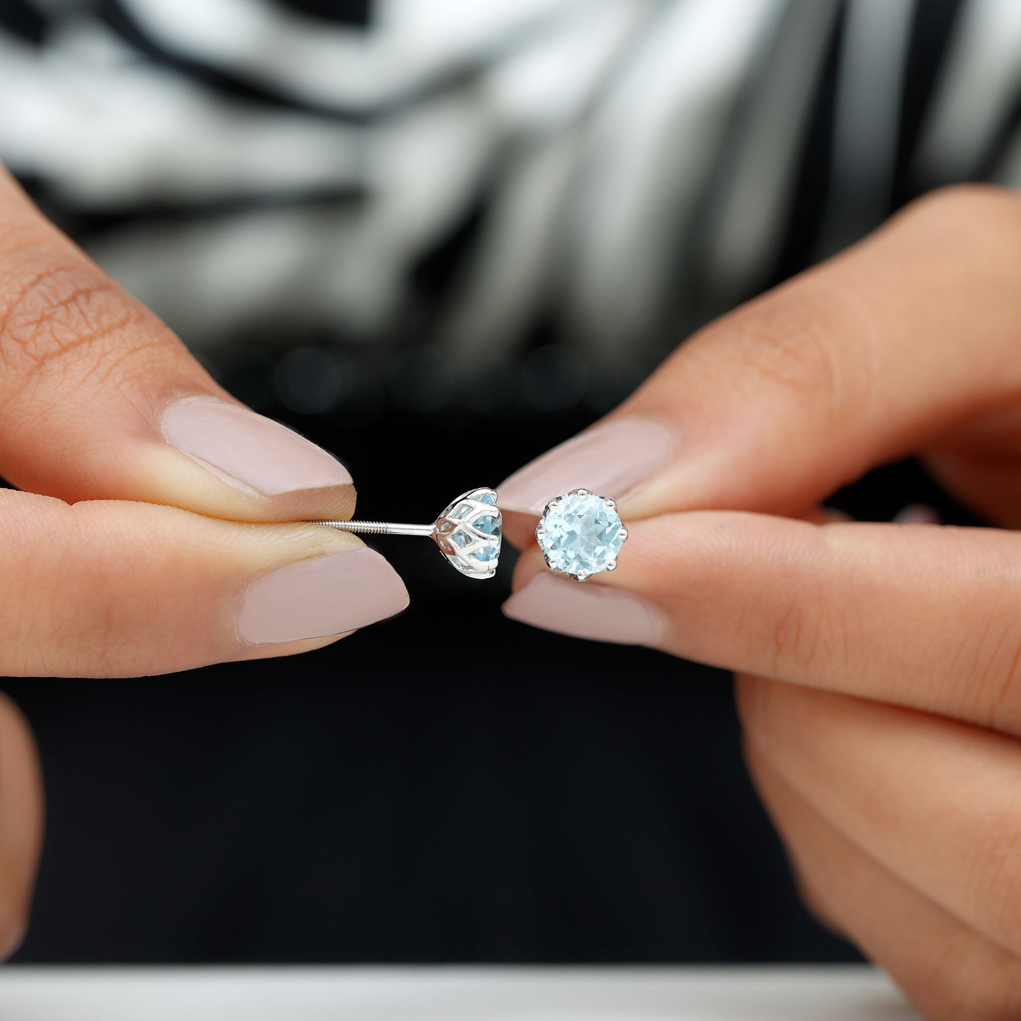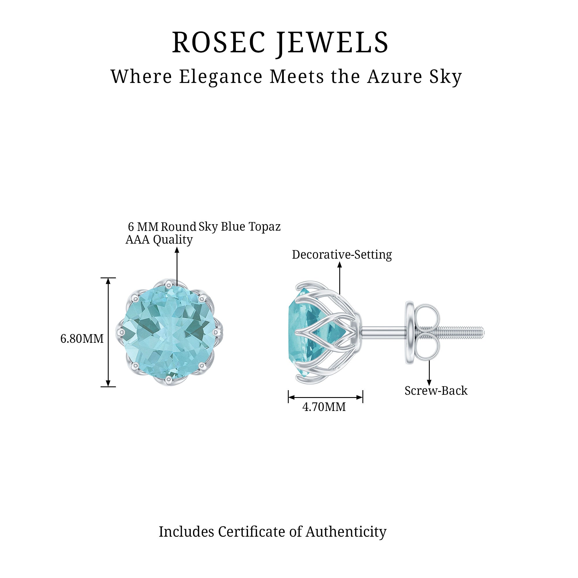 6 MM Decorative Sky Blue Topaz Solitaire Stud Earrings