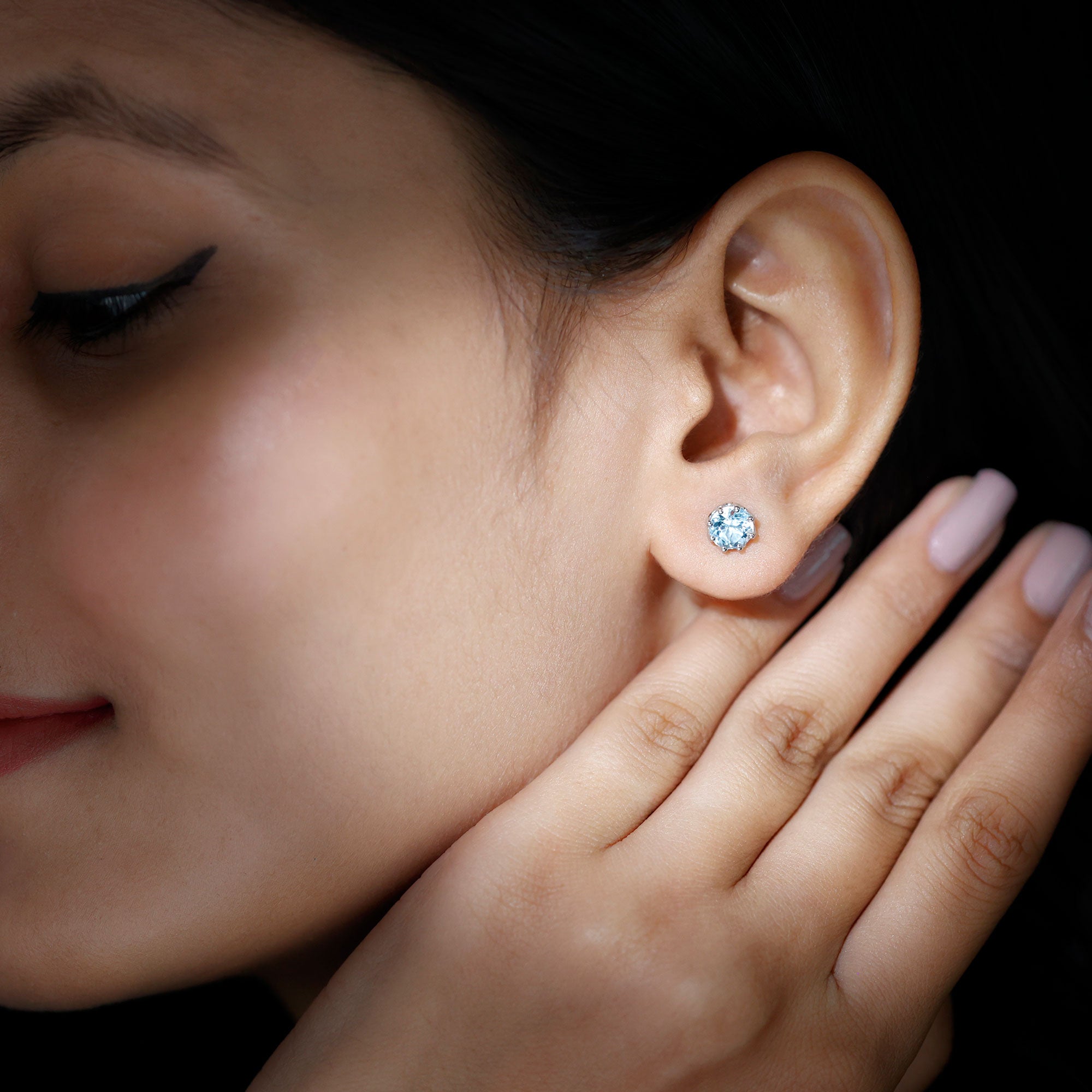 This Solitaire Floral Earring is studded with a Round Shape Sky Blue Topaz as Solitaire in Floral Setting. This Solitaire Stud Earring is an ideal piece of Fine Jewelry for simple and subtle looks.