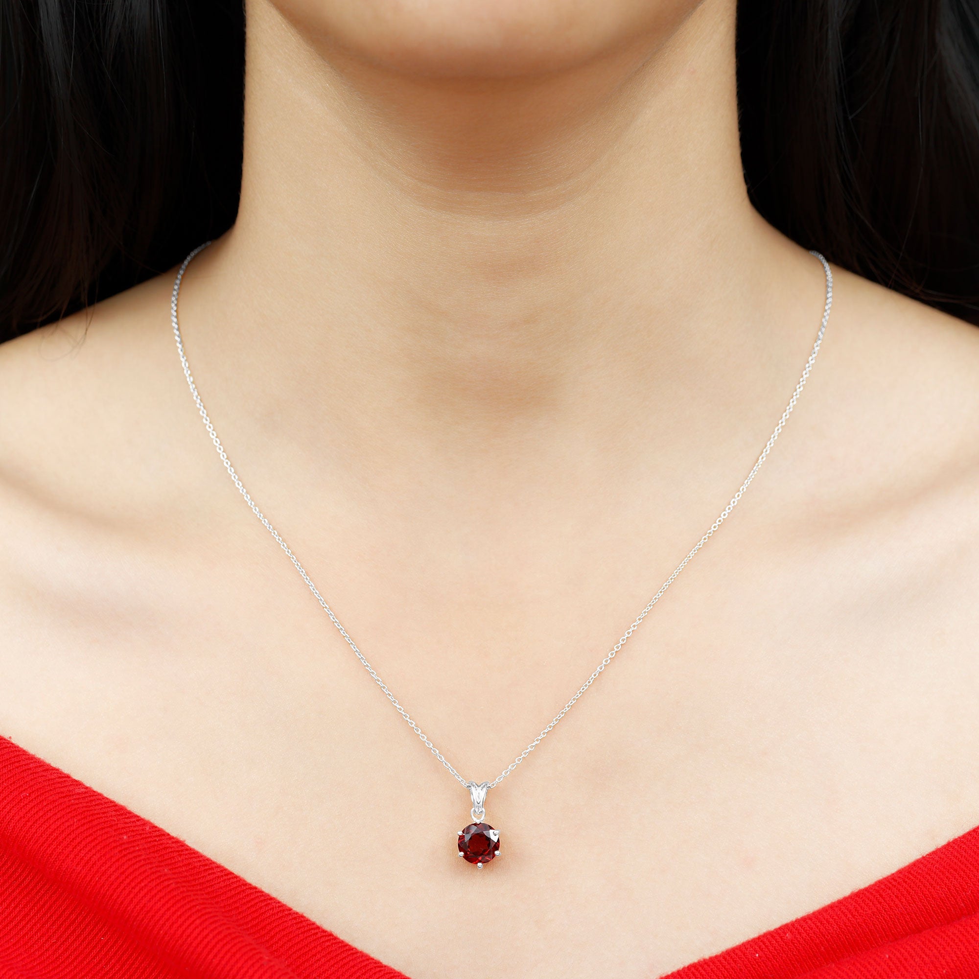 Sparkle your outfit with this Round Solitaire Pendant. It features with round shape Garnet in 6 Prong Setting on Garnet Pendant. Be it any occasion this Pendant Charm will look good.