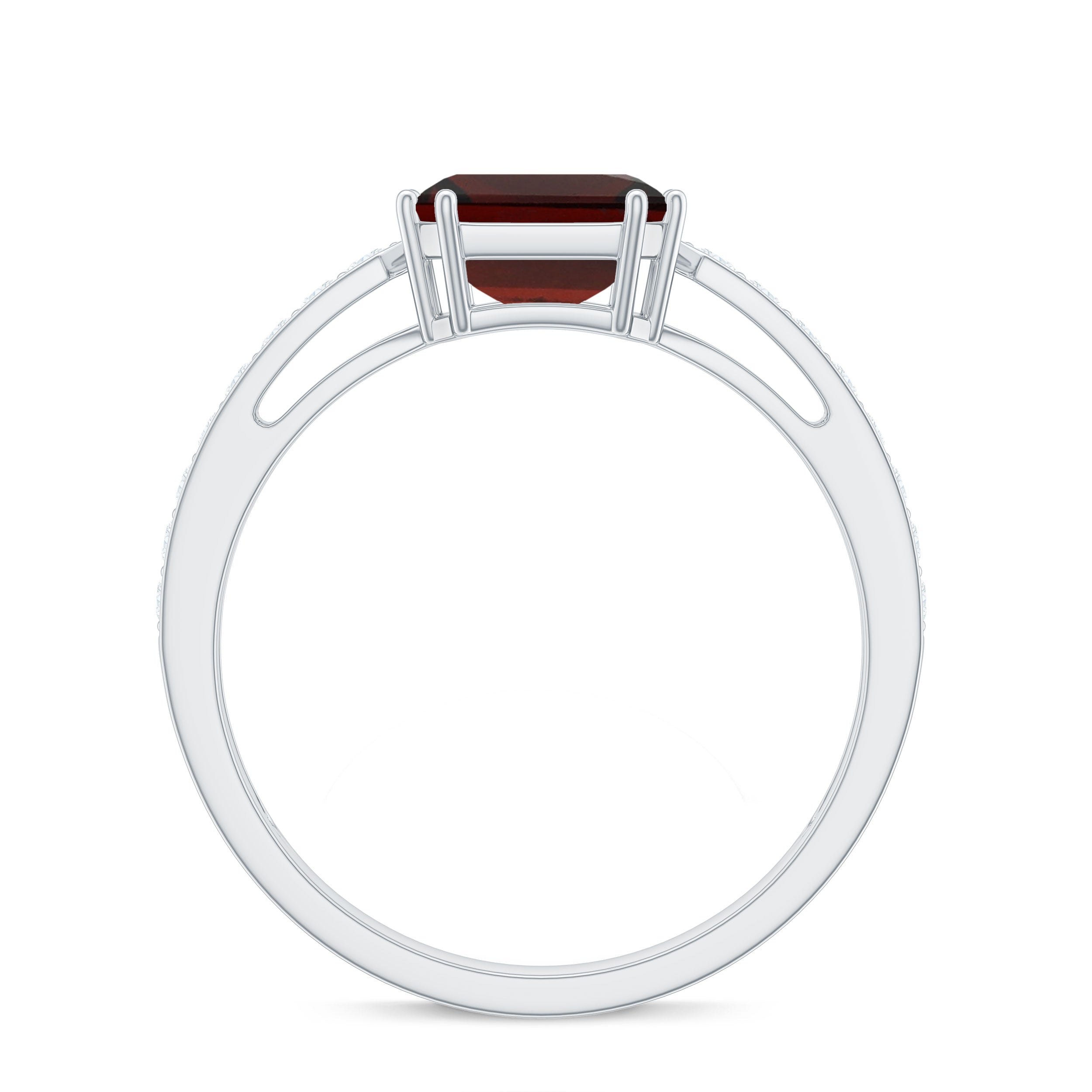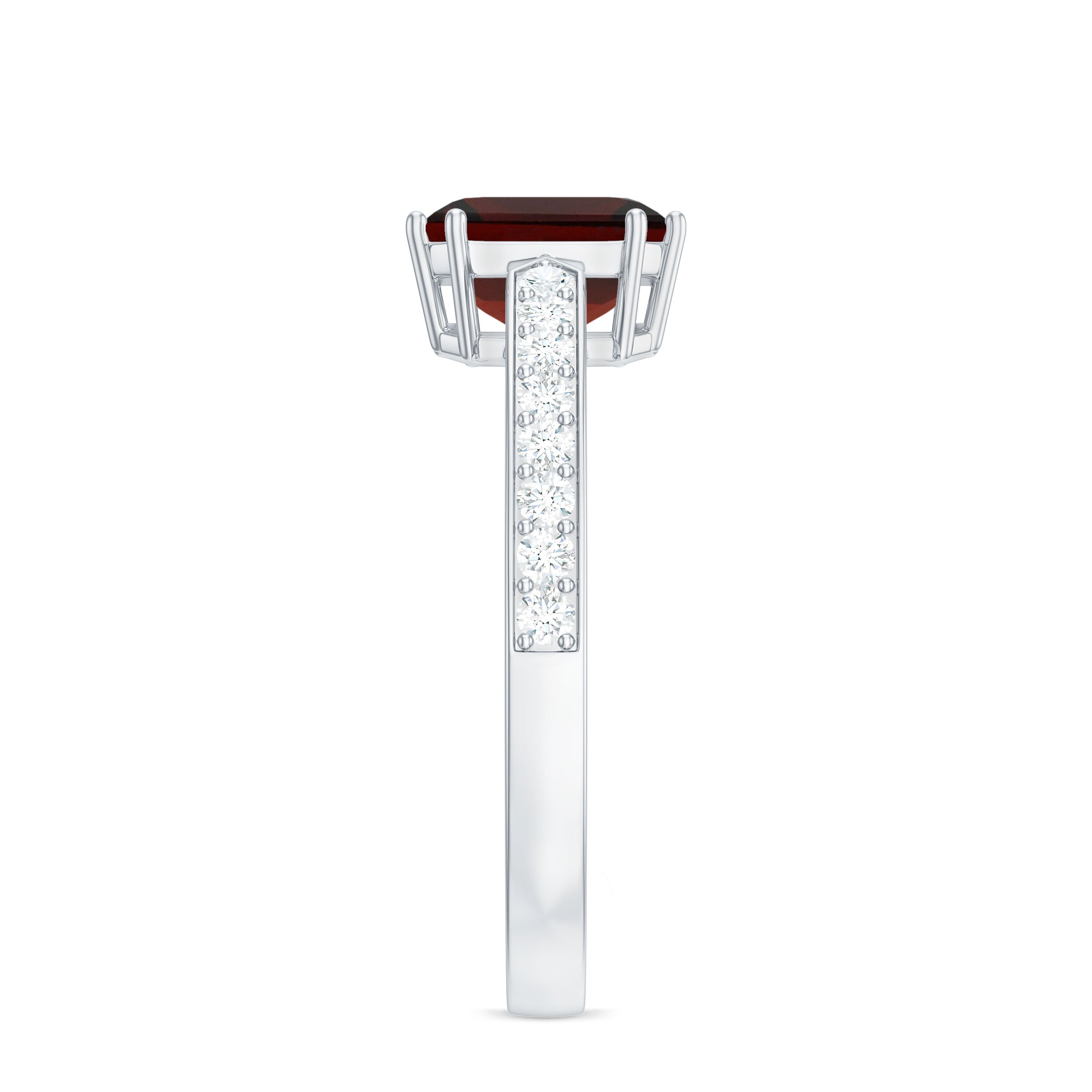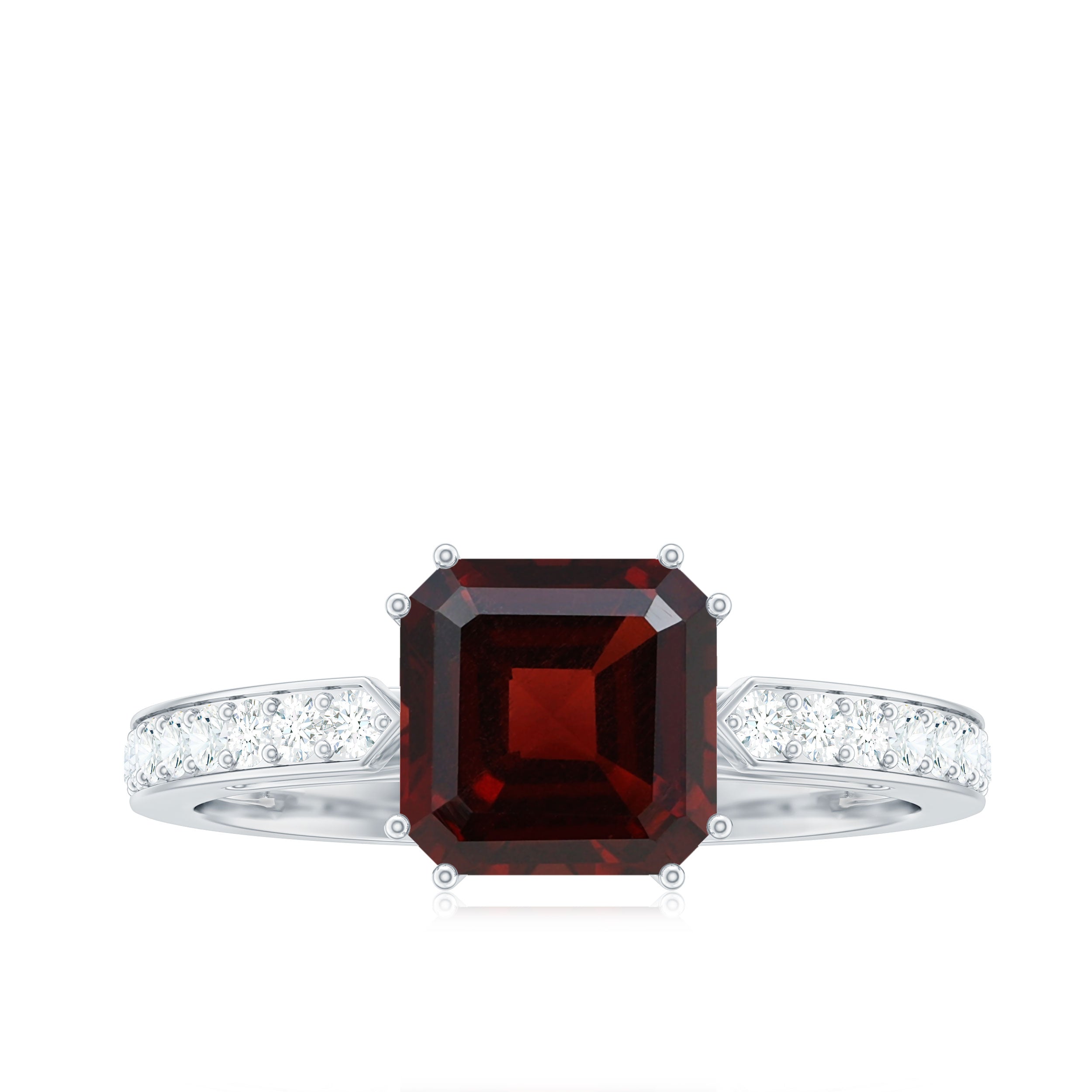 Natural Garnet 8 mm Asscher Cut Engagement Ring with Diamond