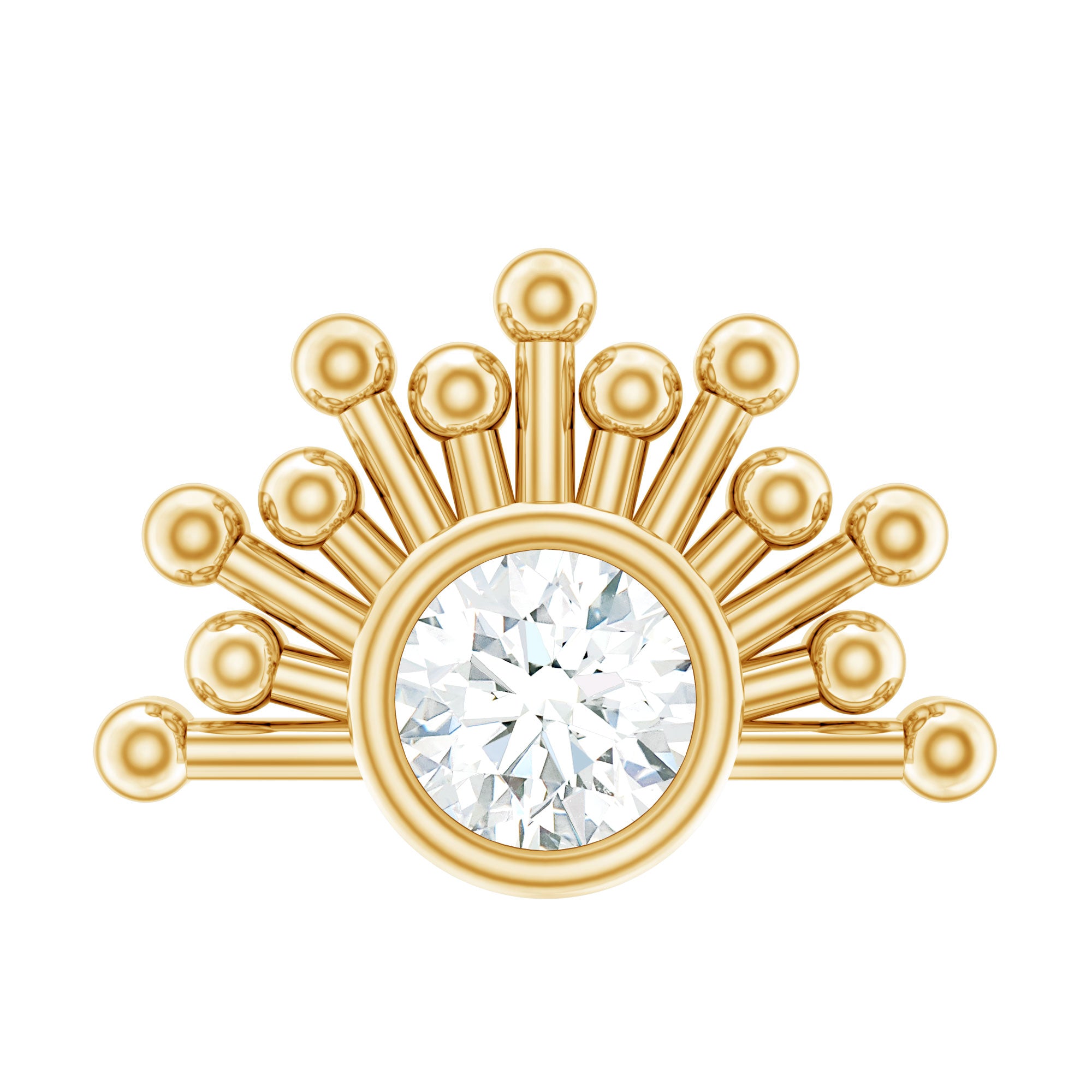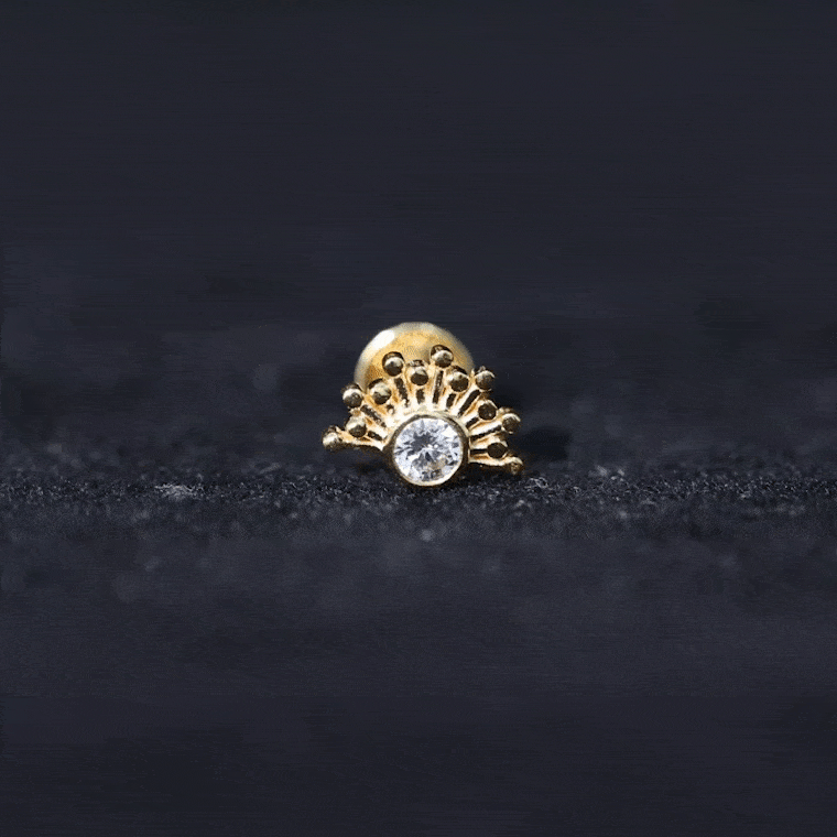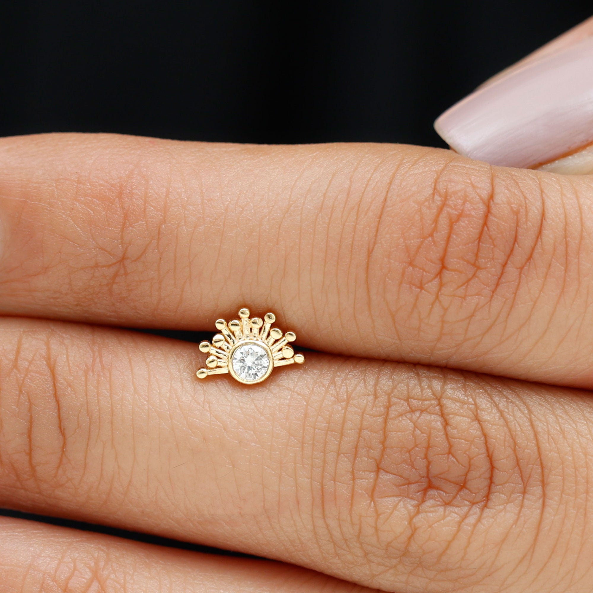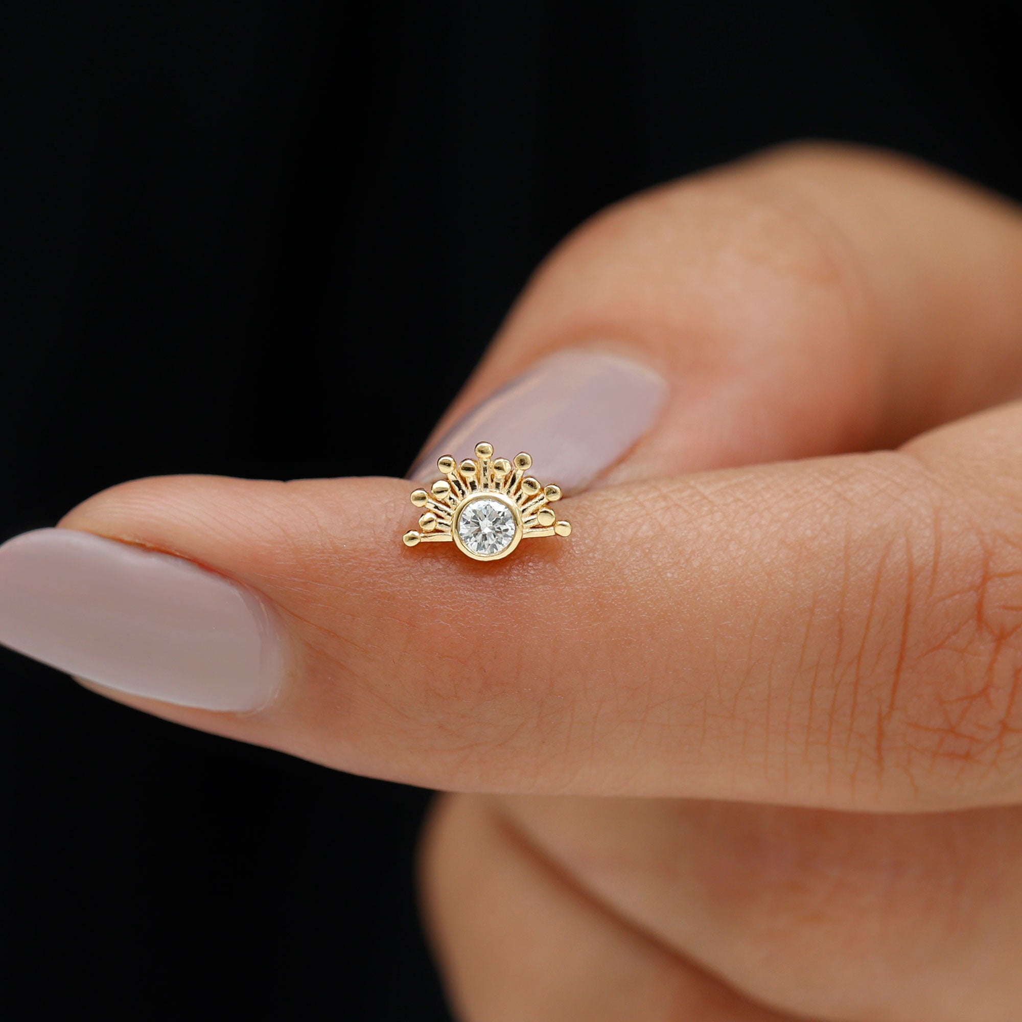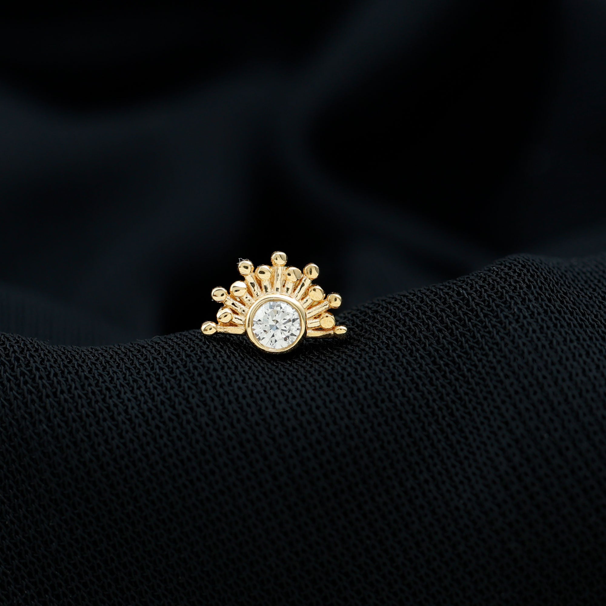 Bezel Set Diamond Gold Sunburst Earring for Helix Piercing