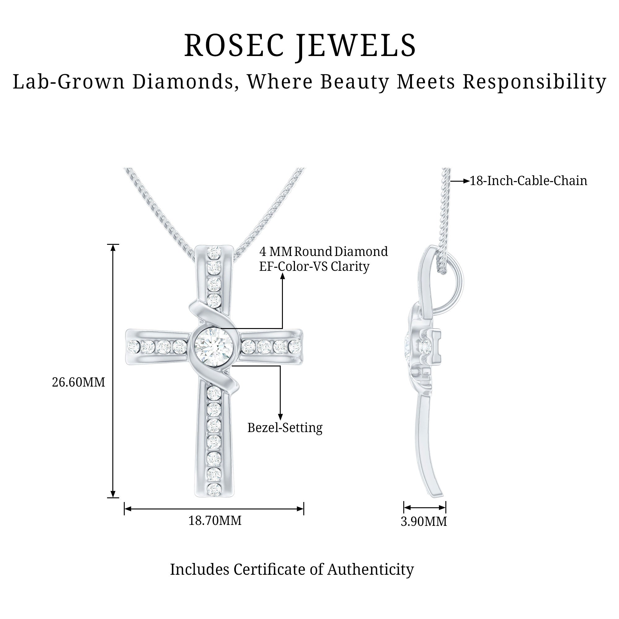 Bezel Set Lab Grown Diamond Cross Religious Necklace