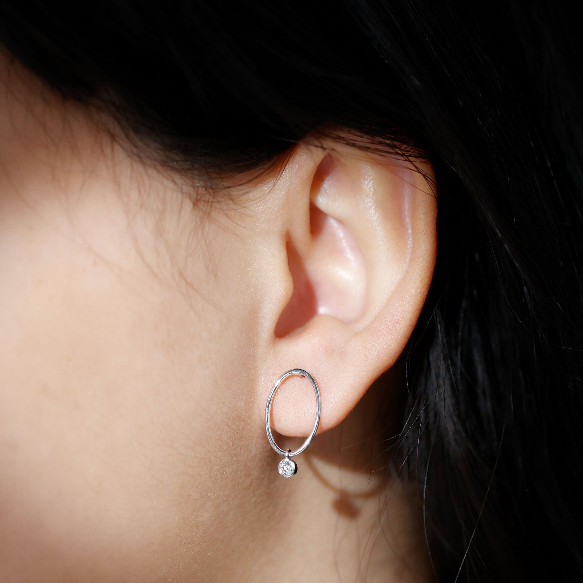 Bezel Set Moissanite Front Facing Hoop Drop Earrings