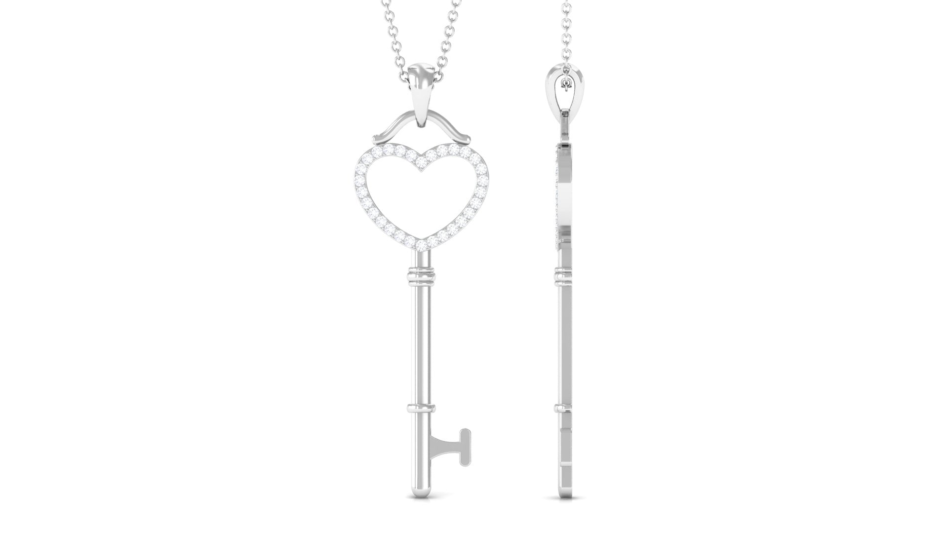 Elegant and full of meaning, this Heart Key Necklace is the perfect blend of charm and emotion. Designed in the shape of a classic key, it features an open heart shaped top beautifully outlined with shimmering D-VS1 Quality Moissanite stones in surface prong setting for added brilliance and elegance. They body of the key has a smooth and polished finish, giving it a modern and graceful feel. The unique design makes this Key Locket more than just a piece of jewelry - it is a symbol of love, trust, and unforgettable memories. It makes a heartfelt gift for birthdays, anniversaries, Valentines Day, or simply to remind someone how much they mean to you.