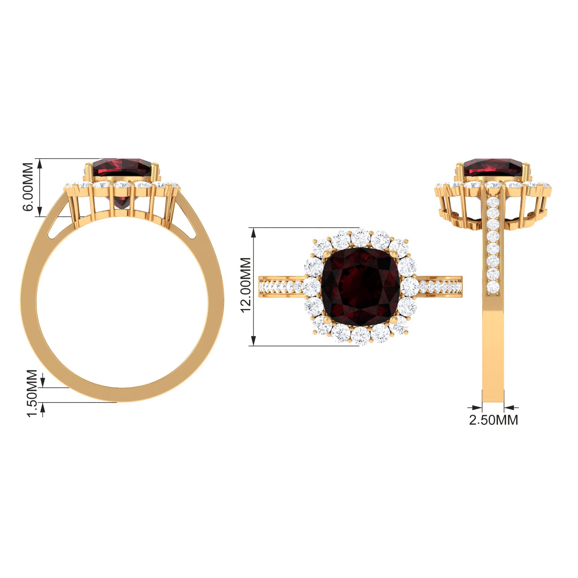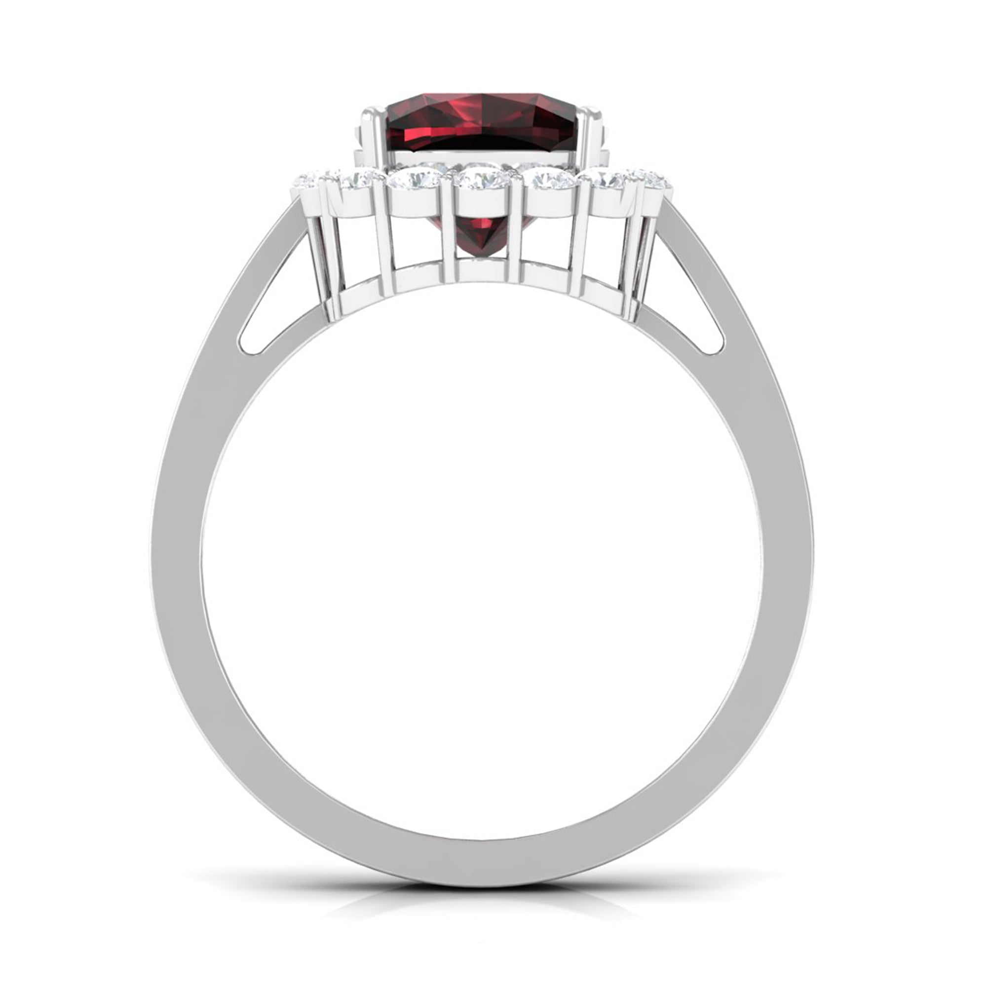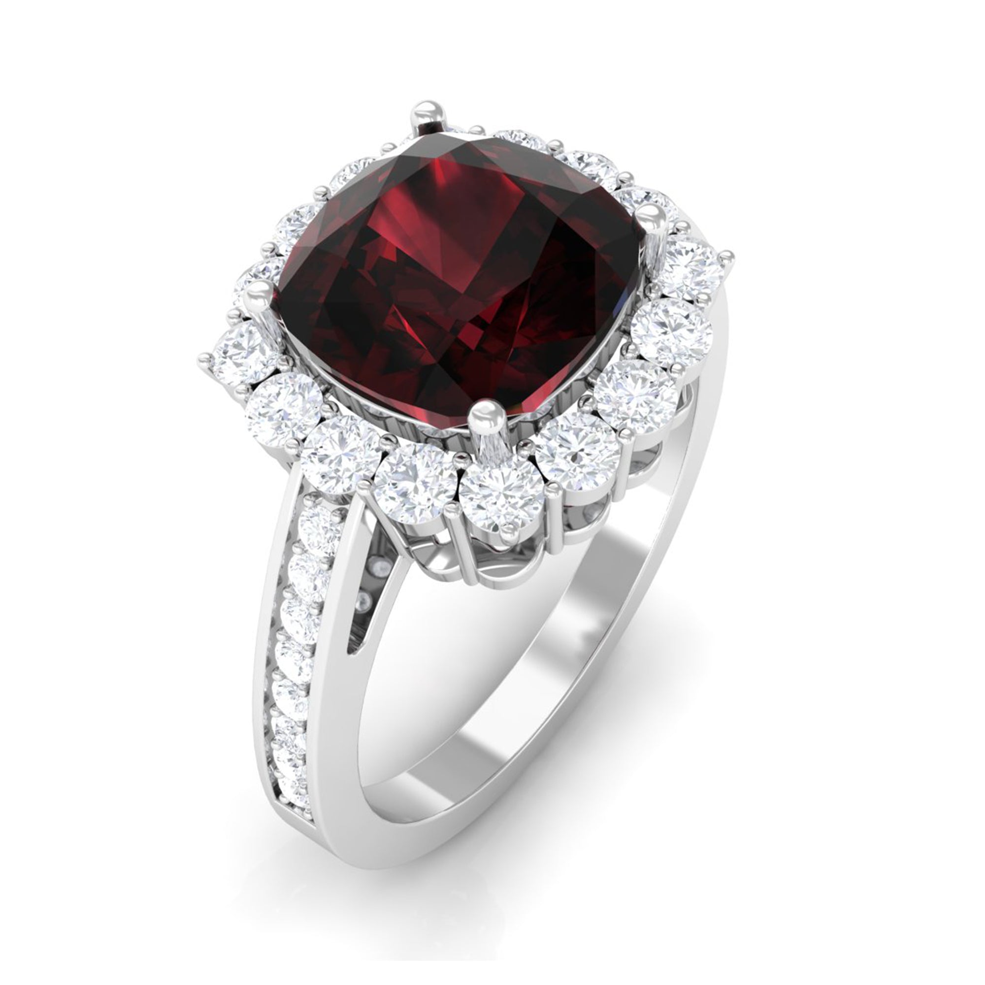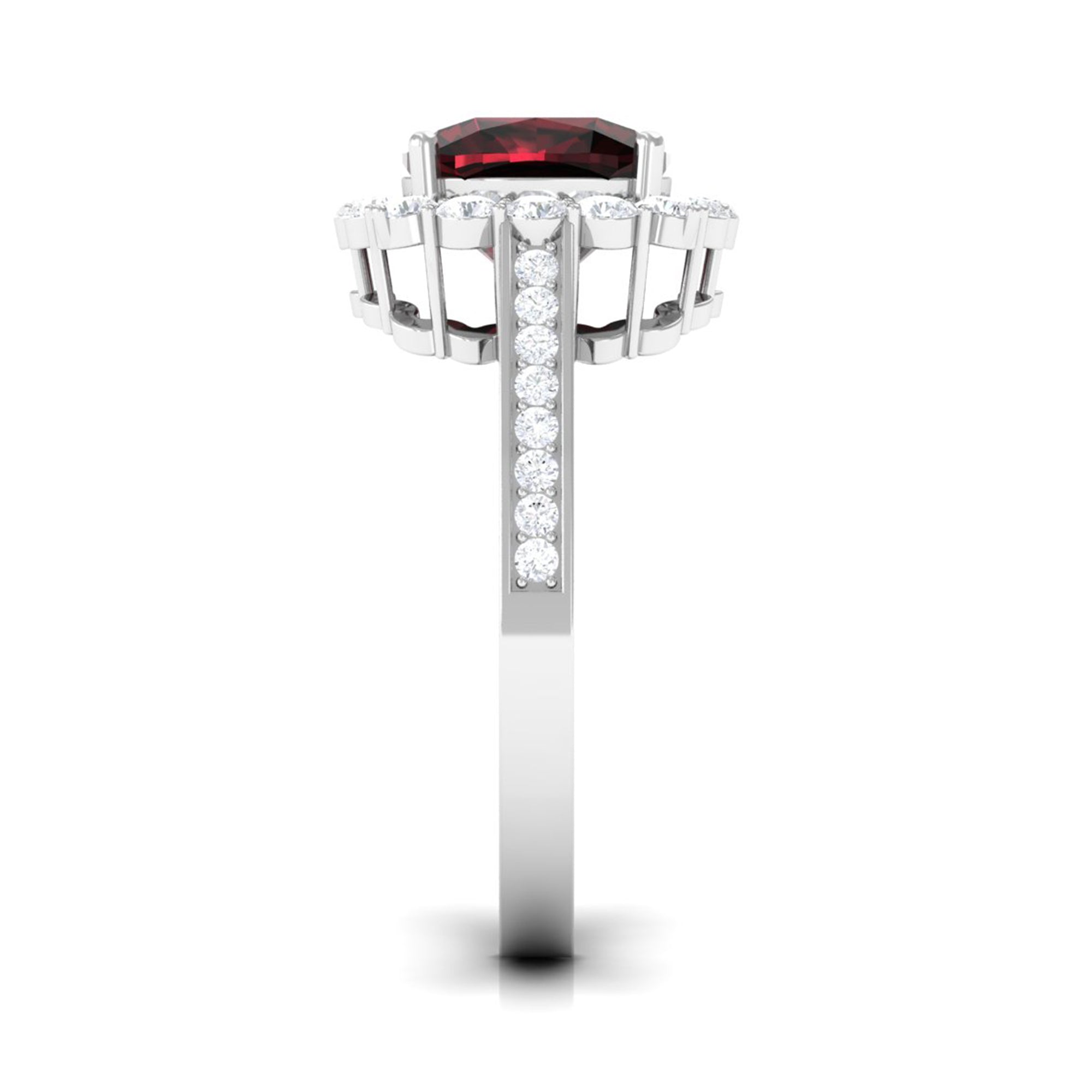 Cushion Cut Garnet Halo Engagement Ring with Diamond