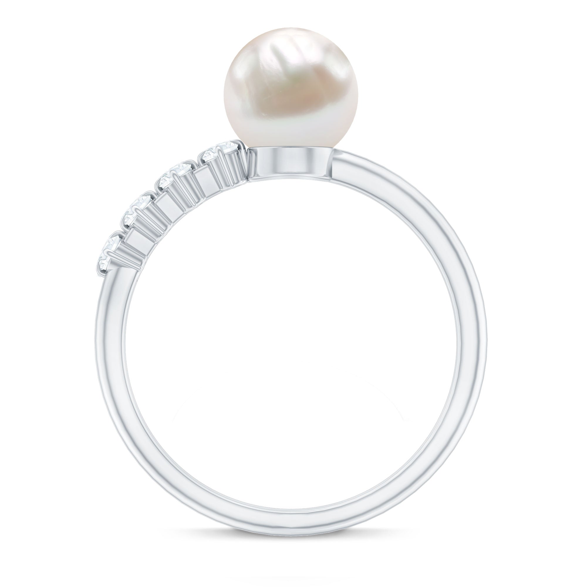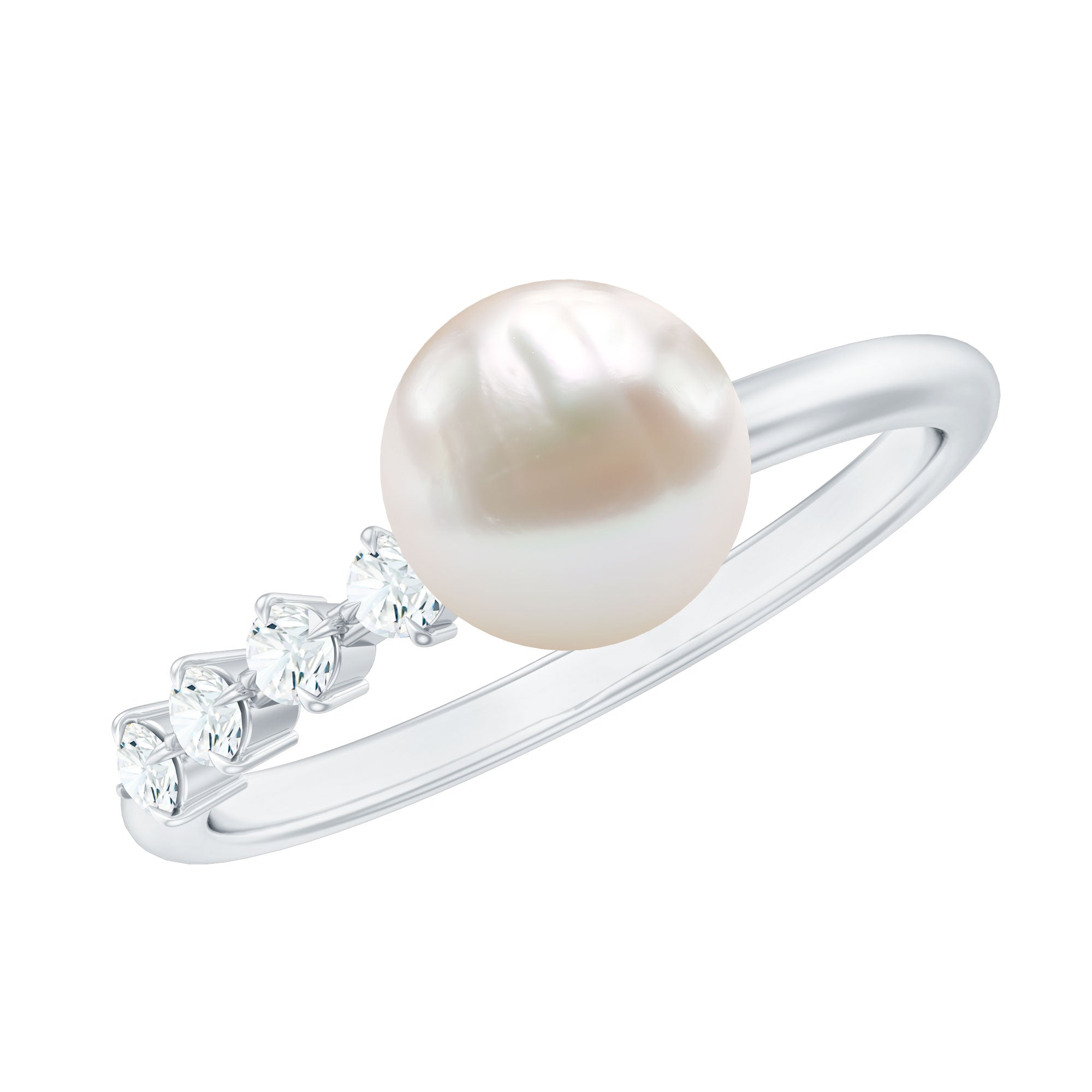 Uniquely designed Freshwater Pearl Engagement Ring features Round Diamond held in a claw setting on one side of the shank to give the ring a creative look. The Exclusiveness of this Pearl Ring will mesmerize your partner.
