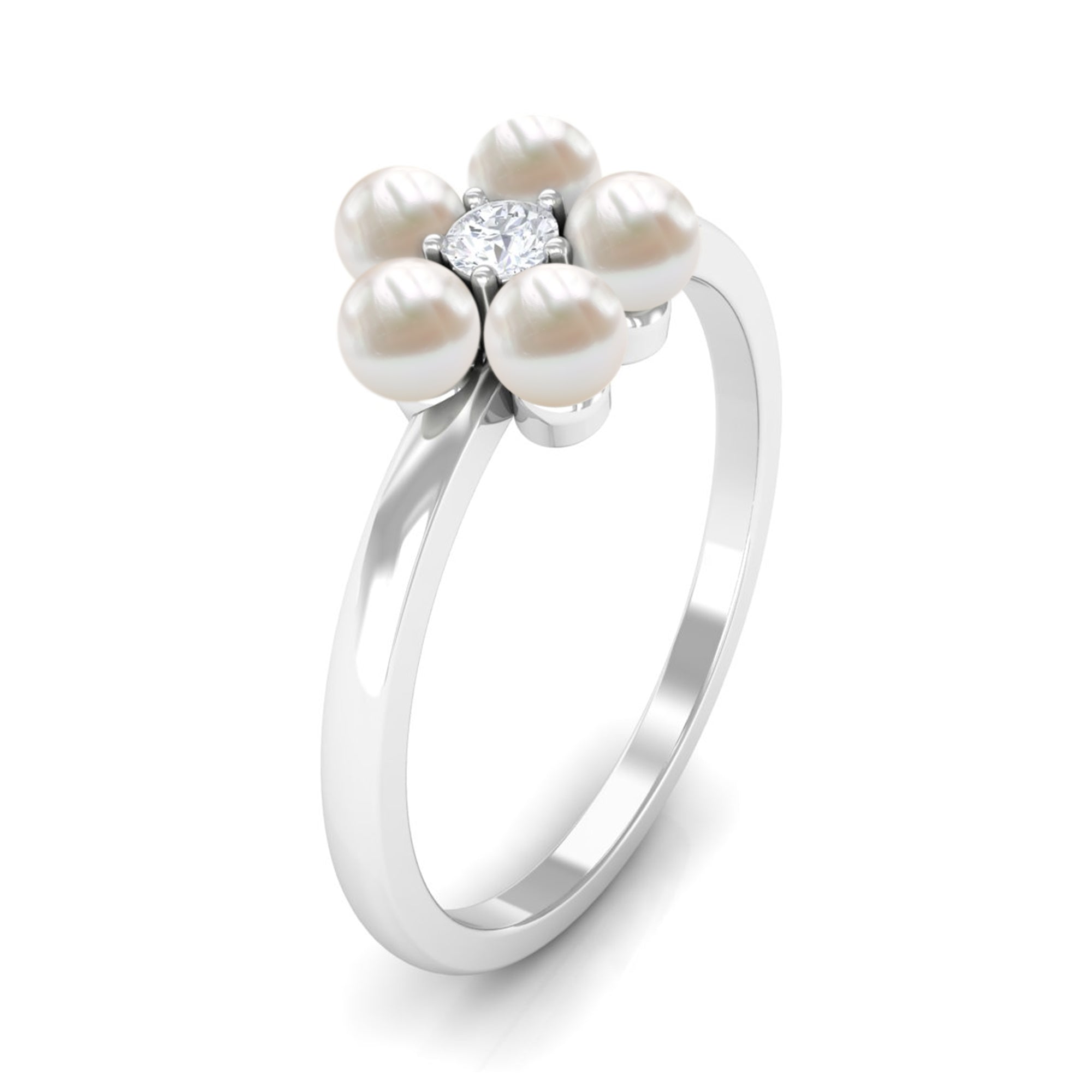 Freshwater Pearl Floral Promise Ring with Moissanite Stone
