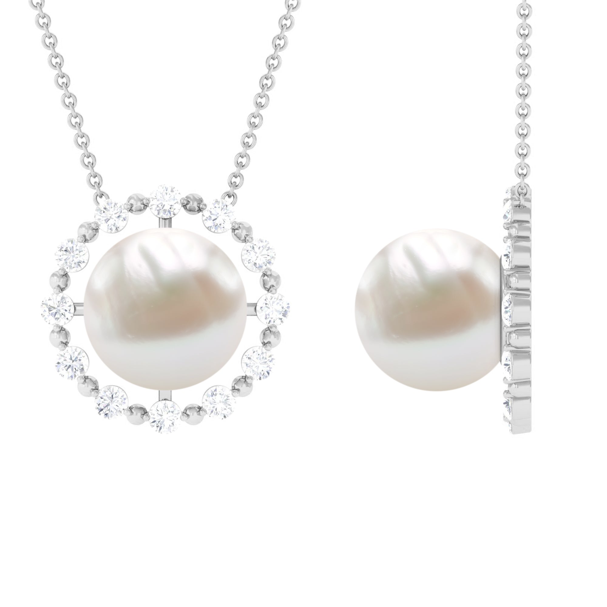 Freshwater Pearl Solitaire Necklace with Diamond Halo
