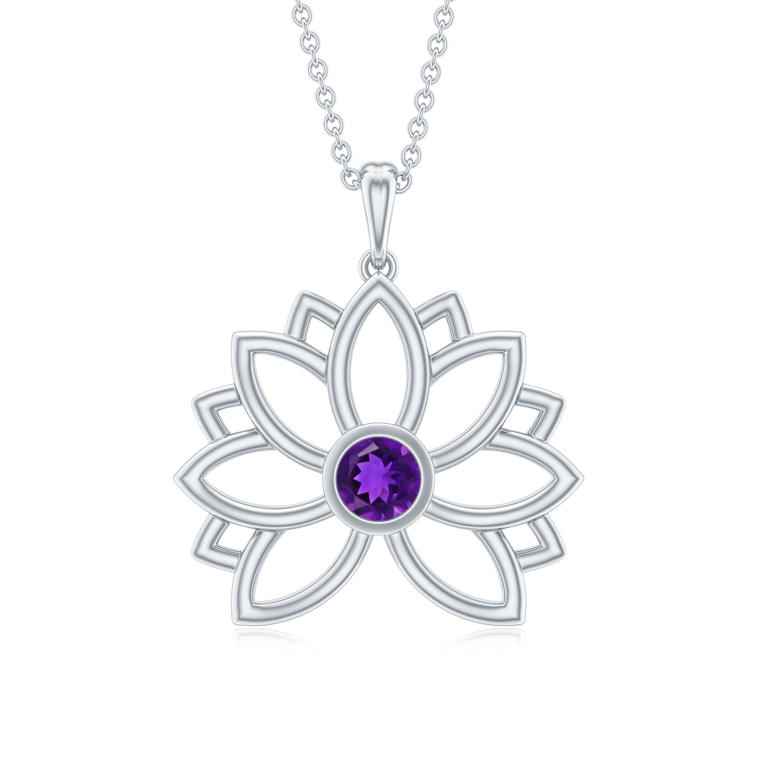 It is a Gold Lotus Pendant consisting of a Round Cut Amethyst embellished in Bezel Setting. It is also known as a Floral Necklace.