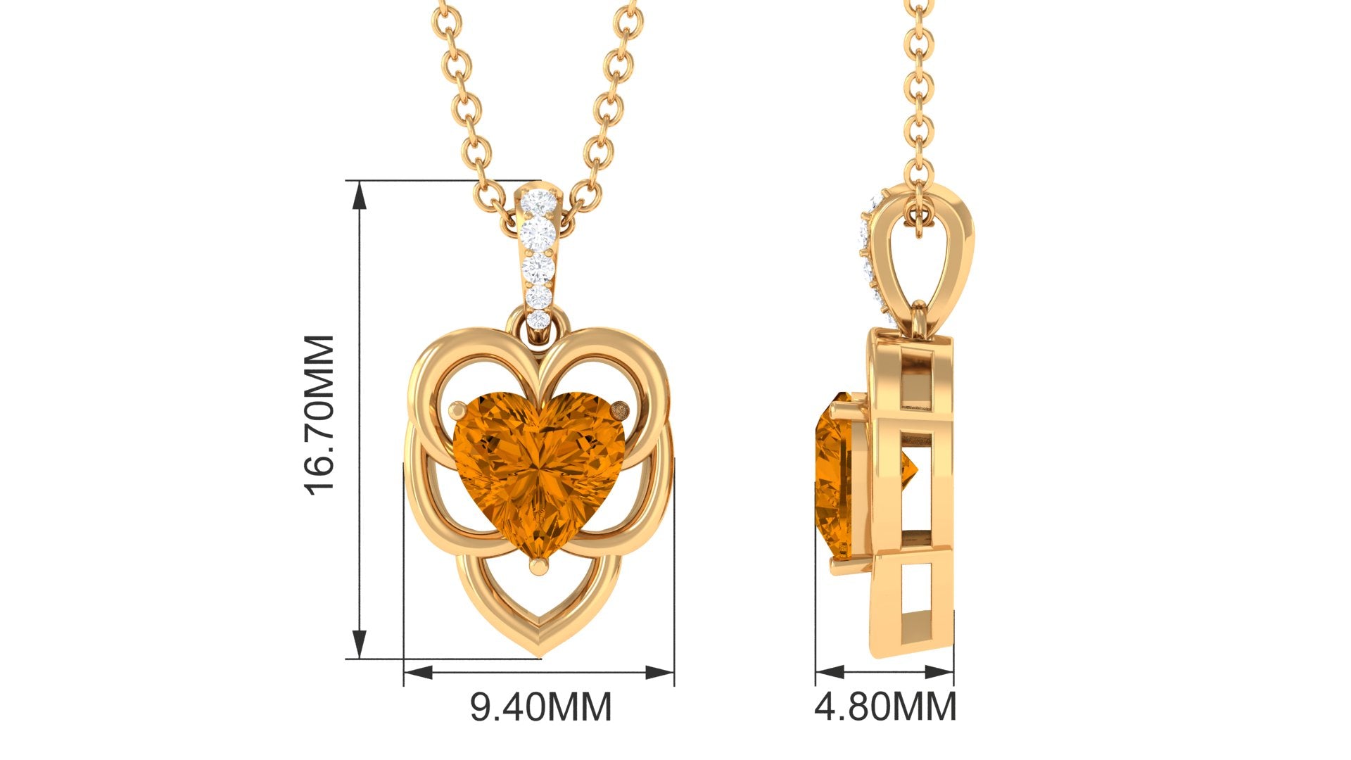 Heart Shape Citrine Pendant with Diamond Accent Bail