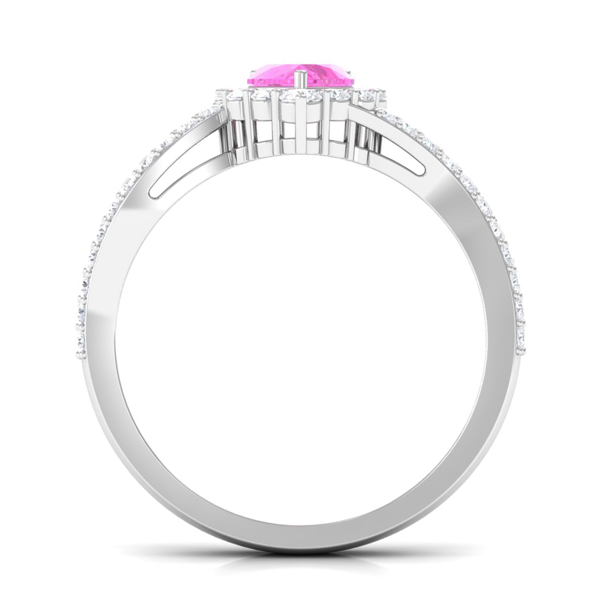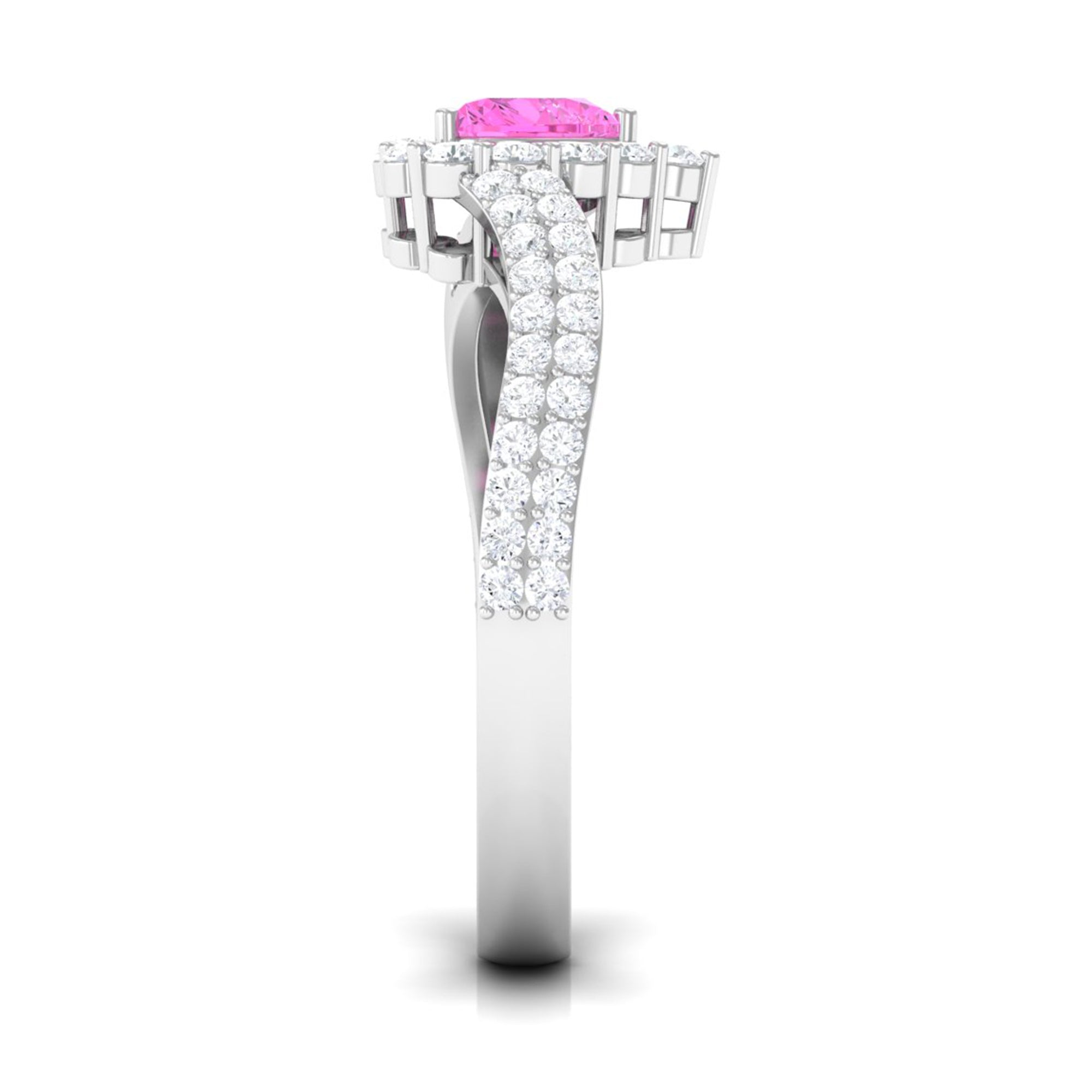 Heart Shape Pink Sapphire and Diamond Bypass Engagement Ring