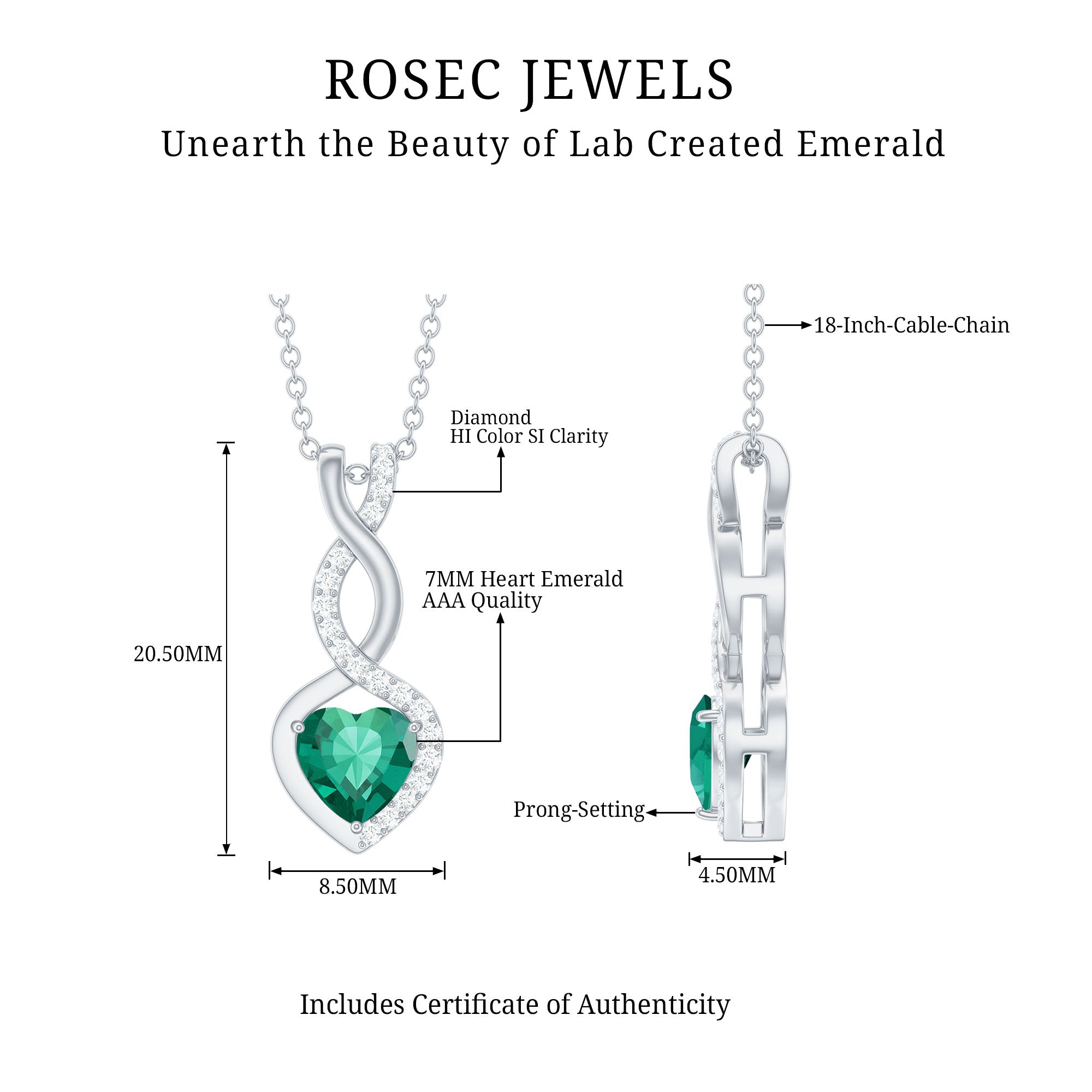 Lab Created Emerald and Diamond Infinity Heart Pendant