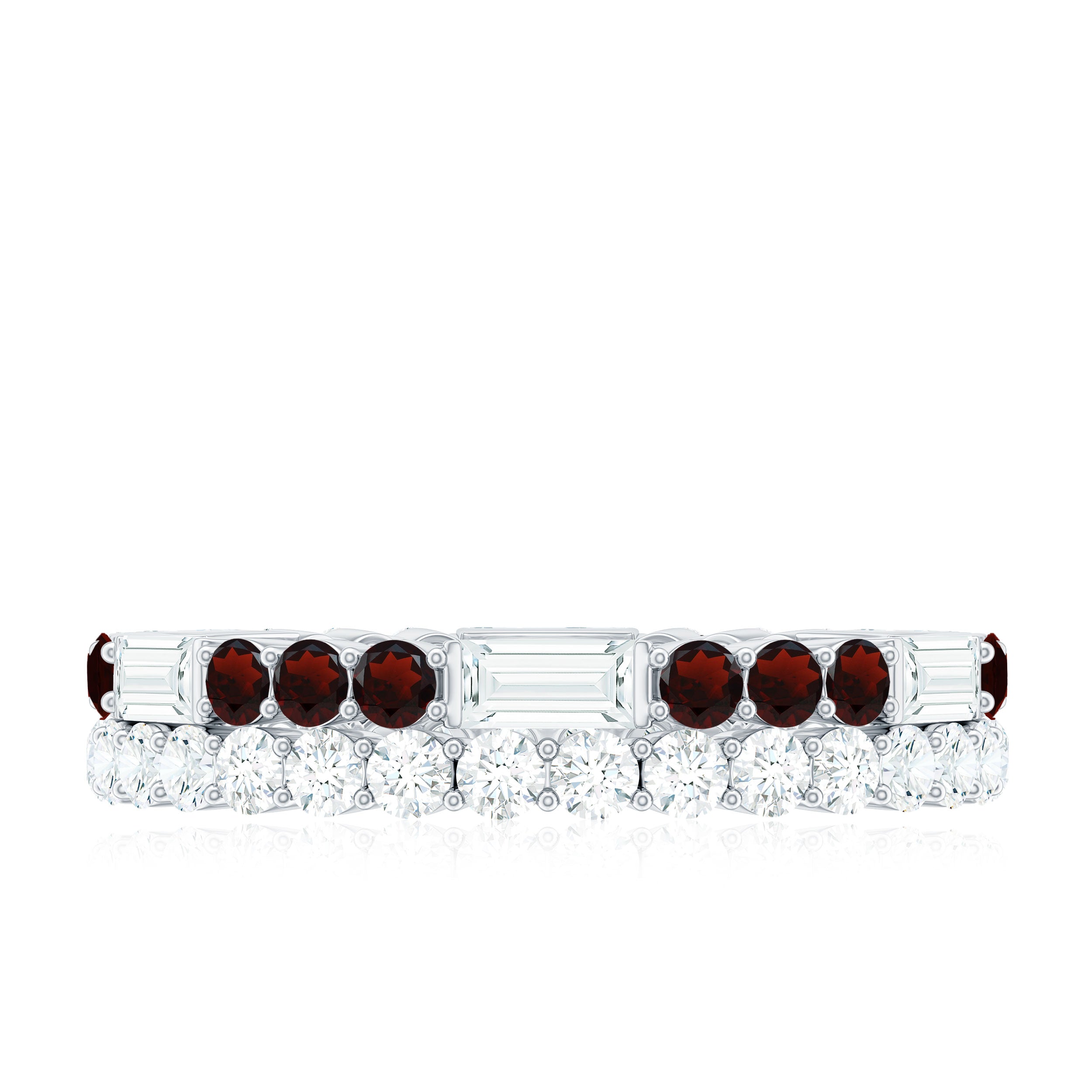 Cherished moments deserve a ring that speaks with the same depth and devotion, and this Wedding Eternity Band does exactly that. Designed with two beautifully contrasting rows, this Full Eternity Ring brings together shimmering Round Moissanite stones on one side and a captivating mix of Round Shape Garnet and Baguette Shape Moissanite on the other. The result is a dazzling blend of warmth and brilliance, the rich red glow of AAA Quality Garnet stones symbolizing passion, and the radiant sparkle of D-VS1 Quality Moissanite stones reflecting clarity, loyalty and forever. Every detail of this Garnet Wedding Band is crafted to feel meaningful. Arriving in a signature jewelry box that adds an air of elegance, this Garnet Eternity Band makes gifting unforgettable, whether for a wedding, anniversary or a heartfelt promise. With various ring sizes available, you can find the perfect fit for the person who means everything to you. Romantic, modern and full of emotion, this Garnet Ring for Women is a shimmering reminder that true love never stops growing.