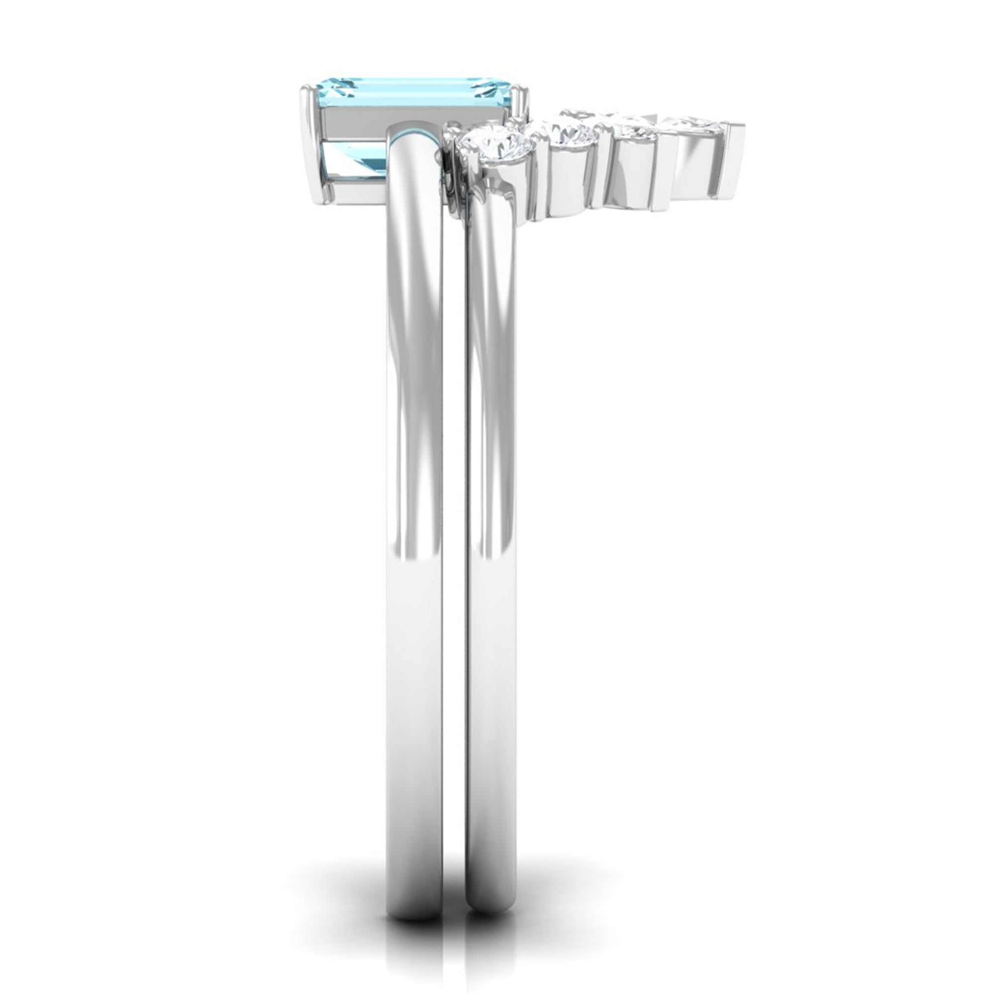 Octagon Cut Aquamarine Wedding Ring Set with Diamond