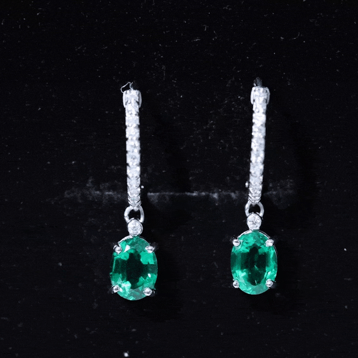 A round Diamond, secured in a bezel, adorns the created emerald in the most eye-catching way in this hoop drop earring pair. The oval created emerald is held in prongs for a modern look. The pair is connected to Diamond studded hoop clips that add the perfect classic touch to the sparkly piece. Wear it solo or stack it with other jewels for a dreamy appearance.
